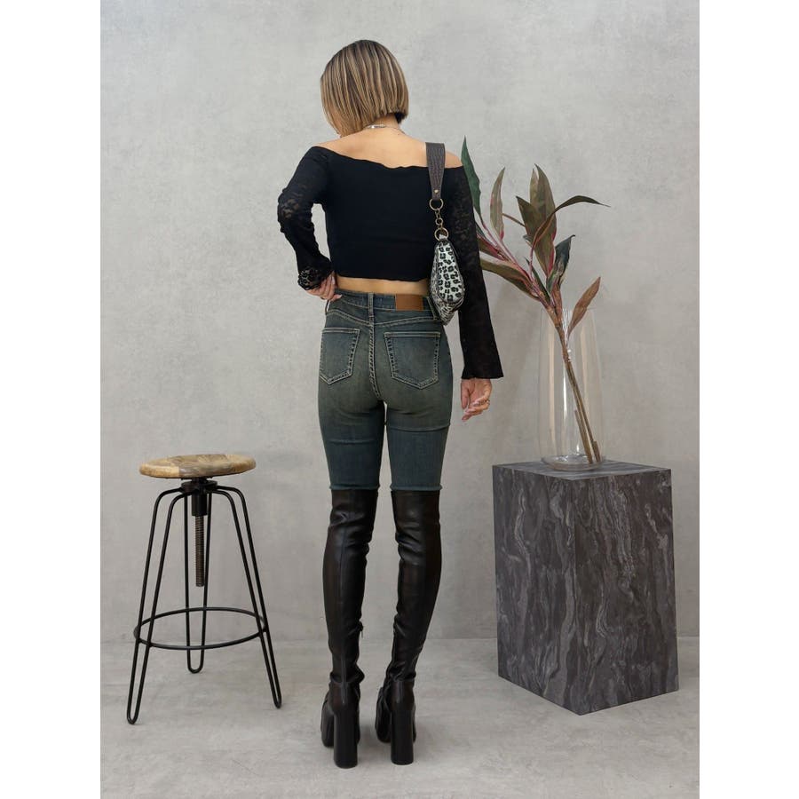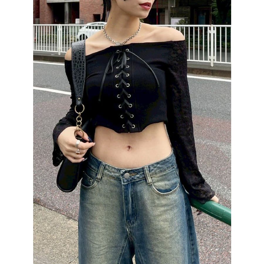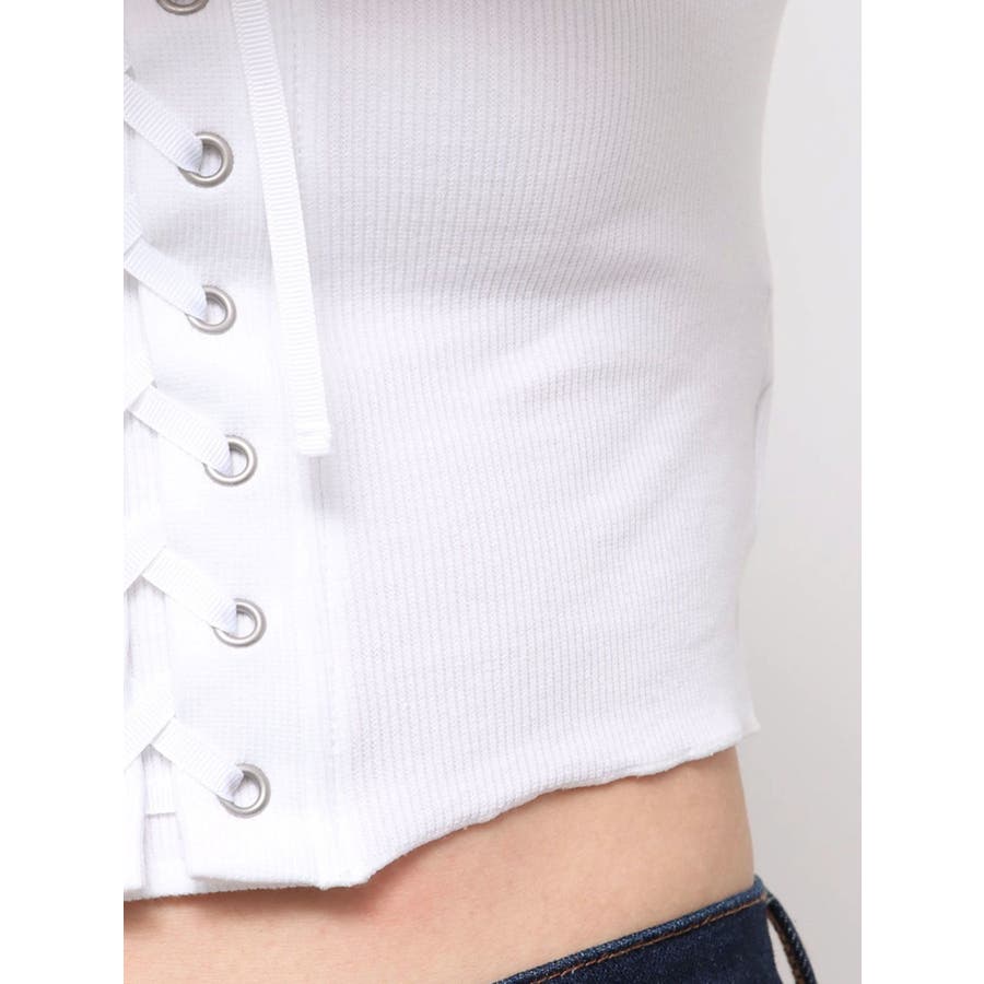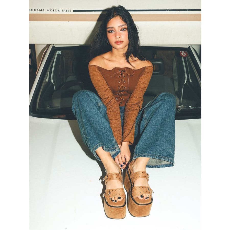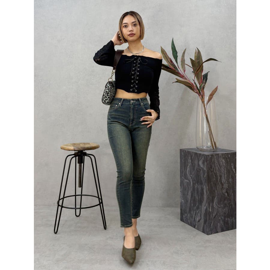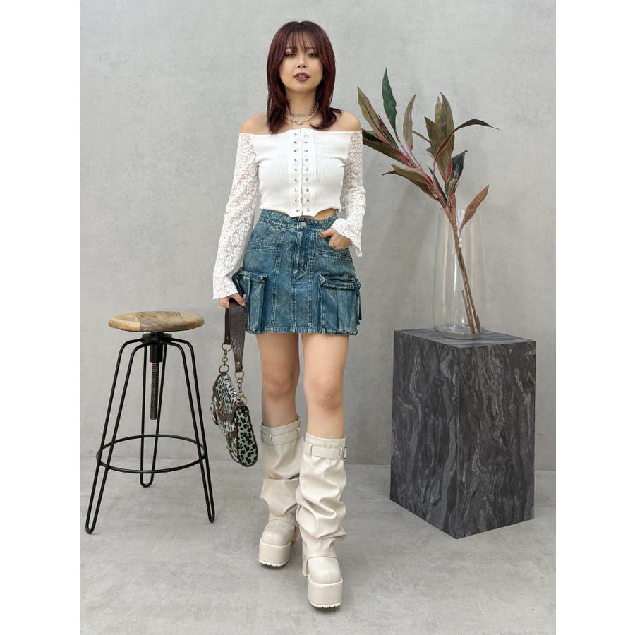 ■デザイントレンドのBOHOスタイルをかなえるレースコンビのオフショルトップスです。フロントのレースアップデザインは女性らしい印象。袖のレースも透け感が強くないものを使用しており、露出が高くなりすぎず、デイリーにも着用しやすいアイテムです。■スタイリングカジュアルな印象をプラスする>>2WAYサロペットワイドデニムパンツとの合わせが今季イチオシです。-------------- 透け感:一部あり裏地:なし 生地の厚み:普通伸縮性:あり--------------