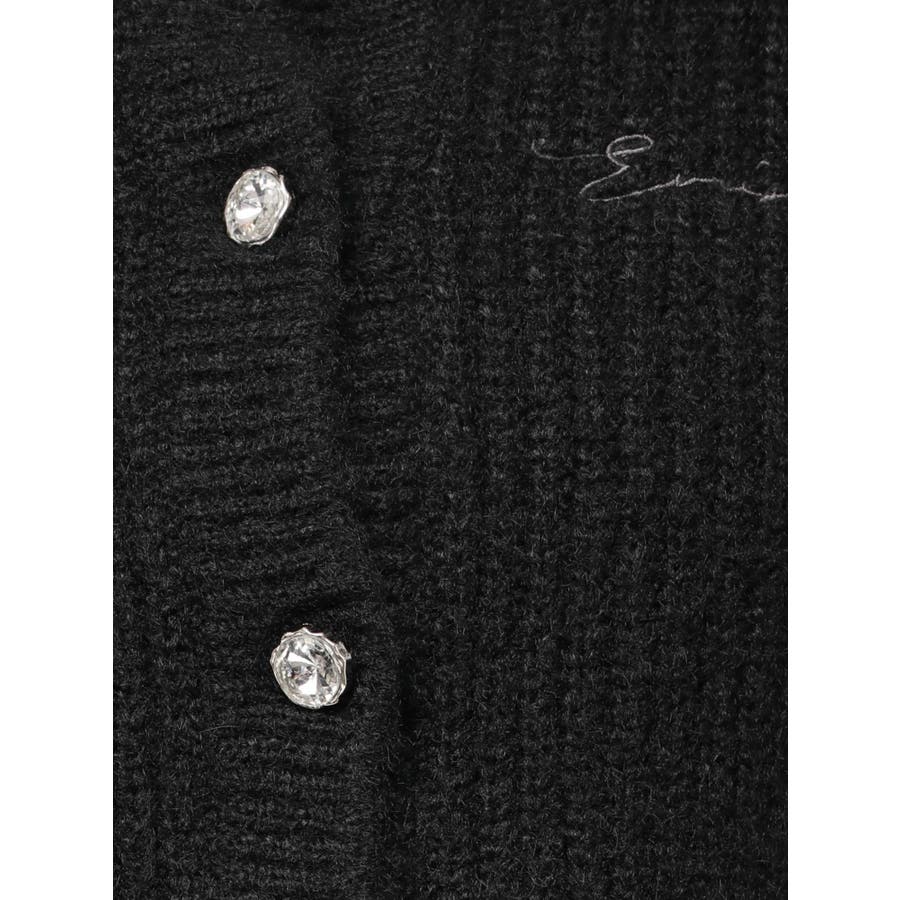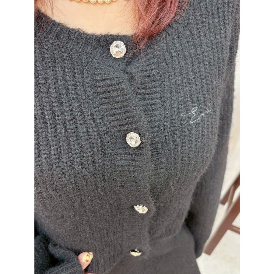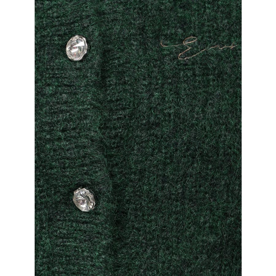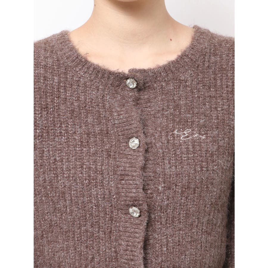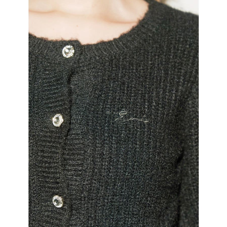 左胸には刺繍でEVRIS(エヴリス)のロゴを、カーディガンのボタンはキラキラ輝くビジューボタンになっています。
