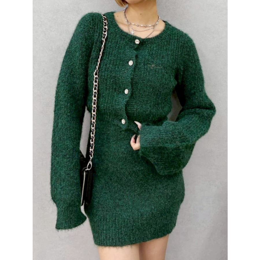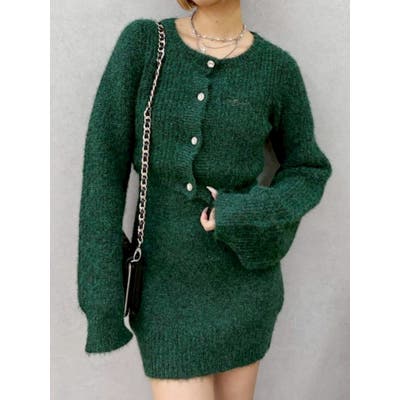 ワンポイントアンサンブルニットワンピ ース カーディガン キャミワンピ セット