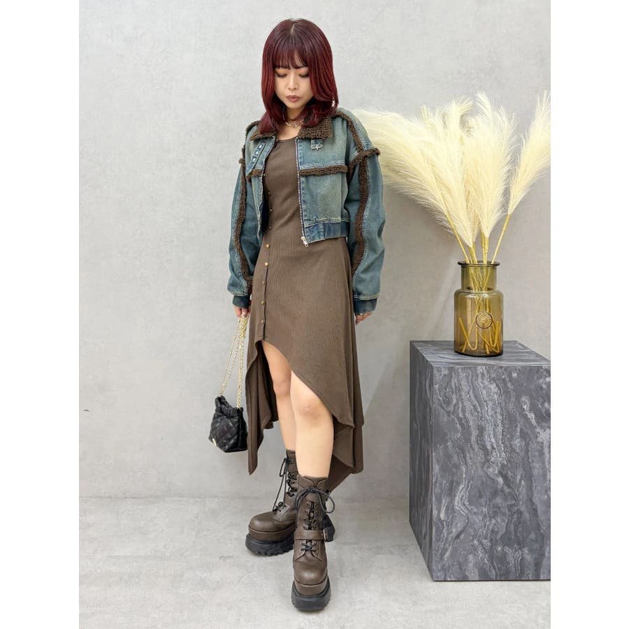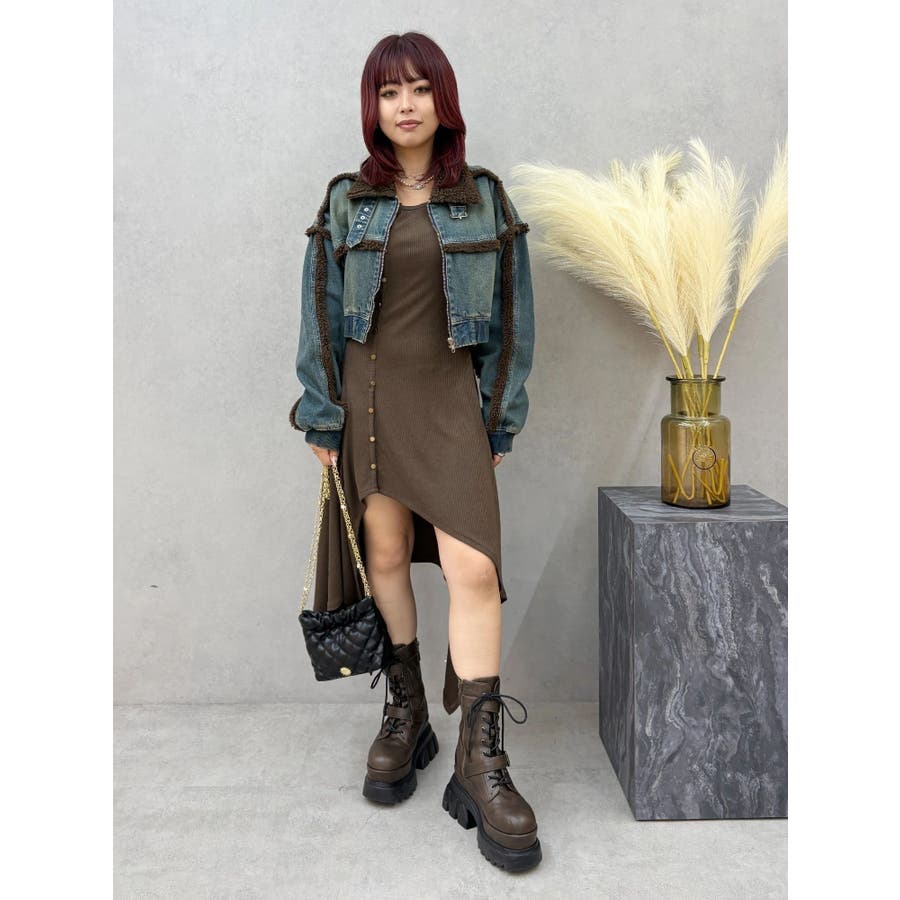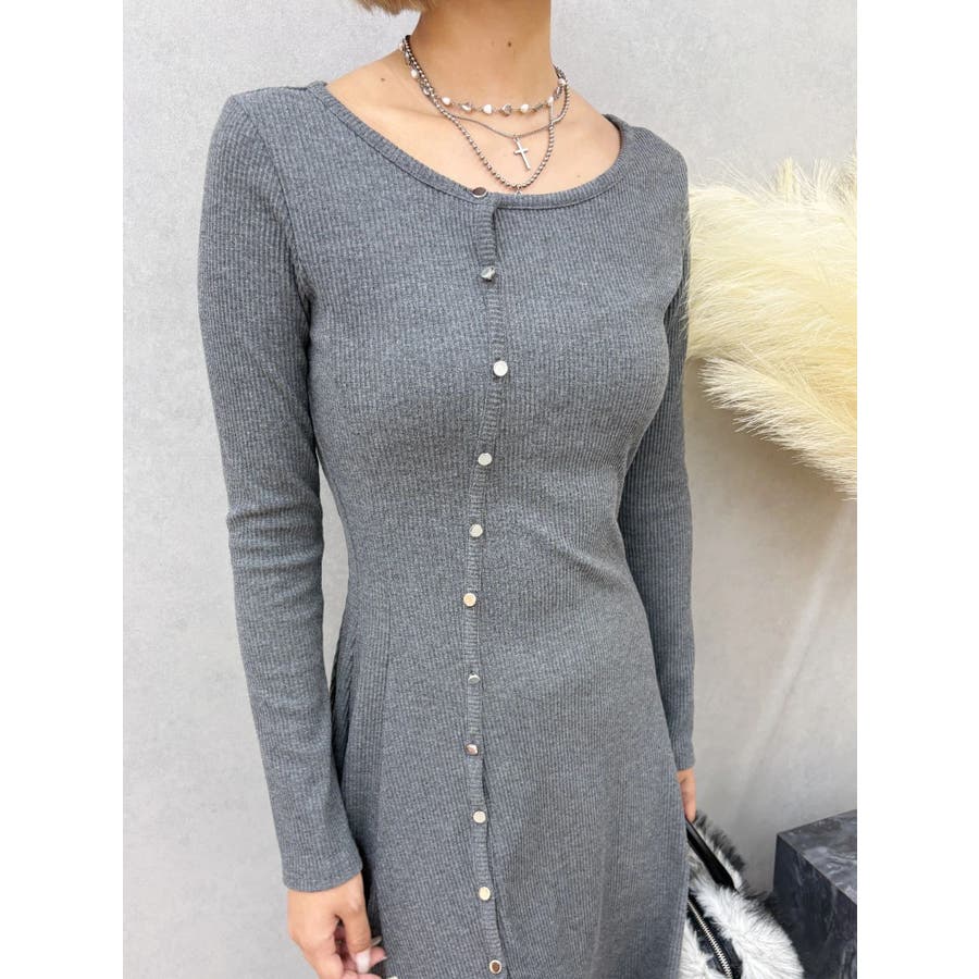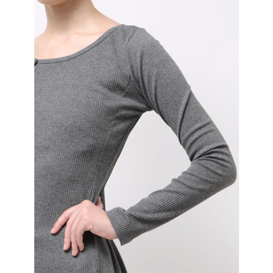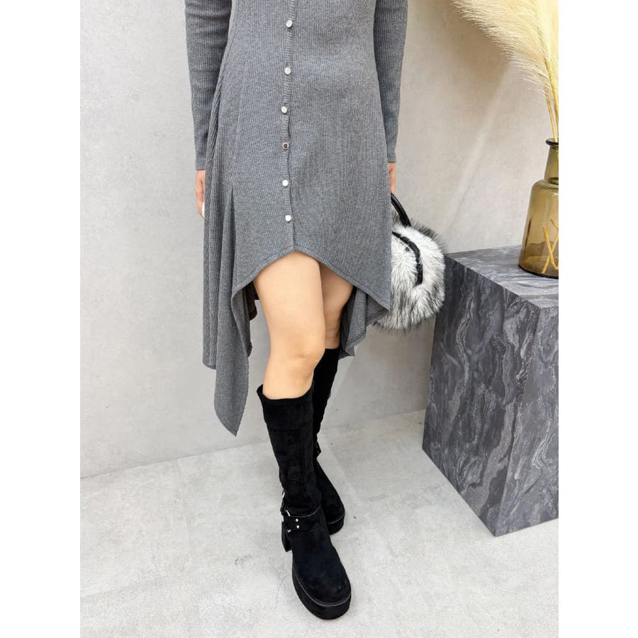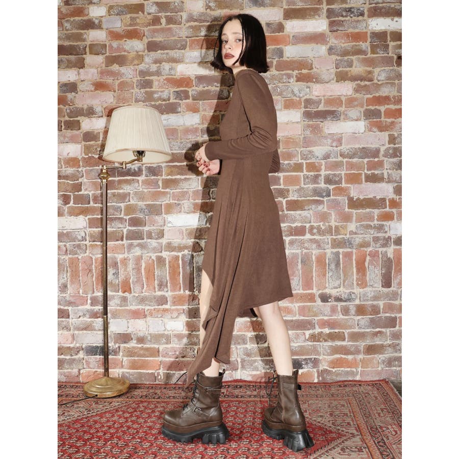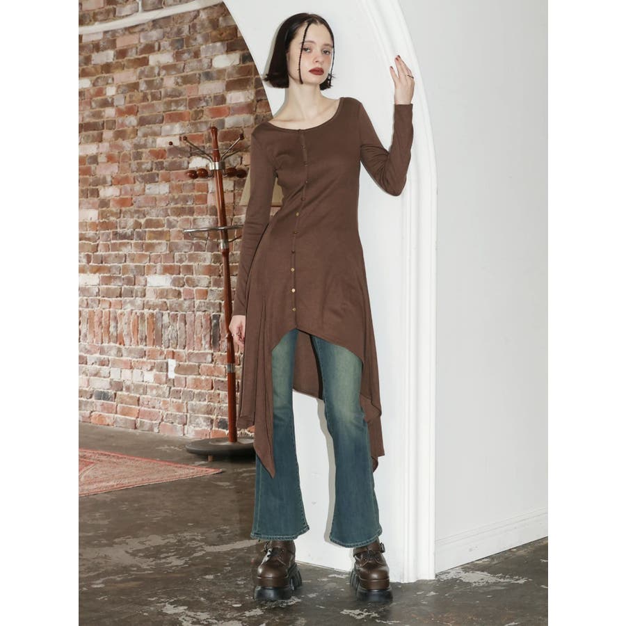 ■デザイン柔らかなリブカットソー素材で、肌なじみと着心地の良さを両立したワンピース。斜めに並んだフロントボタンが印象的でシンプルながらモードな雰囲気を演出します。アシンメトリーな裾のラインが動くたびに揺れて、軽やかさと個性をプラス。1枚でスタイルが決まるアイテムです。■スタイリング大人っぽく着れるワンピースですがアシンメトリーな裾のラインになっているのでデニムパンツをあわせてカジュアルダウンさせて着るとガラッと雰囲気を変えて楽しんでいただけます。--------------透け感:なし 裏地:なし生地の厚み:薄め伸縮性:あり--------------
