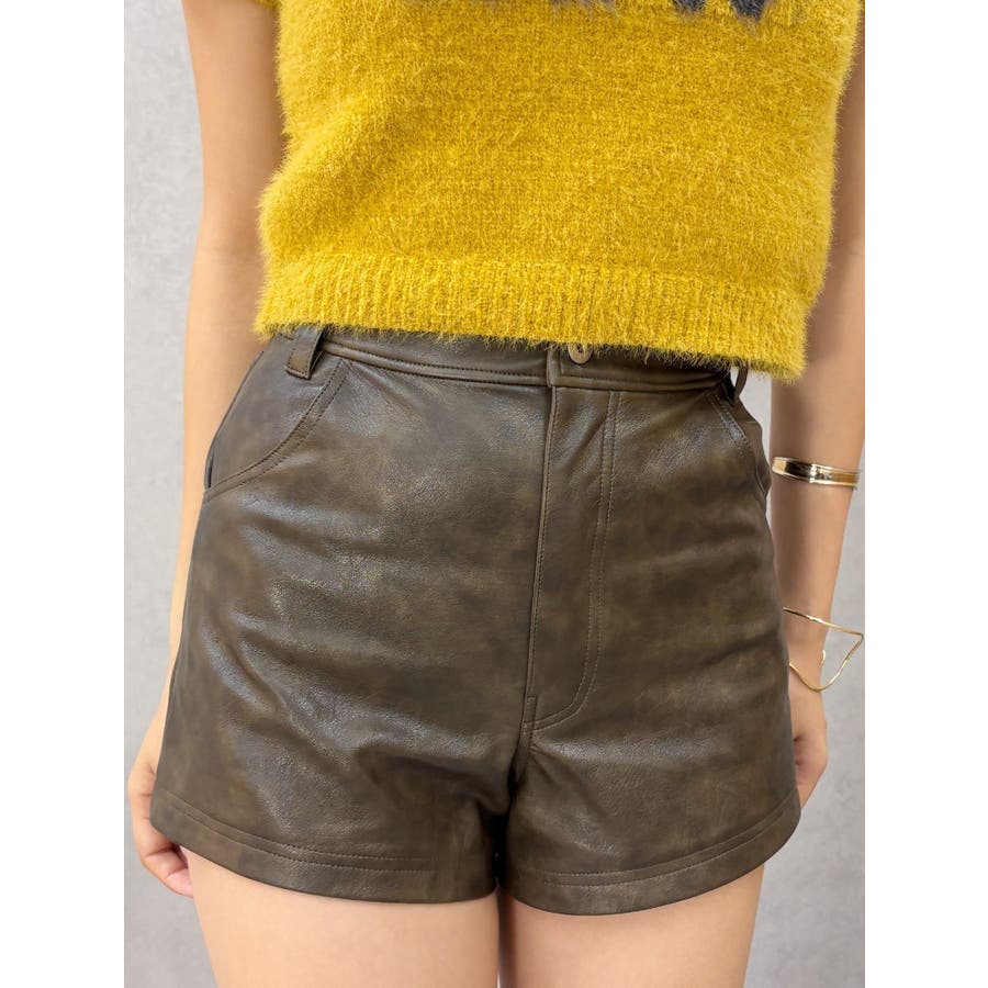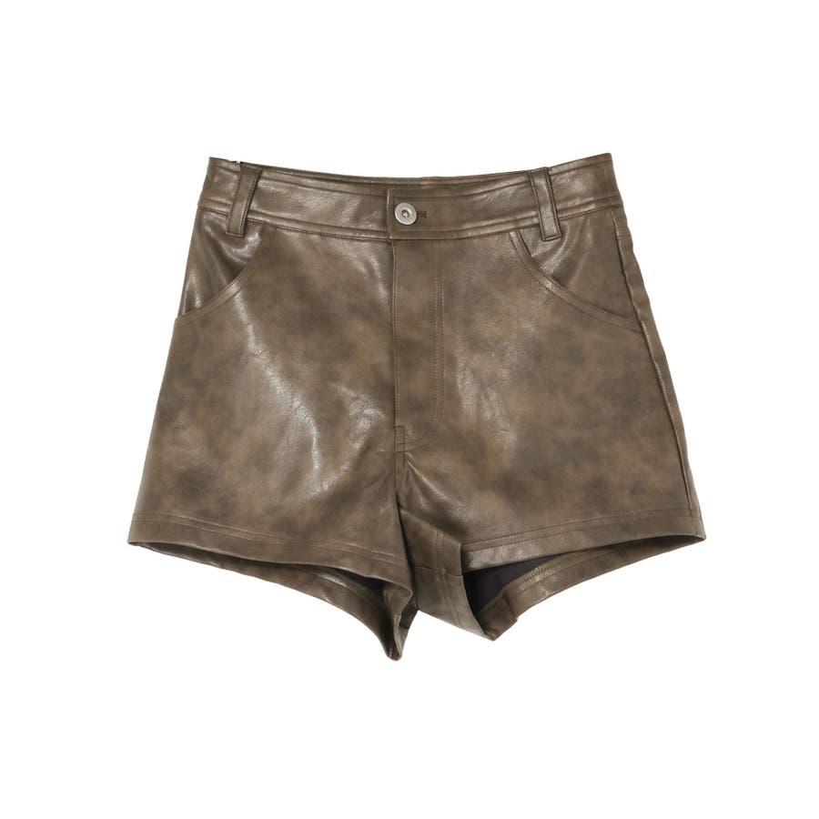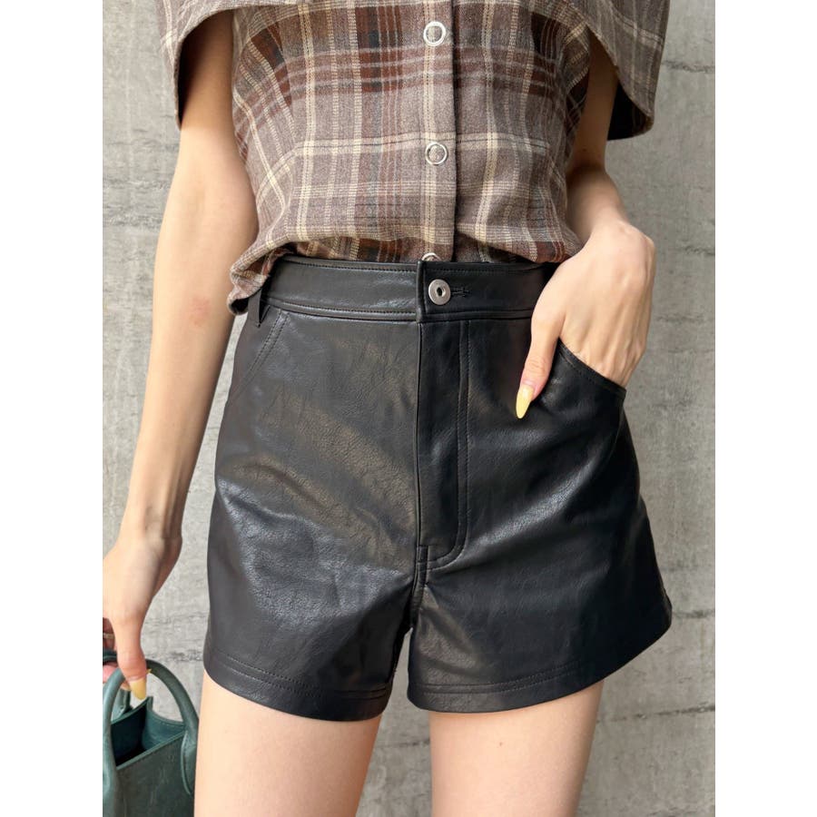 ■デザインヴィンテージ感のあるファイクレザーを使用したコンパクトなショートパンツです。ピッタリとしたサイズ感なので、オーバーサイズのニットなどインナーとしても使いやすいアイテム。今季トレンドのコンパクトシルエットに、美脚見えも叶う一枚です。-------------- 透け感:なし 裏地:なし 生地の厚み:普通伸縮性:なし --------------