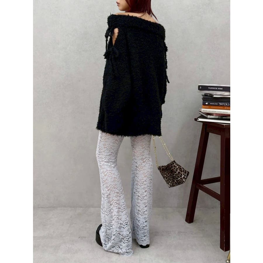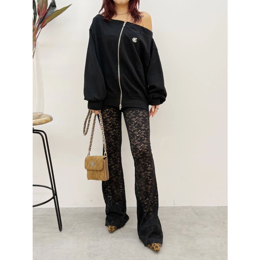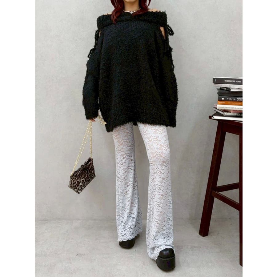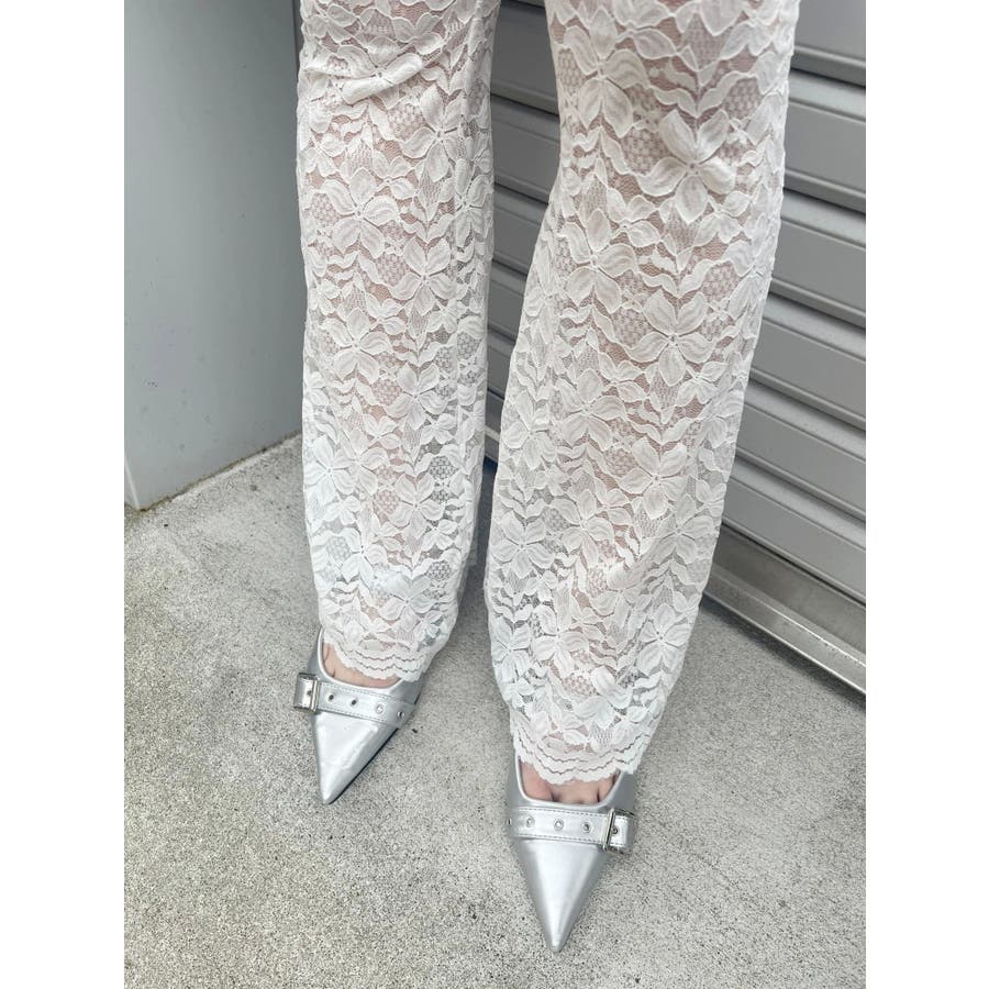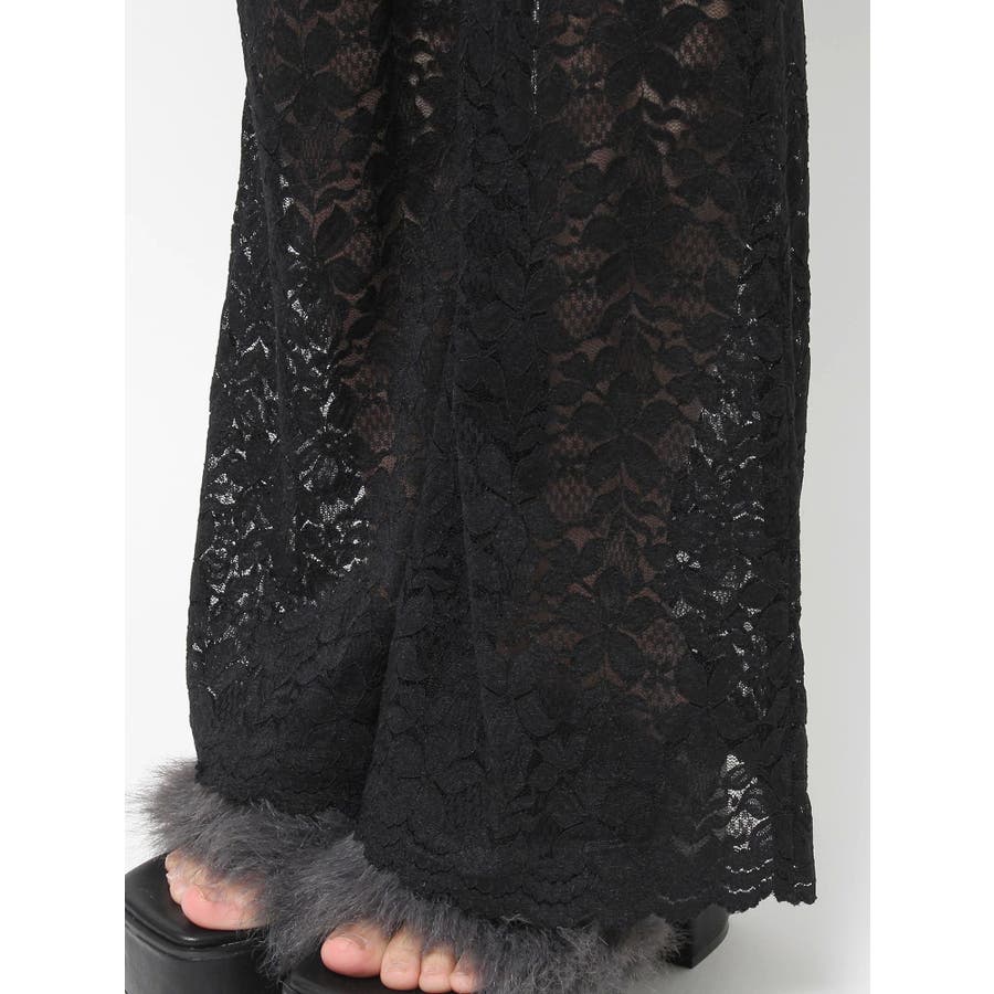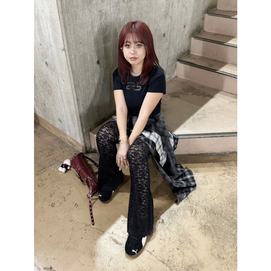 トレンドのレース素材を使用したフレアパンツです。太もも真ん中まで裏地が付いているので1枚で安心して履いて頂けます。伸縮性のあるレースを使用しており、ウエストもゴム仕様なので着用して頂きやすく、フィット感があり、スタイルアップ効果のあるパンツです。※Sサイズより、Mサイズ4cm長いです。