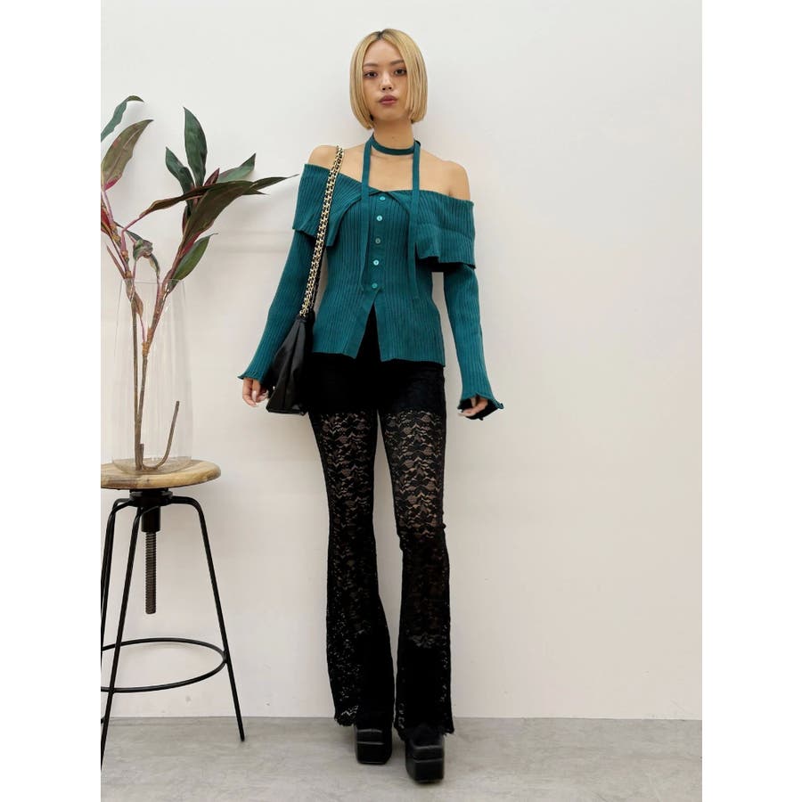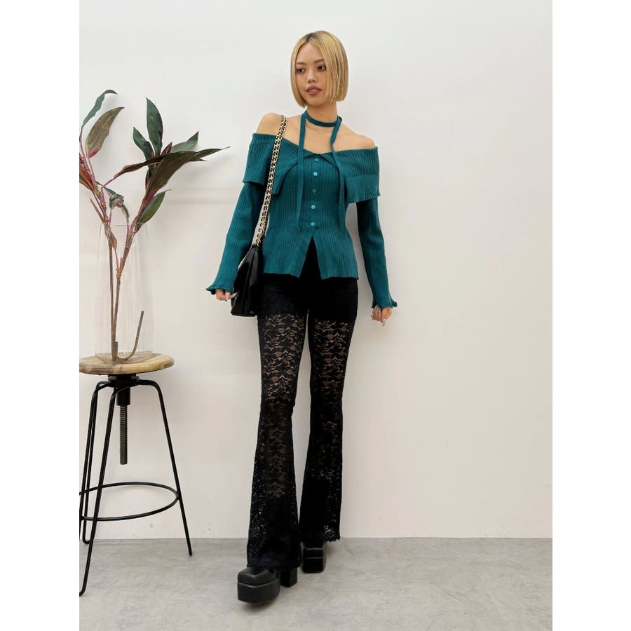 ハイウエストレースフレアパンツ