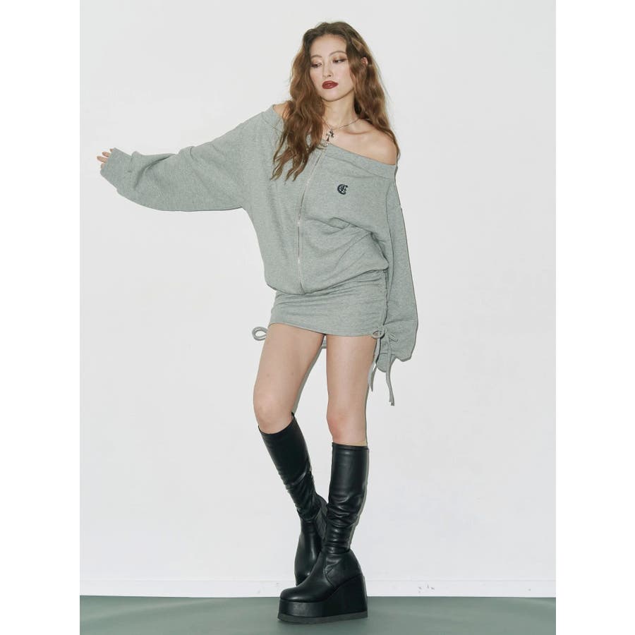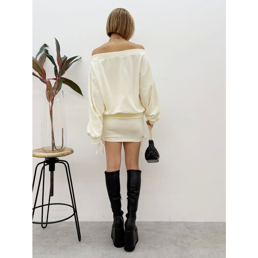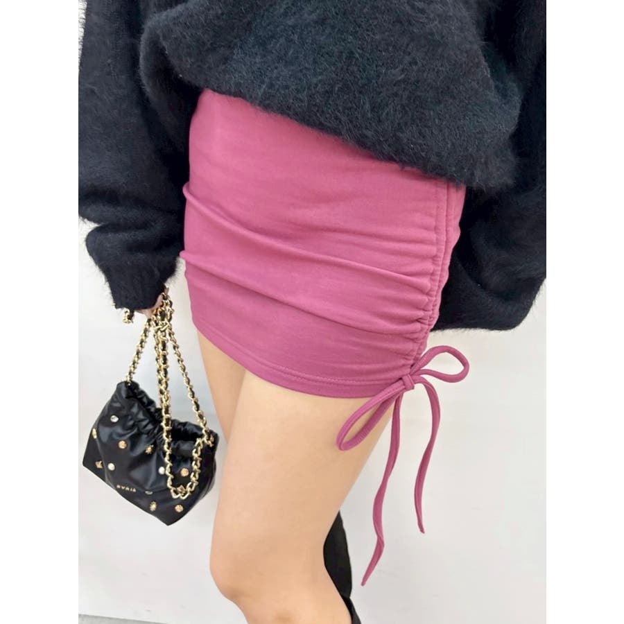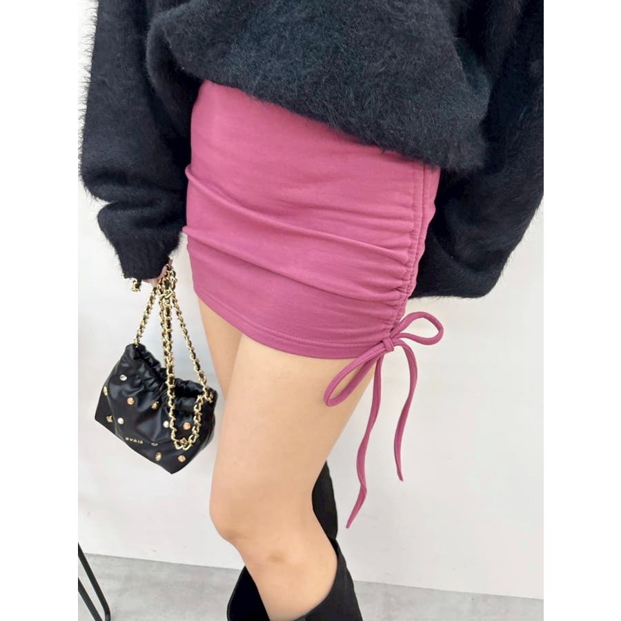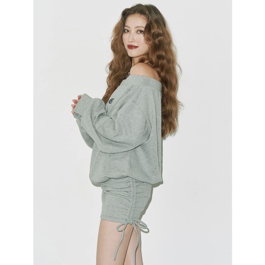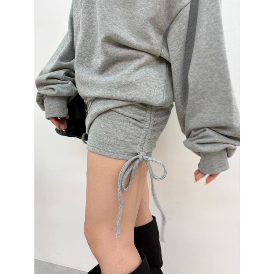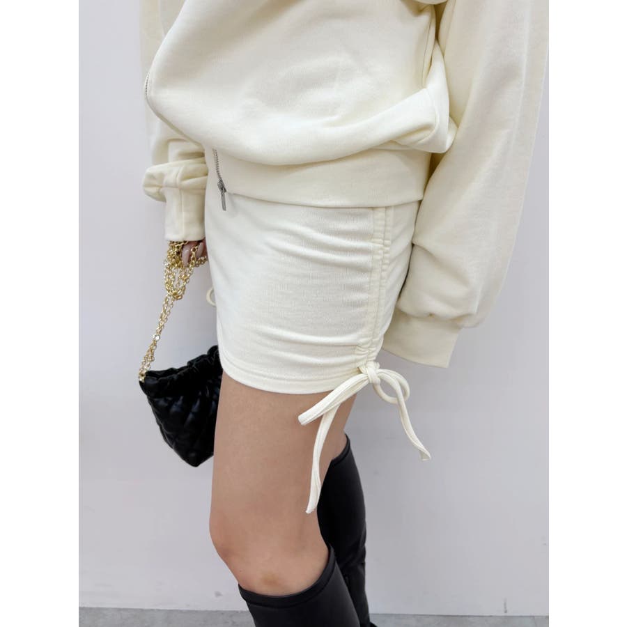 サイドギャザースウェットミニスカート【セットアップ着用可能】 ウエストゴム