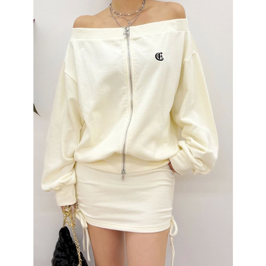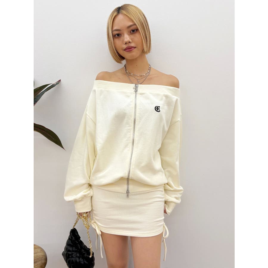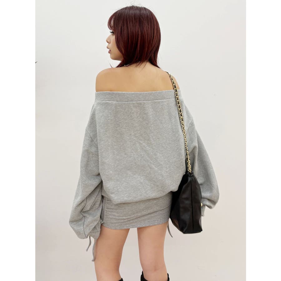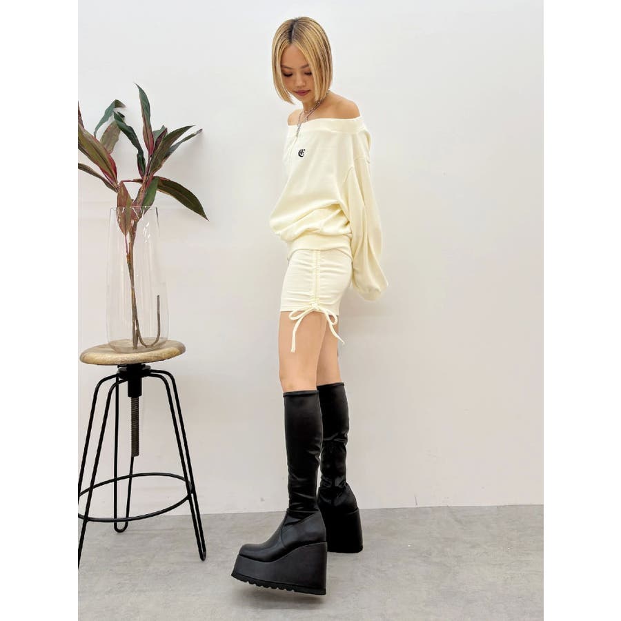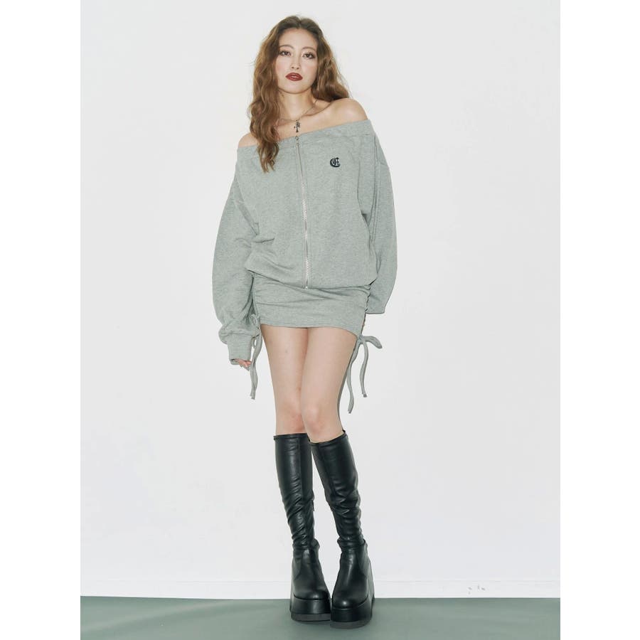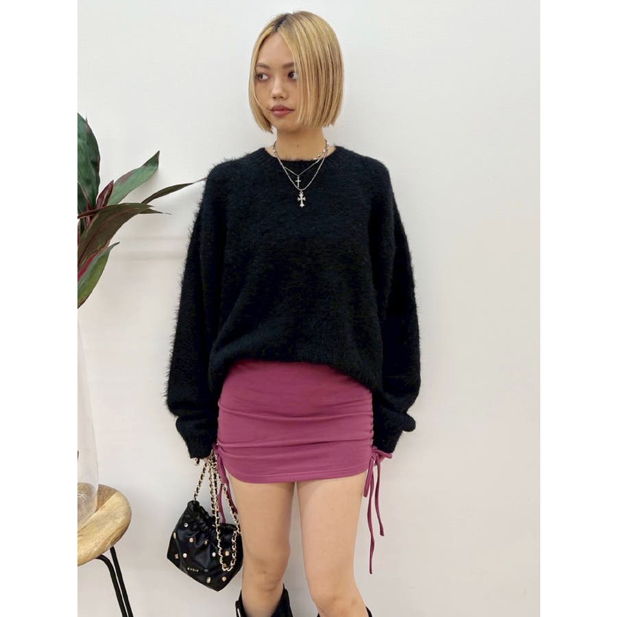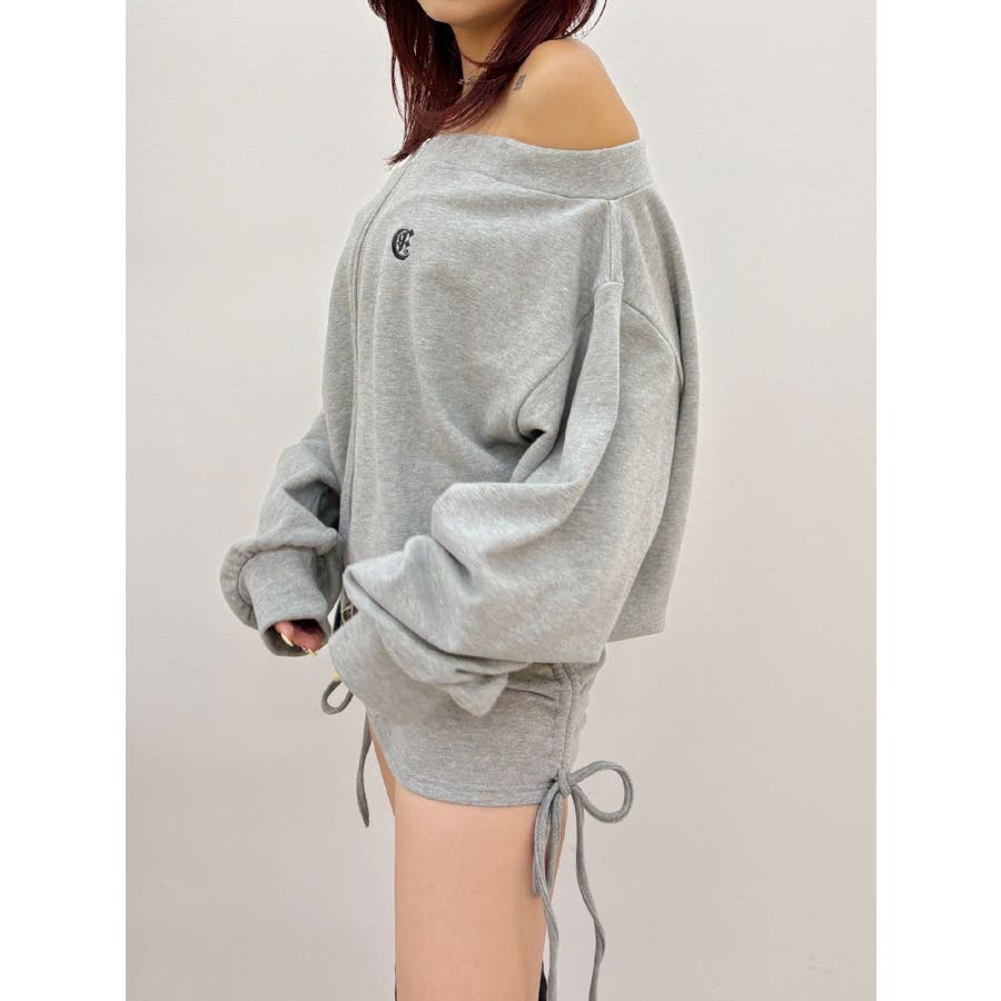 サイドギャザースウェットミニスカート【セットアップ着用可能】 ウエストゴム