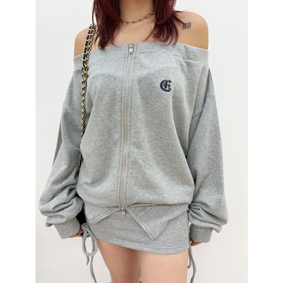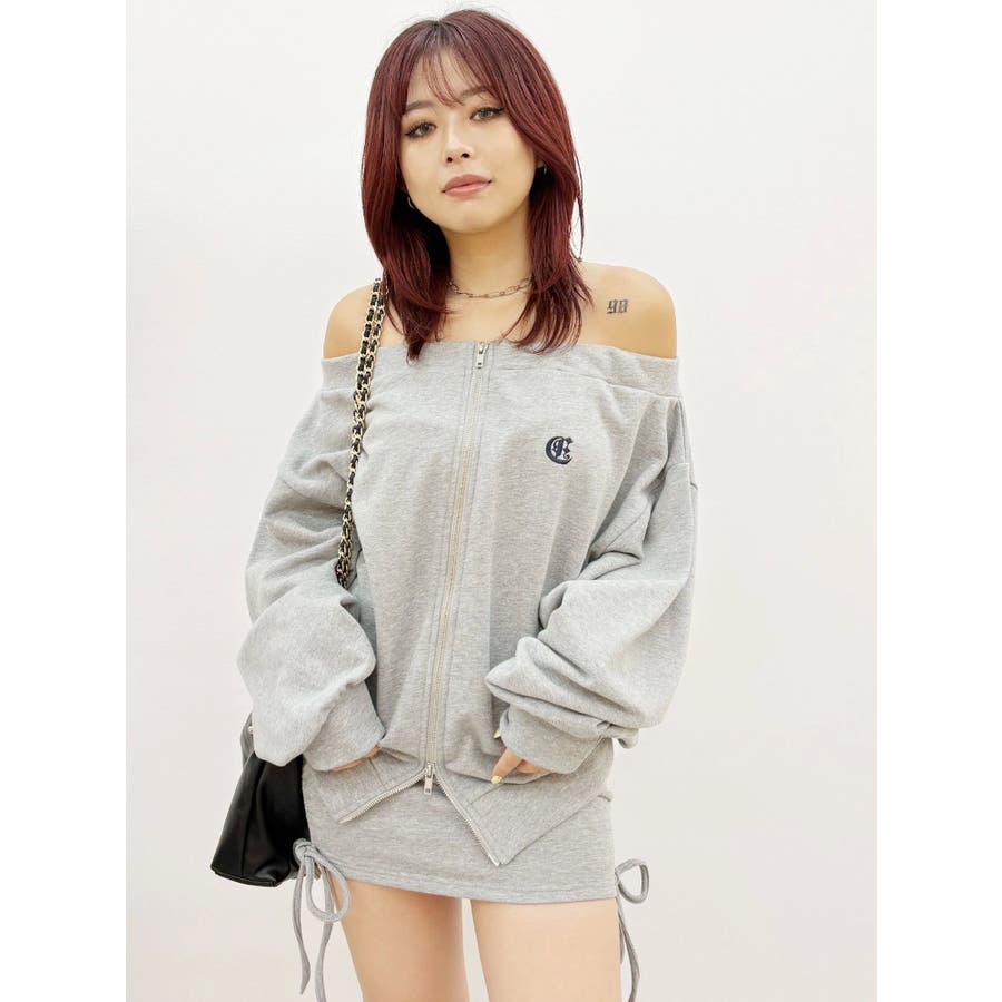 同素材のトップスと合わせたセットアップ風のスタイリングがオススメです。