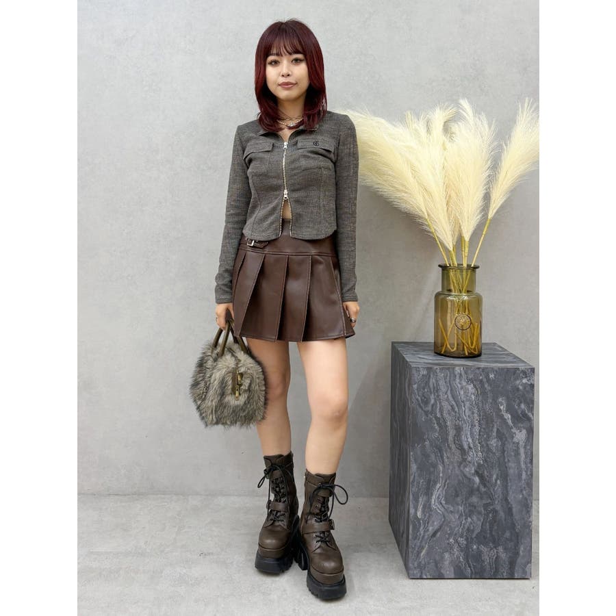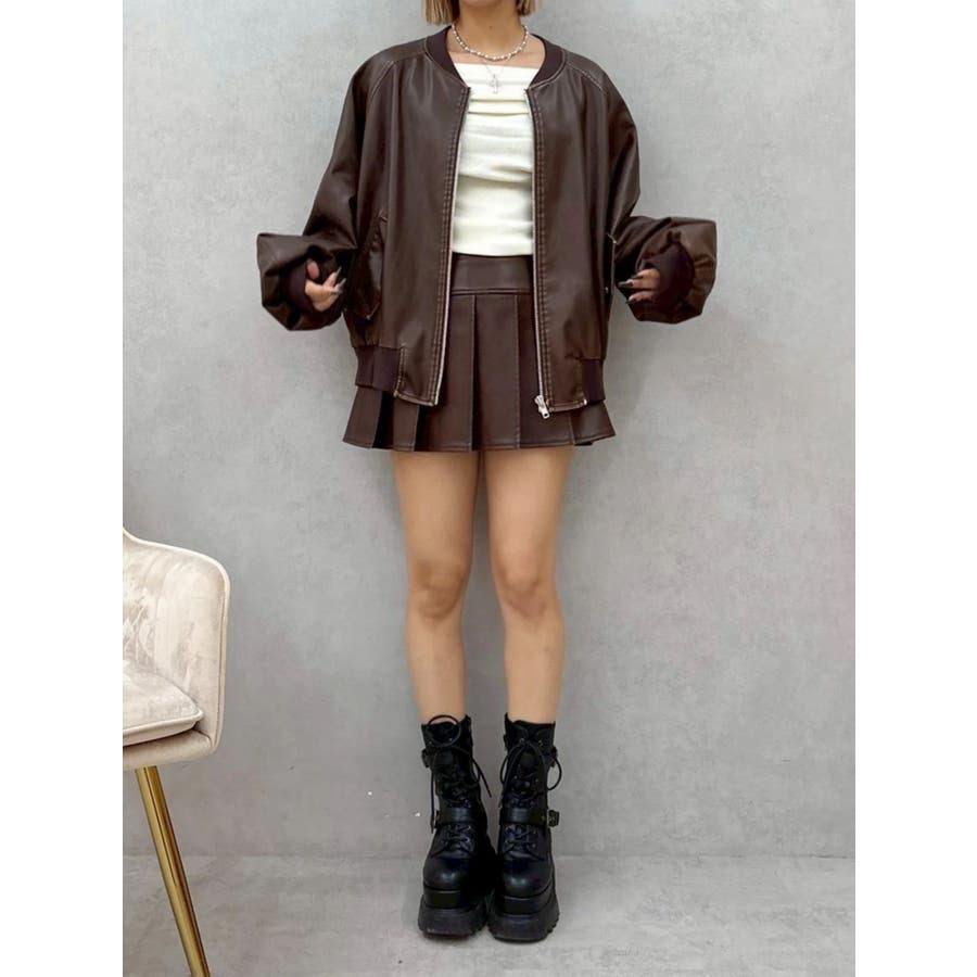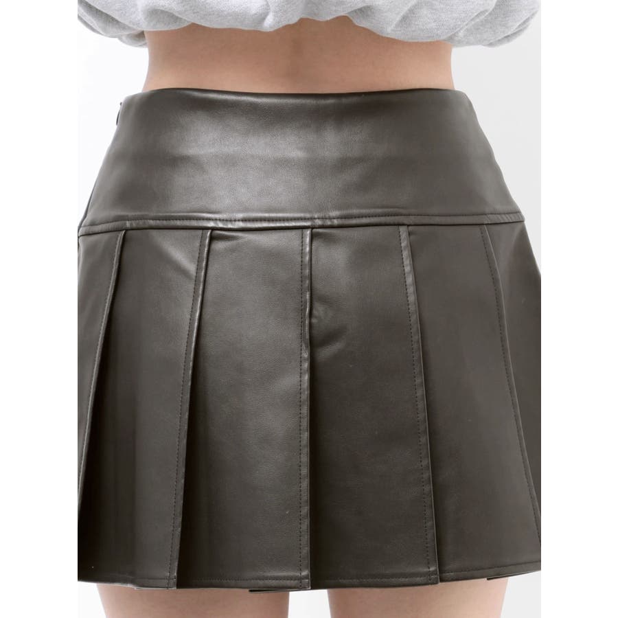 ヴィンテージライクフェイクレザープリーツミニスカート【セットアップ着用可能】