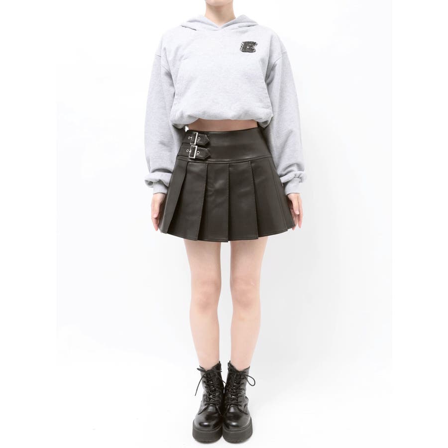 ■デザイン 合皮素材を使用したプリーツミニスカート。 セットアップで着用できる、ブルゾンの展開もあります。 インナーにはショートパンツが付いており、ミニ丈でも安心◎サイドに付いたの大きなバックルベルトがポイントです。 柔らかい素材を使用しているため、穿き心地がよくストレスフリーに着用できます。 ■スタイリング ニットやスウェットなど、幅広いコーディネートとお楽しみいただけます。ブルゾンとセットアップで着るのもおすすめ。■セットアップアイテム >>ヴィンテージライクフェイクレザーブルゾン-------------- 透け感:なし 裏地:なし 生地の厚み:普通 伸縮性:なし インナーパンツ付き--------------