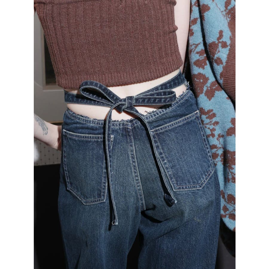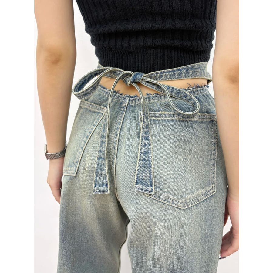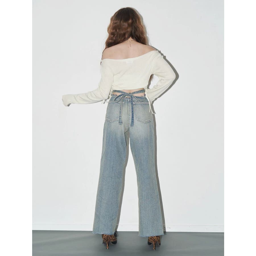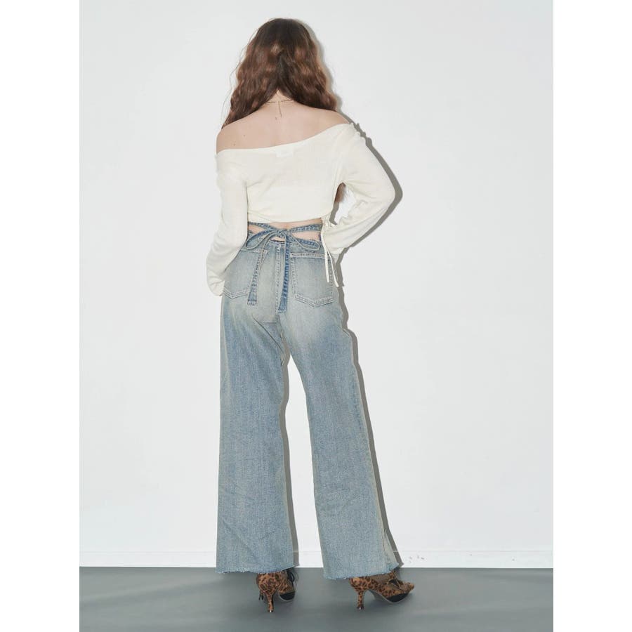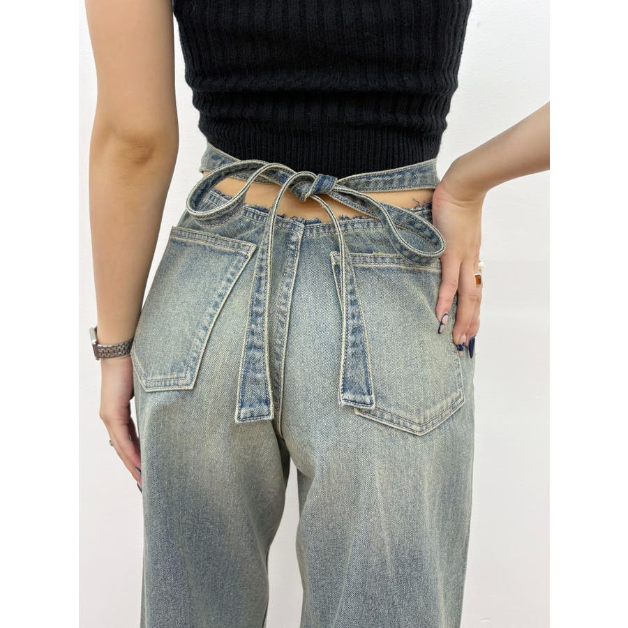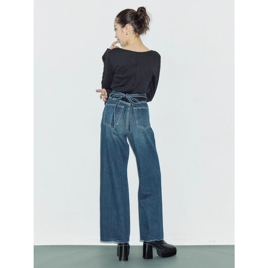 バックリボンワイドデニムパンツ