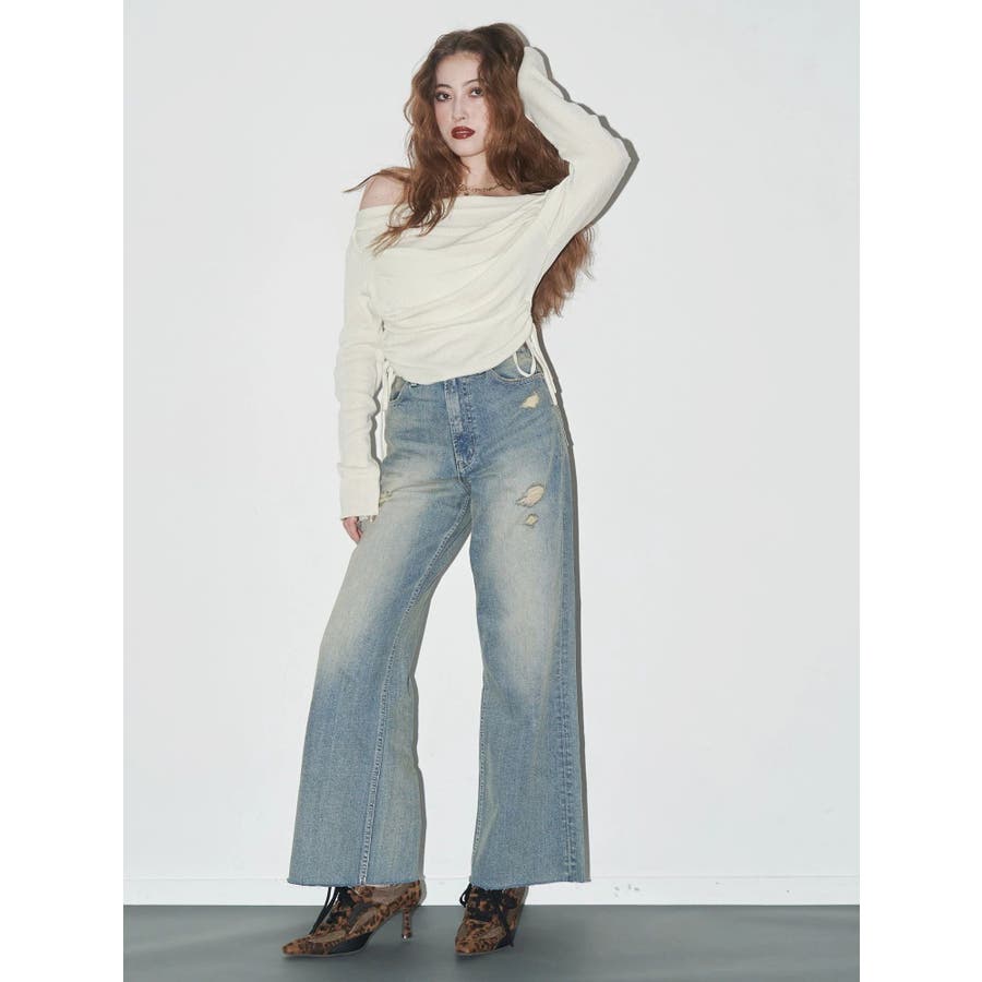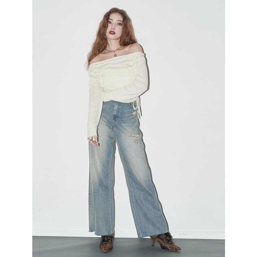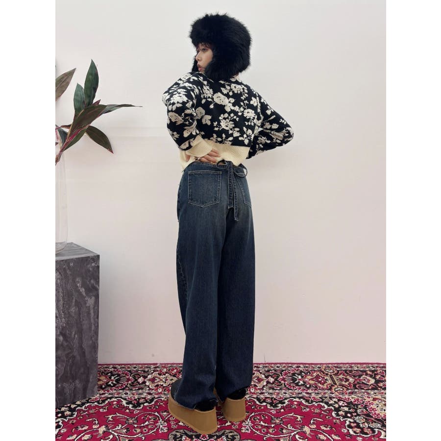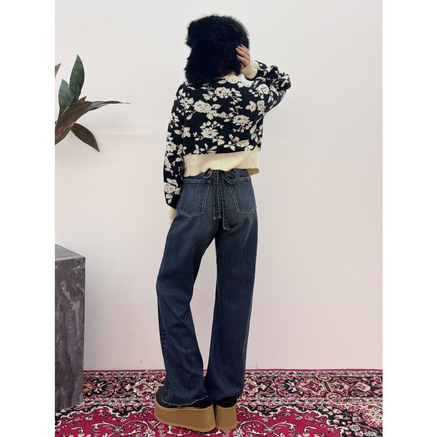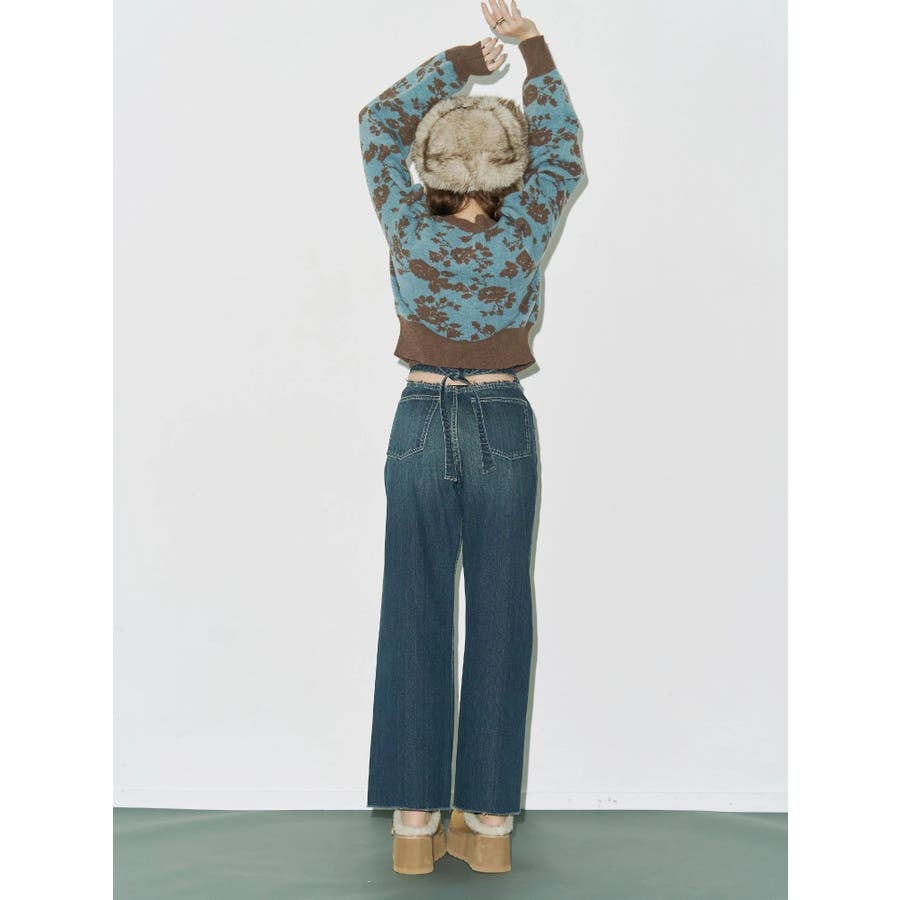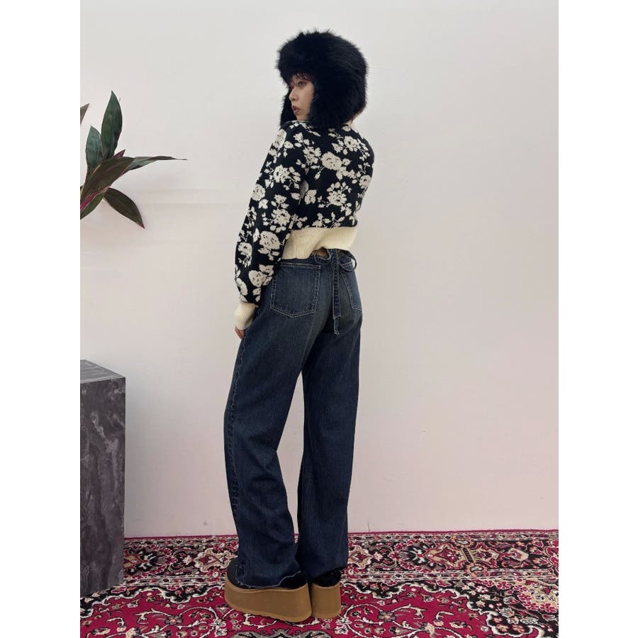 バックリボンワイドデニムパンツ