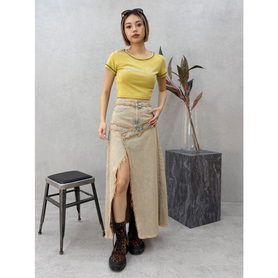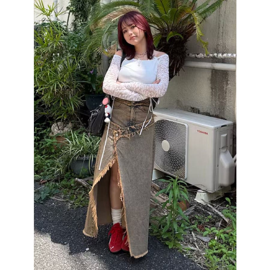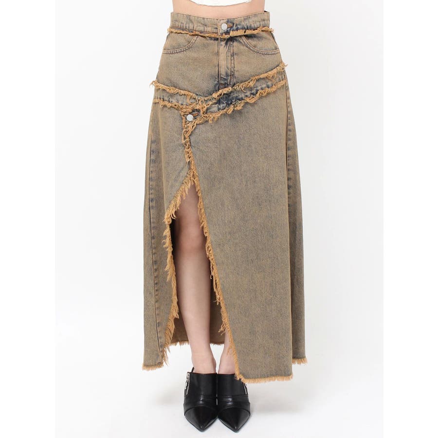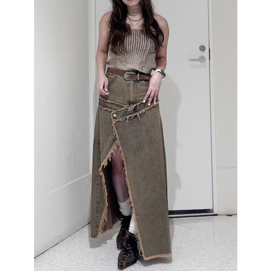 フリンジスリットロングデニムスカート