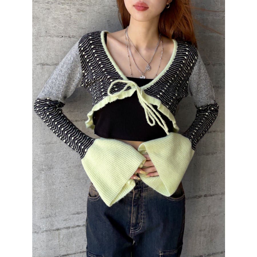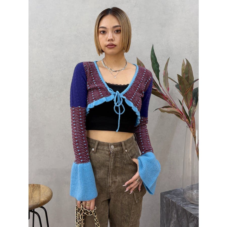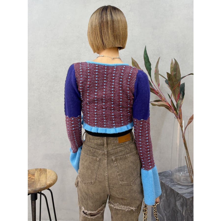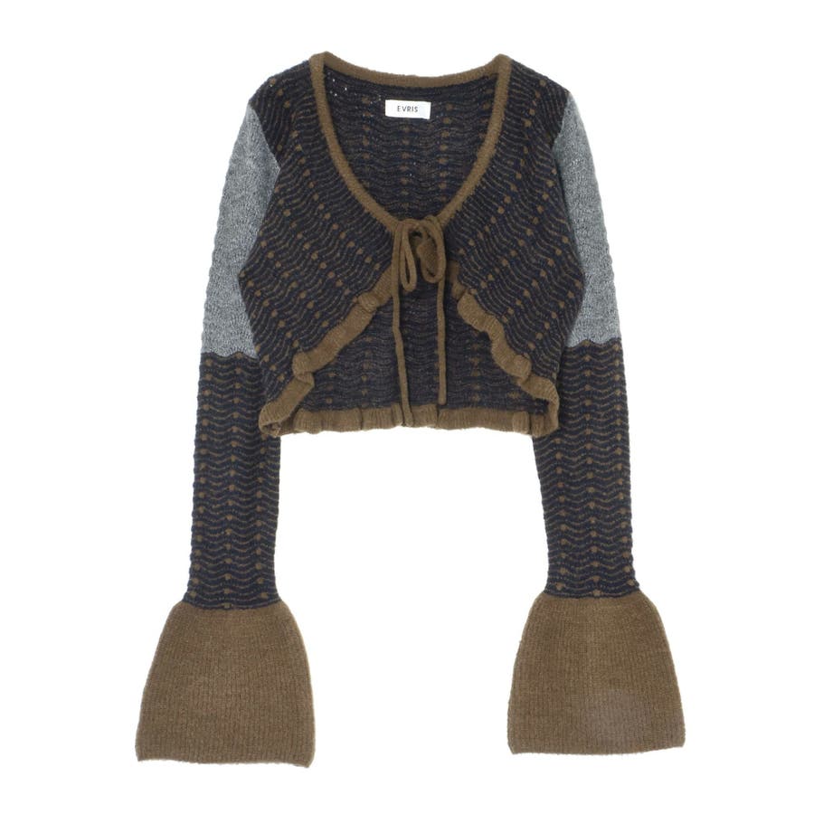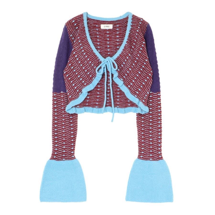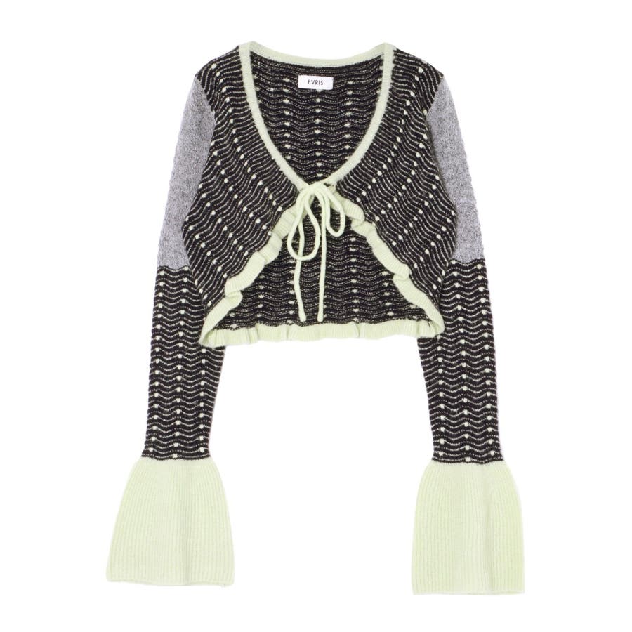 ■デザインEVRIS(エヴリス)らしいカラフルな配色が目を引くニットトップスです。オリジナルで作成しているパターンは、秋冬のEVRIS定番人気のデザインです。袖のたっぷりとしたボリュームに、身頃はすっきりとコンパクトなサイジング。メリハリのあるシルエットが叶う一枚です。■スタイリングフレアパンツや、カーゴパンツなどボリュームのあるボトムとの合わせがおすすめです。-------------- 透け感:なし 裏地:なし 生地の厚み:普通伸縮性:あり--------------