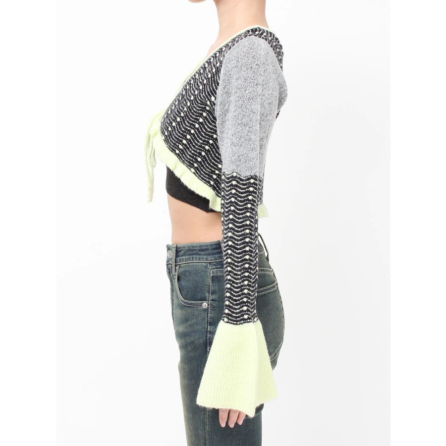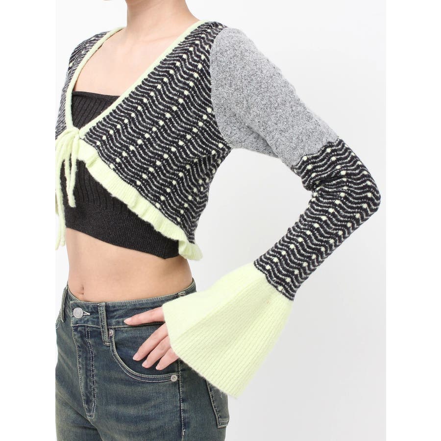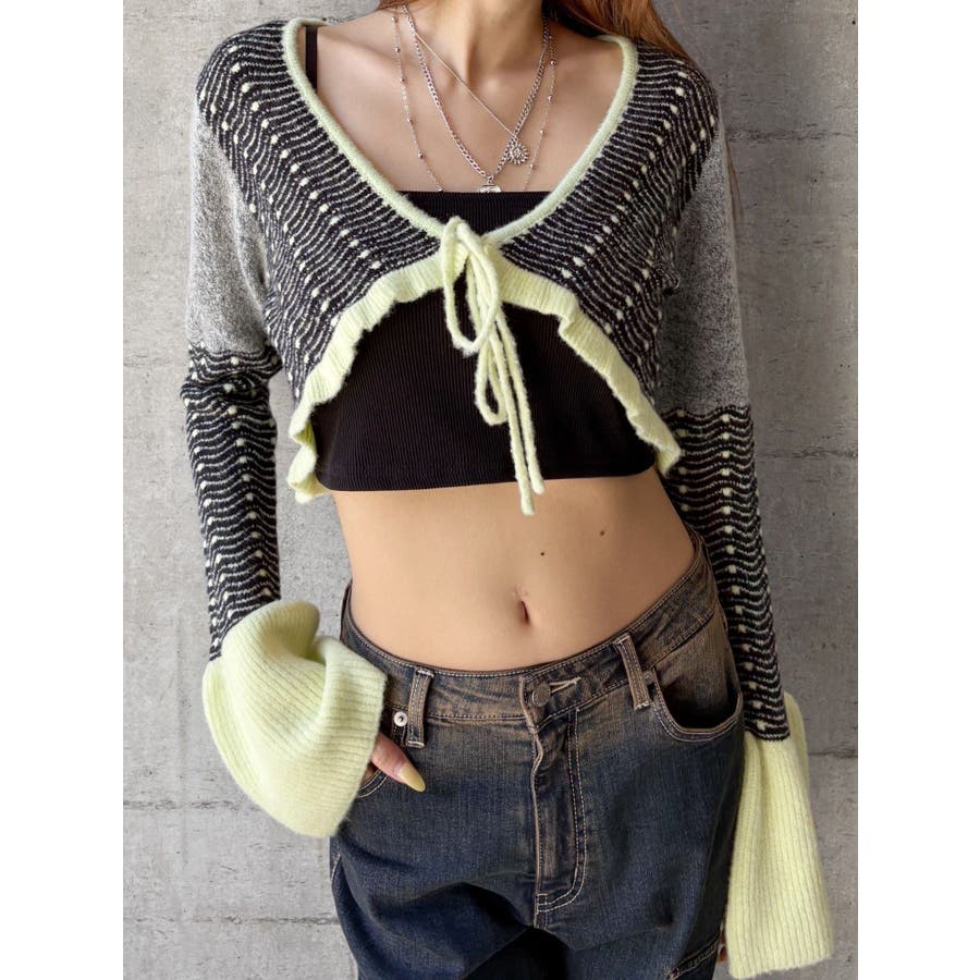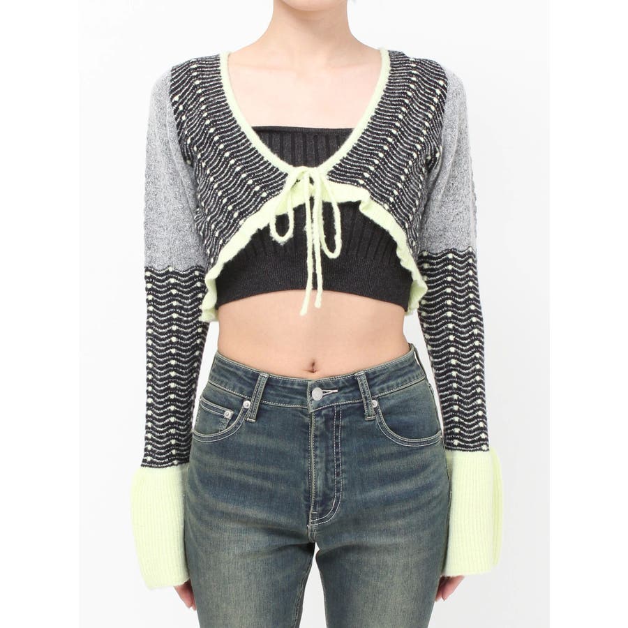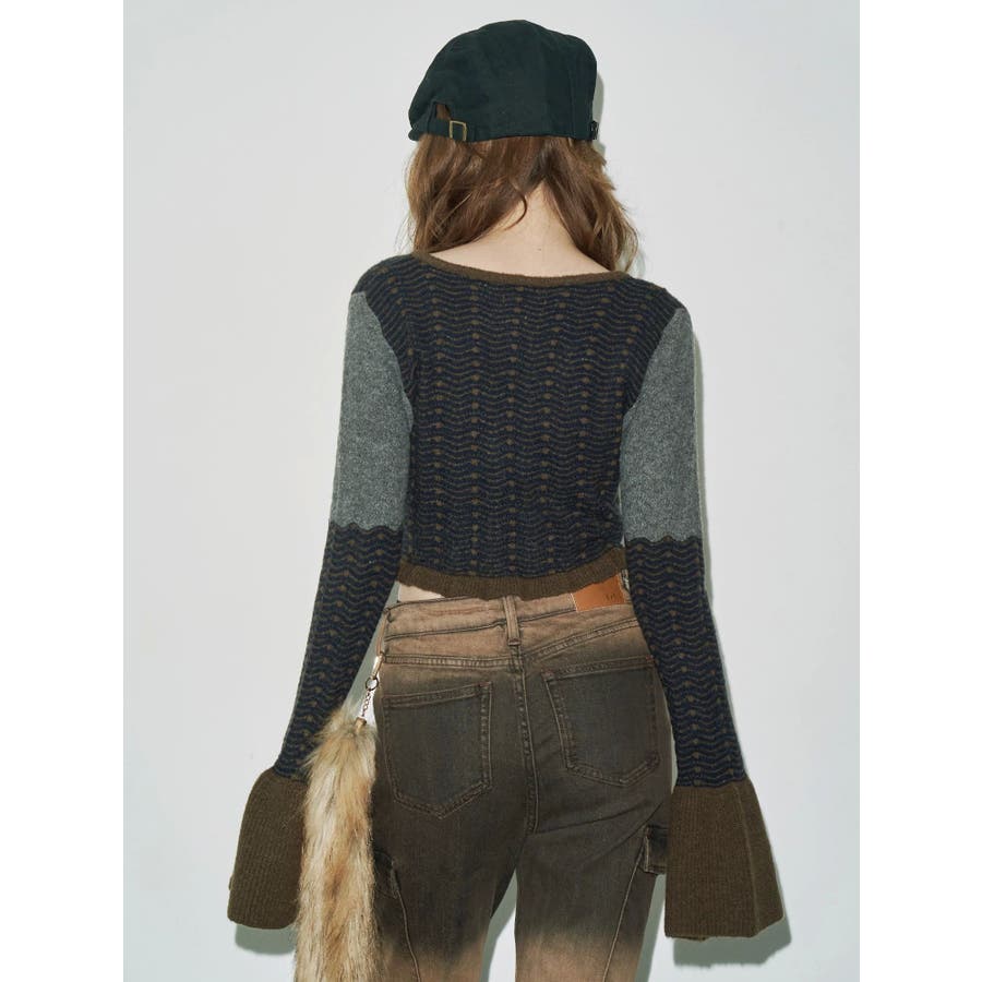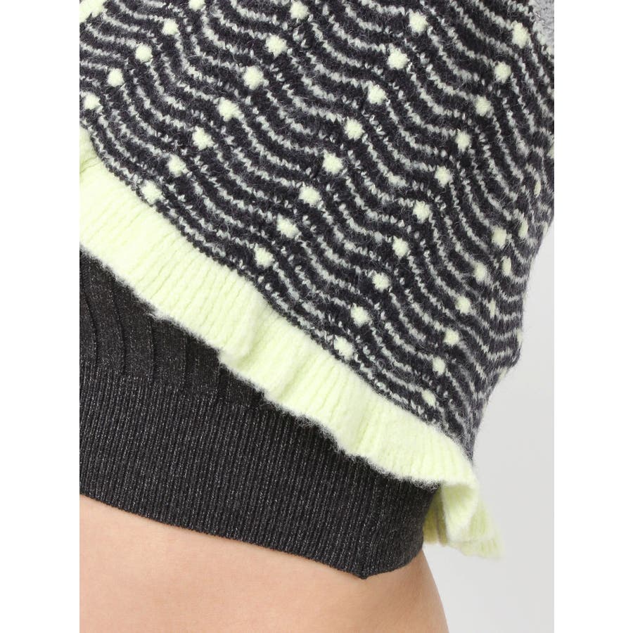 ■デザインEVRIS(エヴリス)らしいカラフルな配色が目を引くニットトップスです。オリジナルで作成しているパターンは、秋冬のEVRIS定番人気のデザインです。袖のたっぷりとしたボリュームに、身頃はすっきりとコンパクトなサイジング。メリハリのあるシルエットが叶う一枚です。■スタイリングフレアパンツや、カーゴパンツなどボリュームのあるボトムとの合わせがおすすめです。-------------- 透け感:なし 裏地:なし 生地の厚み:普通伸縮性:あり--------------