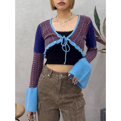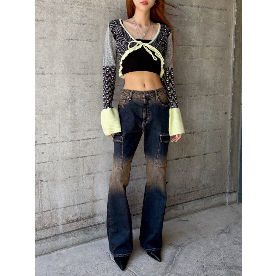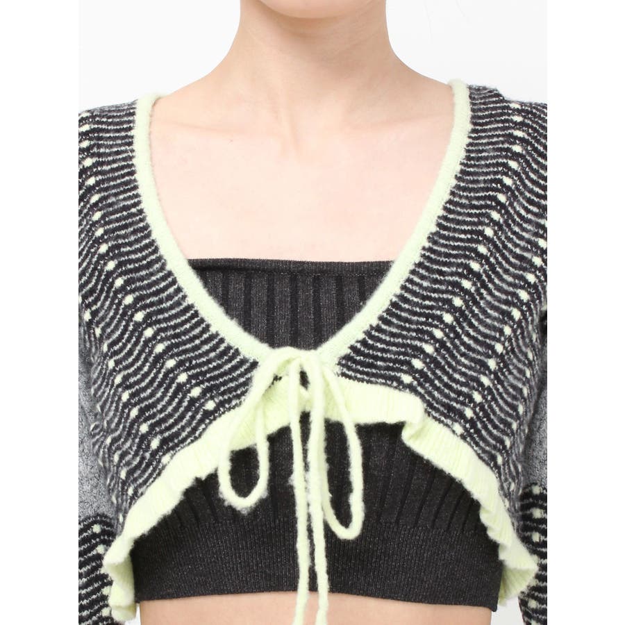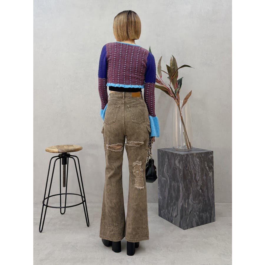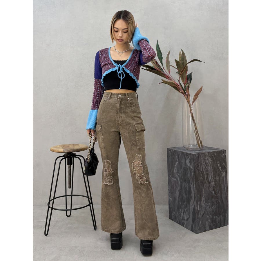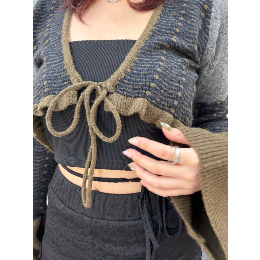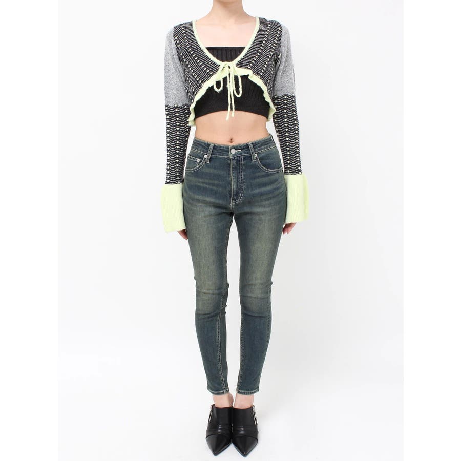 ■デザインEVRIS(エヴリス)らしいカラフルな配色が目を引くニットトップスです。オリジナルで作成しているパターンは、秋冬のEVRIS定番人気のデザインです。袖のたっぷりとしたボリュームに、身頃はすっきりとコンパクトなサイジング。メリハリのあるシルエットが叶う一枚です。■スタイリングフレアパンツや、カーゴパンツなどボリュームのあるボトムとの合わせがおすすめです。-------------- 透け感:なし 裏地:なし 生地の厚み:普通伸縮性:あり--------------
