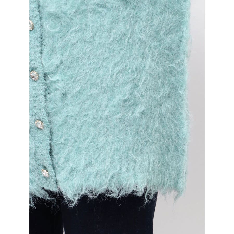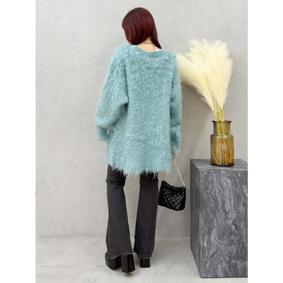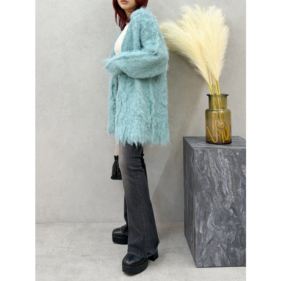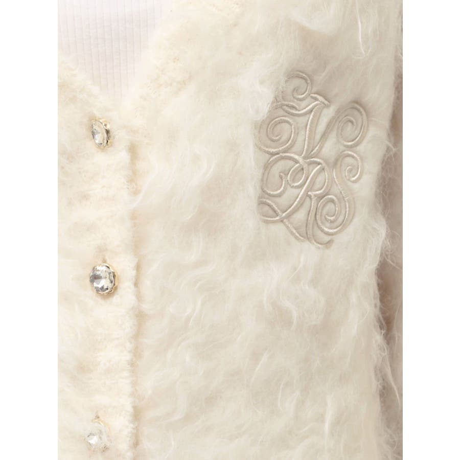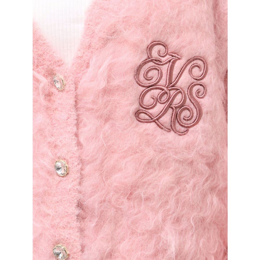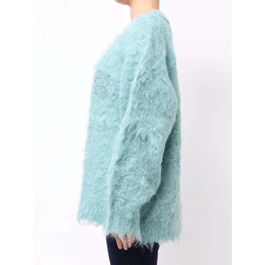 ■デザインソフトタッチな毛足の長いシャギーニットのカーディガン。ふわっとした柔らかな素材で着心地の良い1枚です。キラキラ光るビジューボタンに胸元のEVRIS(エヴリス)ロゴの刺繍が目を引くアイテム。■スタイリング デニムやミニボトムなどボトムを選ばず着れる優秀アイテム。 ヒップまで隠れる丈感で、ワンピース風に1枚での着用も◎ -------------- 透け感:なし 裏地:なし 生地の厚み:厚め伸縮性:あり--------------