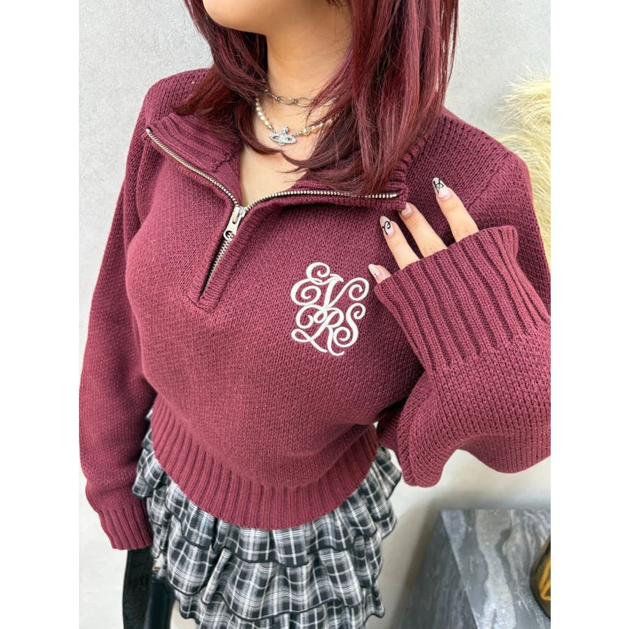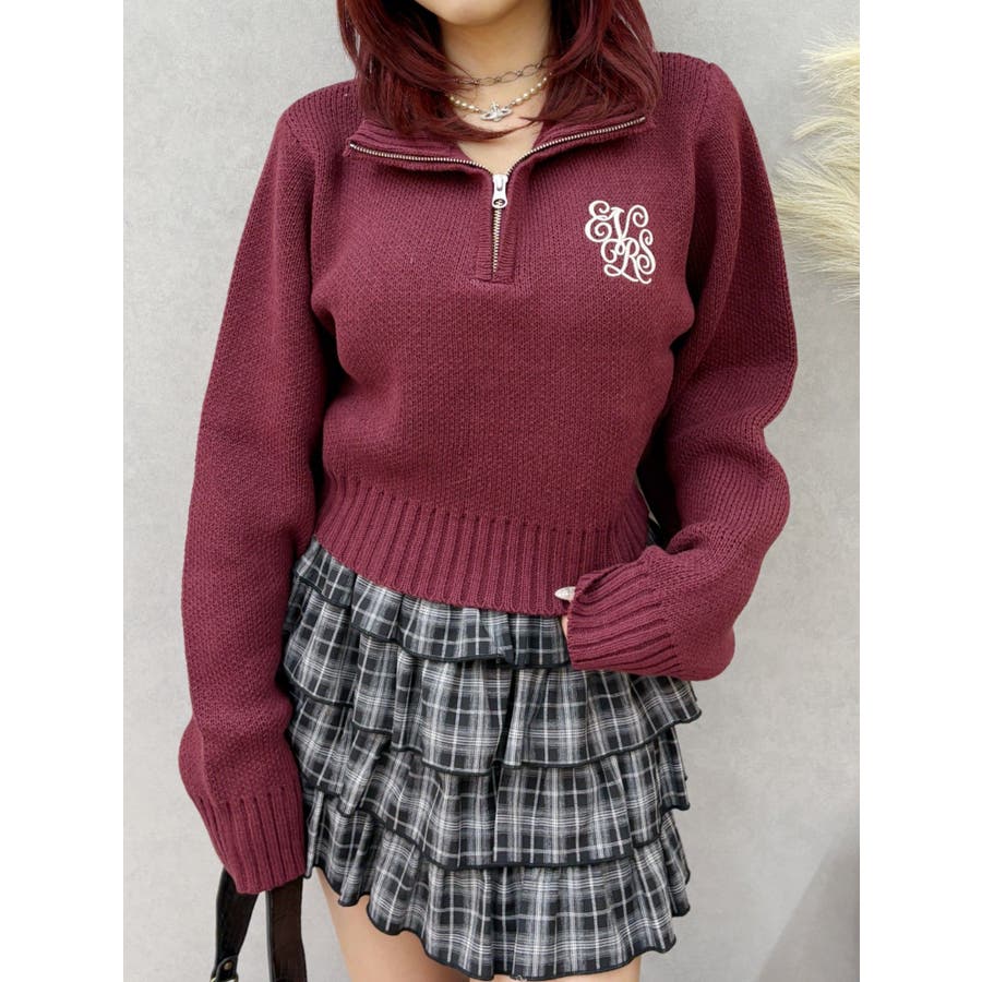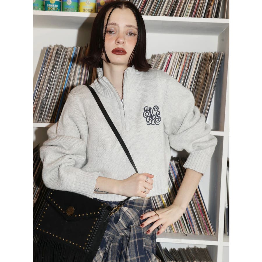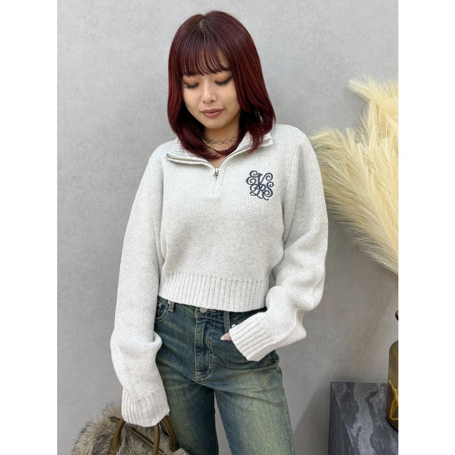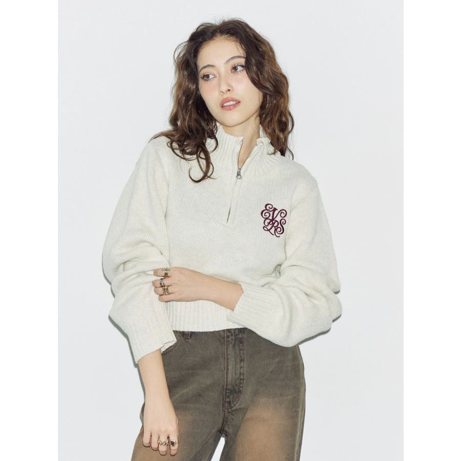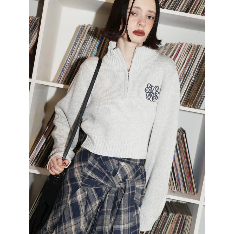 ■デザインEVRIS(エヴリス)人気のハーフジップニット。短すぎない着丈でどんなボトムスにもあわせやすいデザインです。 秋らしいカラー展開と胸元に入ったオリジナルのロゴデザインがポイント。■スタイリング 簡単にスタイルUPが叶うのが嬉しい短丈ニット。 EVRIS定番のハイウエストボトムとの相性が抜群です◎。 トレンドのプリーツスカートなどミニボトムとの合わせもおすすめです。 -------------- 透け感:なし 裏地:なし 生地の厚み:やや厚め 伸縮性:あり --------------