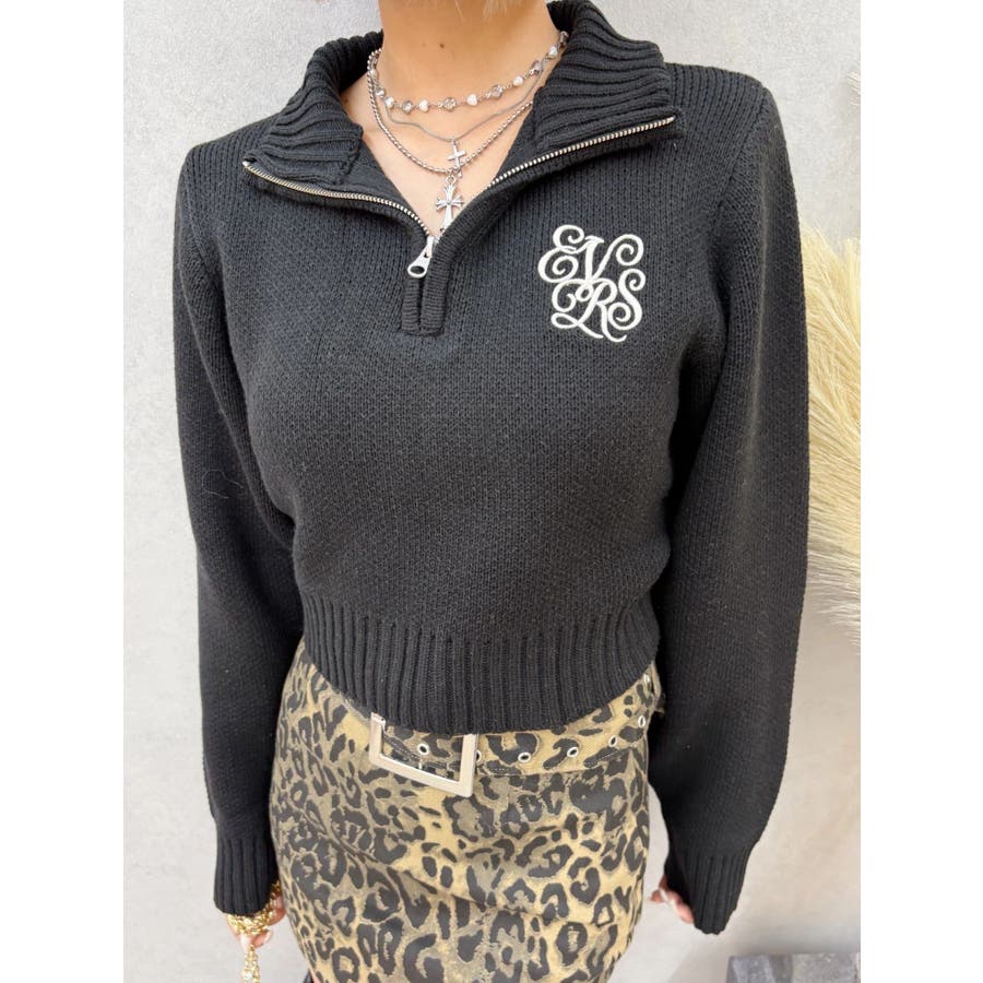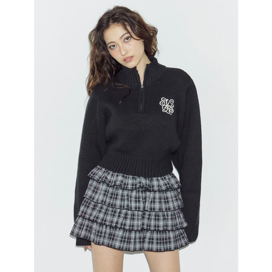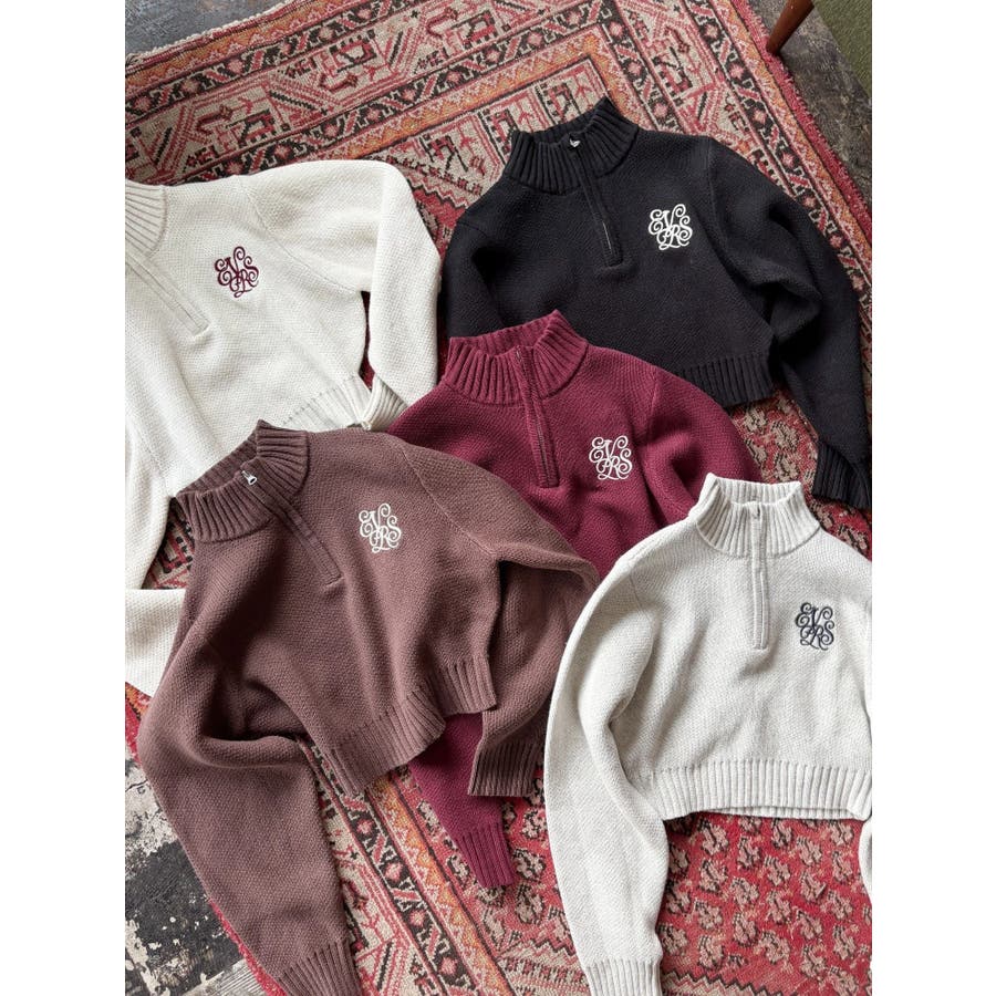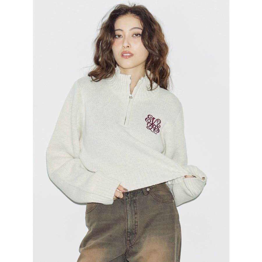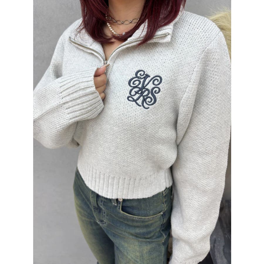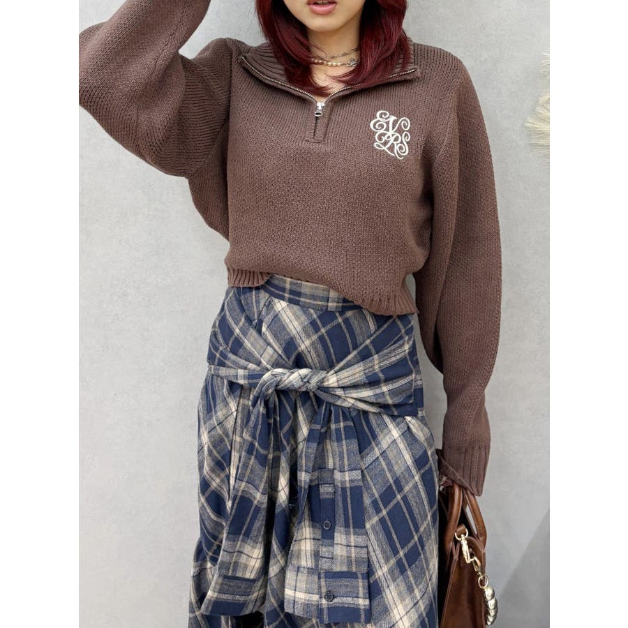 ■デザインEVRIS(エヴリス)人気のハーフジップニット。短すぎない着丈でどんなボトムスにもあわせやすいデザインです。 秋らしいカラー展開と胸元に入ったオリジナルのロゴデザインがポイント。■スタイリング 簡単にスタイルUPが叶うのが嬉しい短丈ニット。 EVRIS定番のハイウエストボトムとの相性が抜群です◎。 トレンドのプリーツスカートなどミニボトムとの合わせもおすすめです。 -------------- 透け感:なし 裏地:なし 生地の厚み:やや厚め 伸縮性:あり --------------