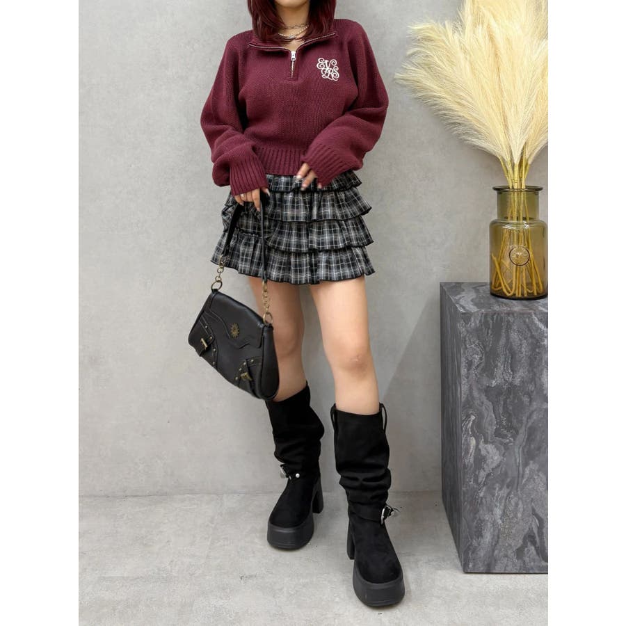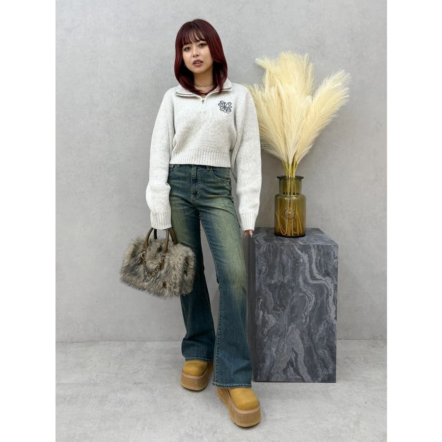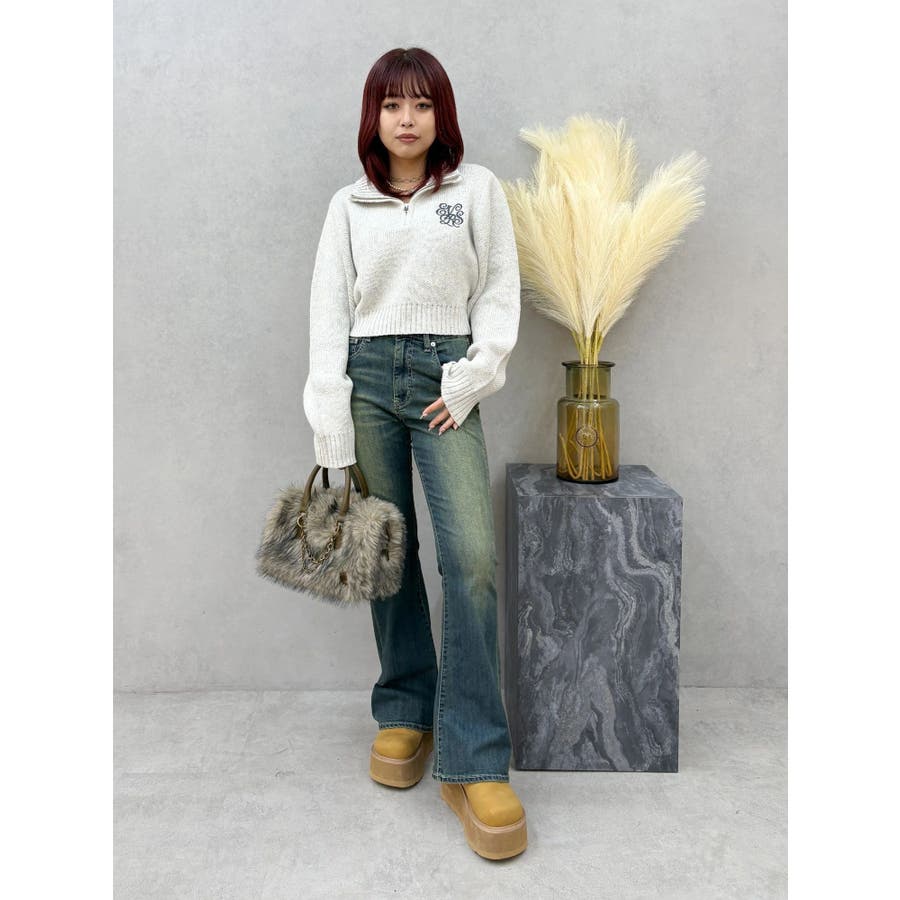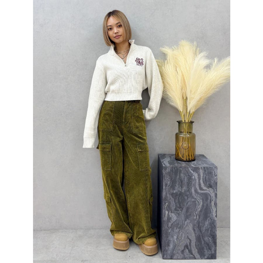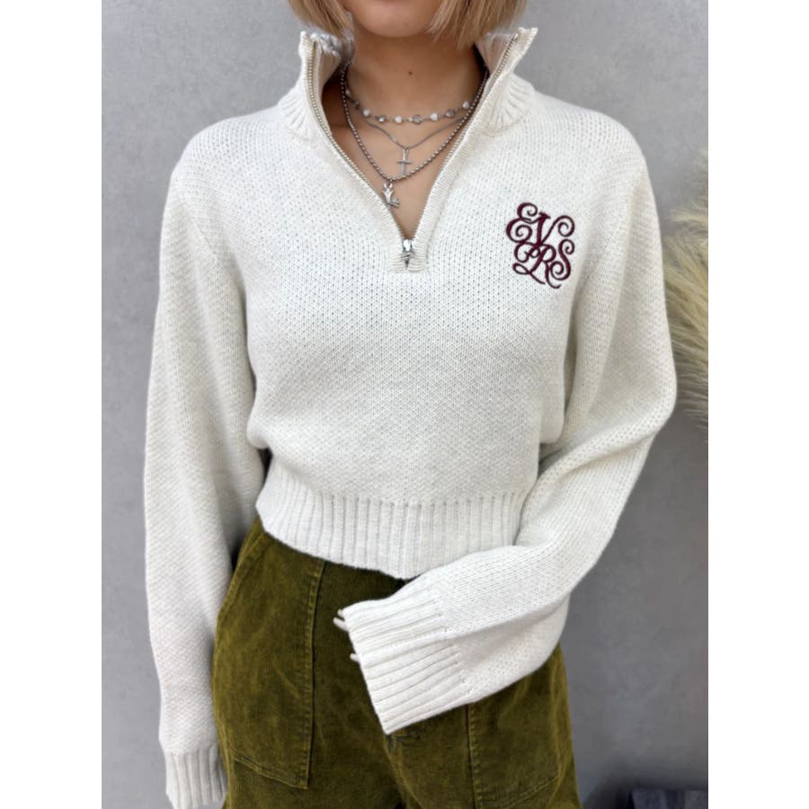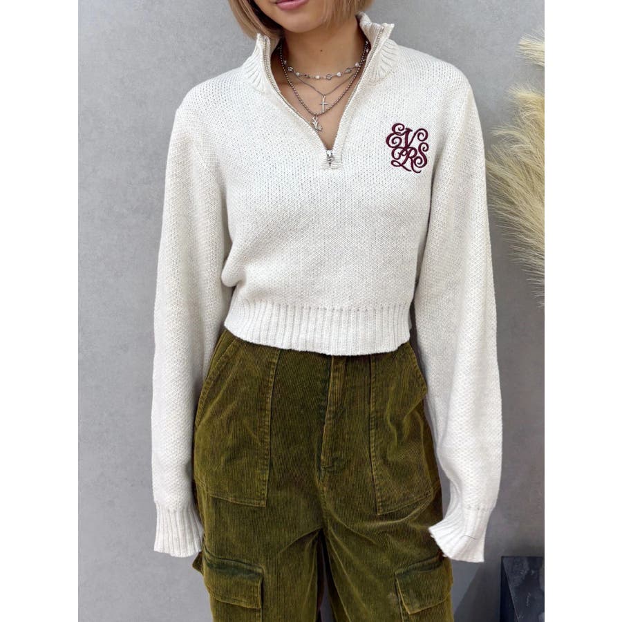 ■デザインEVRIS(エヴリス)人気のハーフジップニット。短すぎない着丈でどんなボトムスにもあわせやすいデザインです。 秋らしいカラー展開と胸元に入ったオリジナルのロゴデザインがポイント。■スタイリング 簡単にスタイルUPが叶うのが嬉しい短丈ニット。 EVRIS定番のハイウエストボトムとの相性が抜群です◎。 トレンドのプリーツスカートなどミニボトムとの合わせもおすすめです。 -------------- 透け感:なし 裏地:なし 生地の厚み:やや厚め 伸縮性:あり --------------