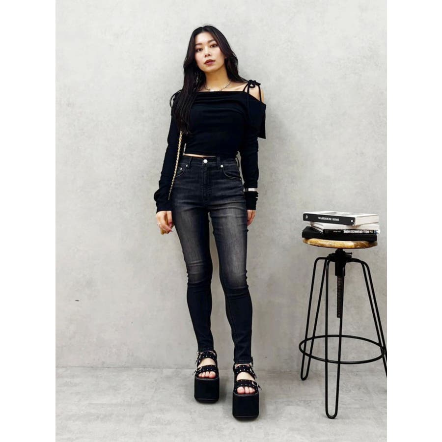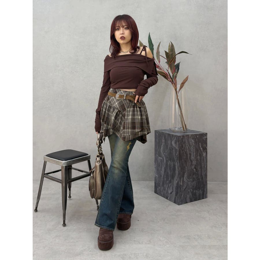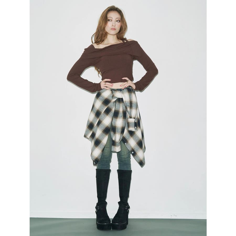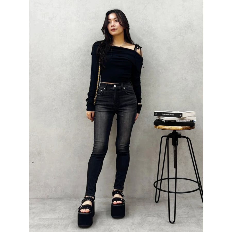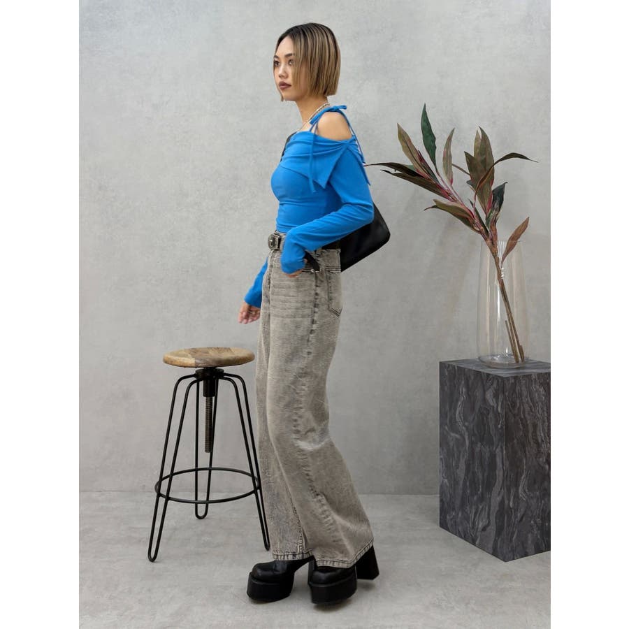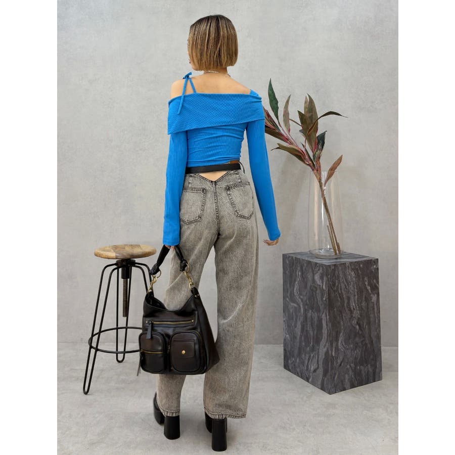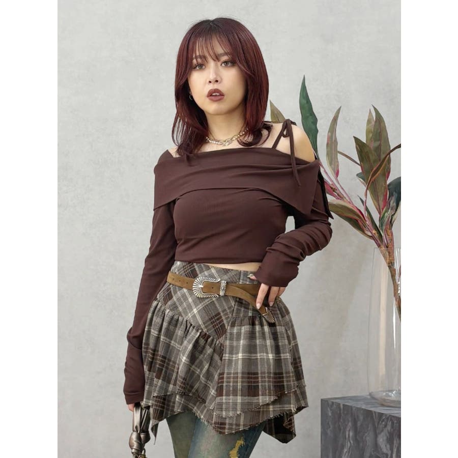 トレンドのワンショルダーデザインのリブトップスです。落ち感のある柔らかいリブを使用し着心地のいいデザイントップスとなっています。コンパクトなシルエットでワイドボトムのスタイリングがおすすめとなっています。