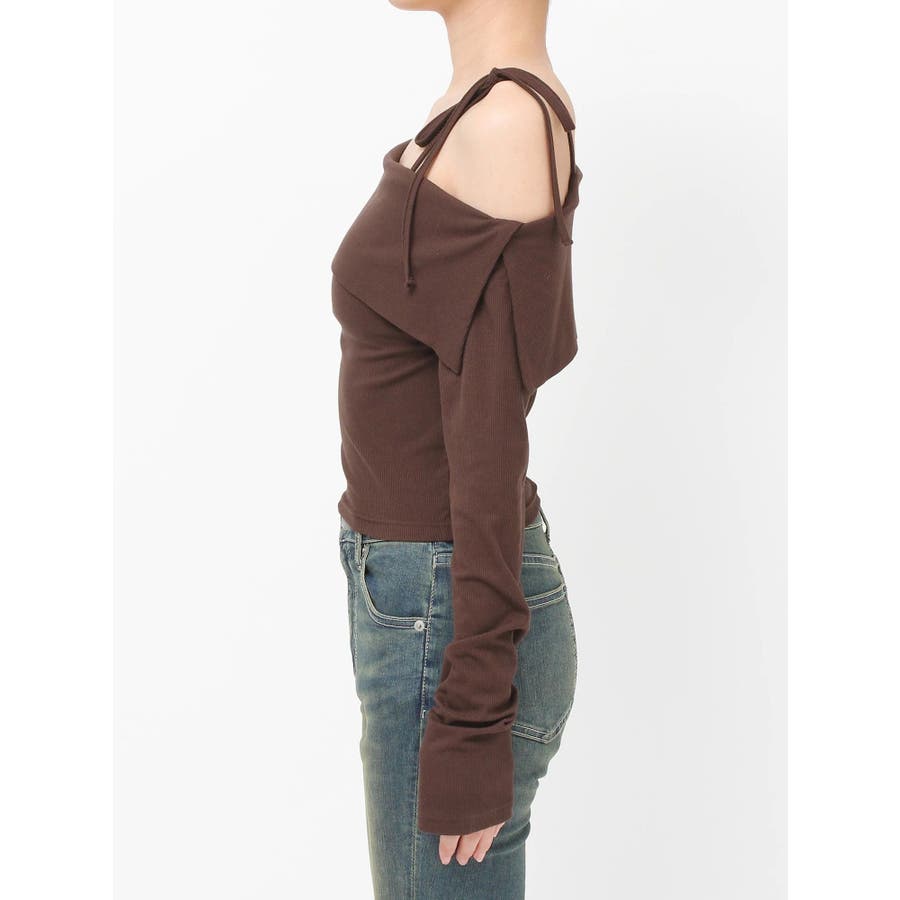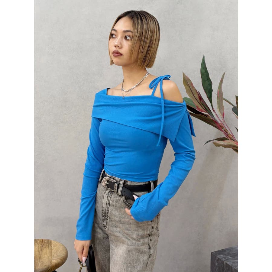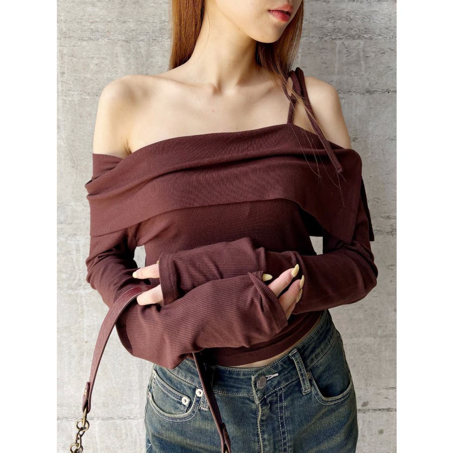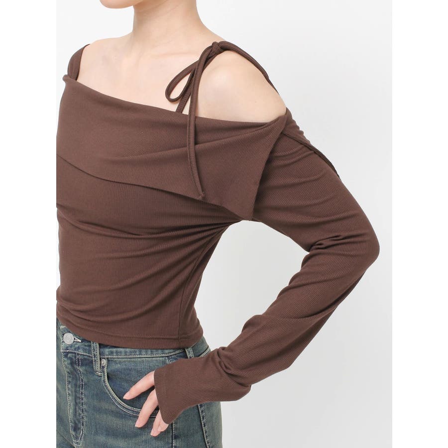リブオフショルトップス