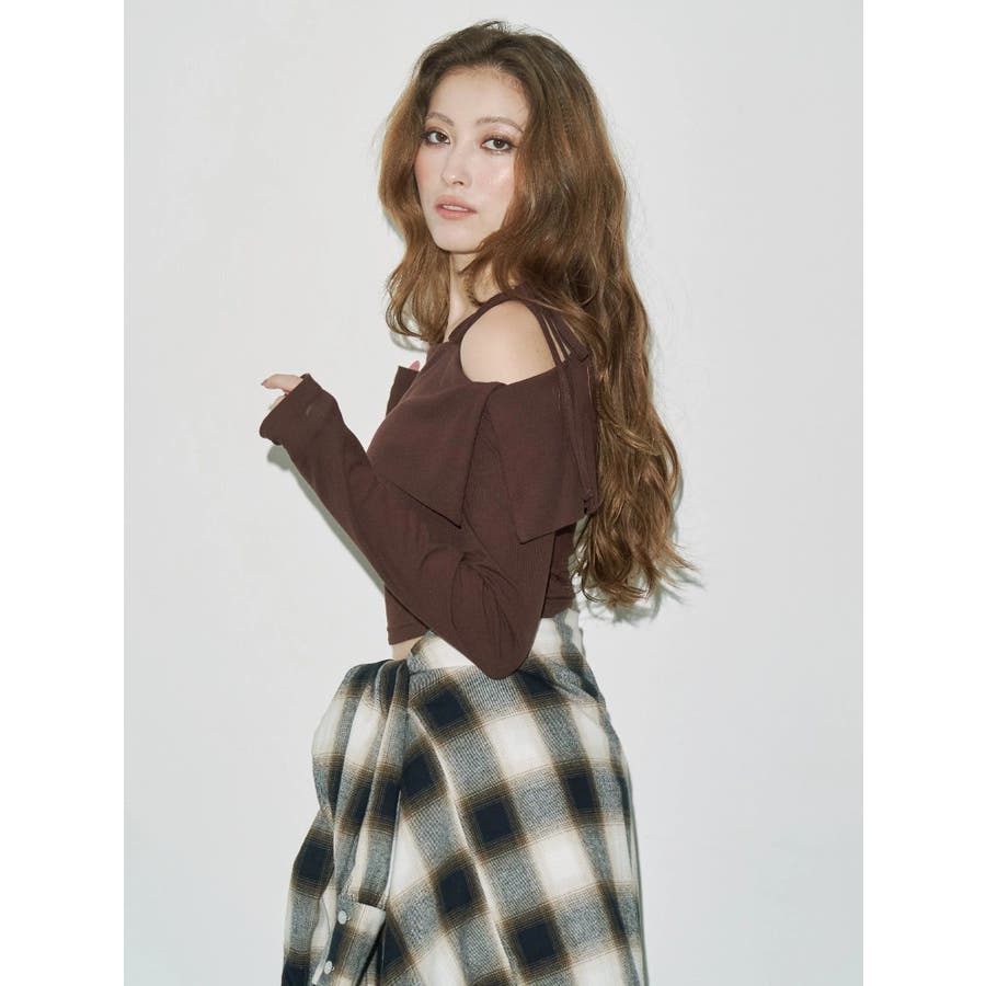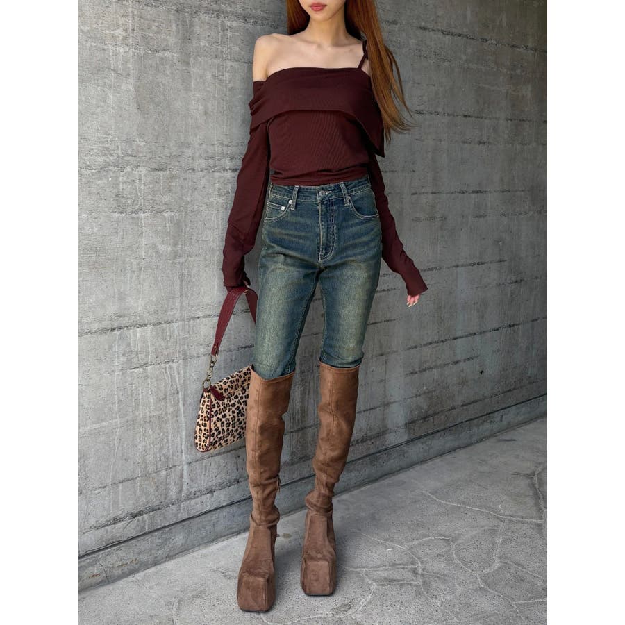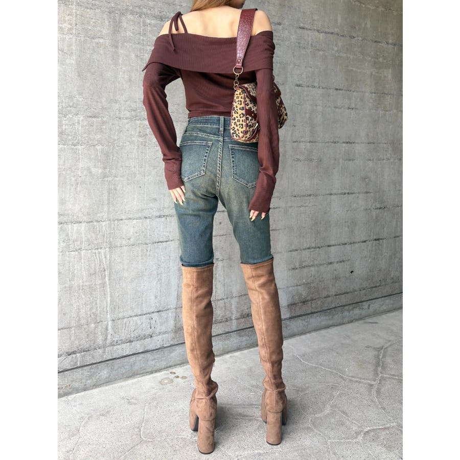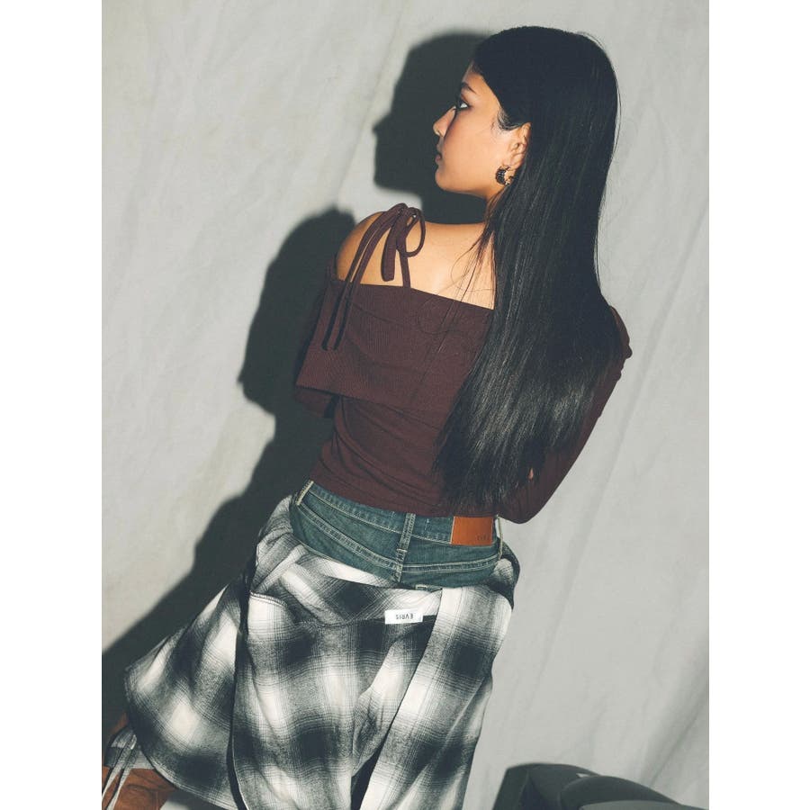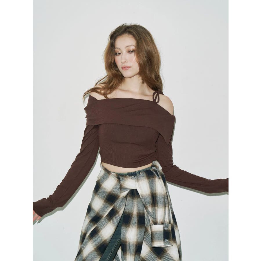 リブオフショルトップス