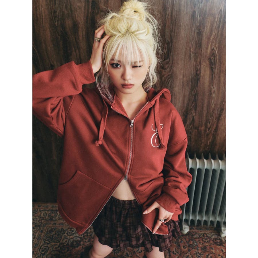裏起毛のオーバーサイズのジップアップパーカーです。
