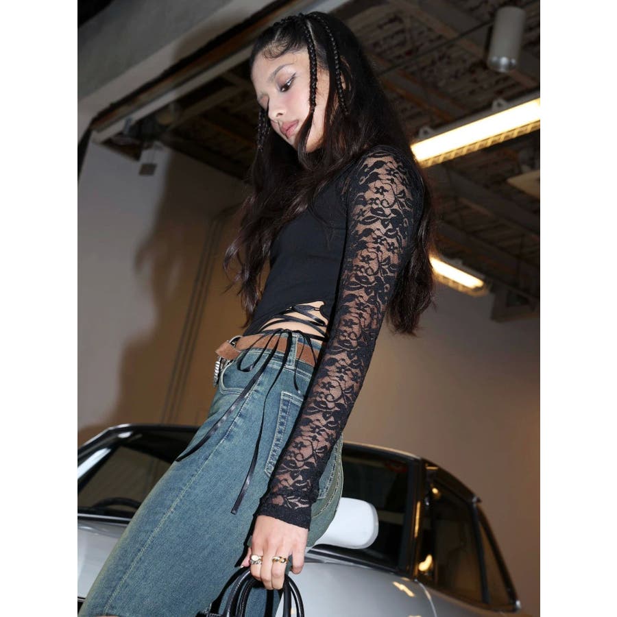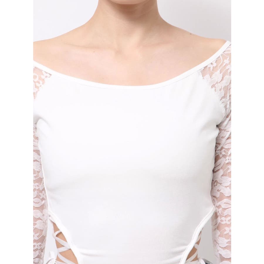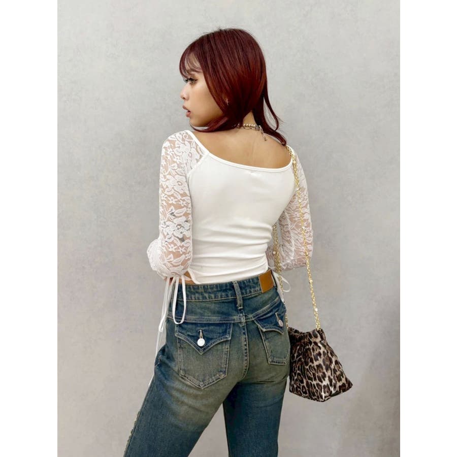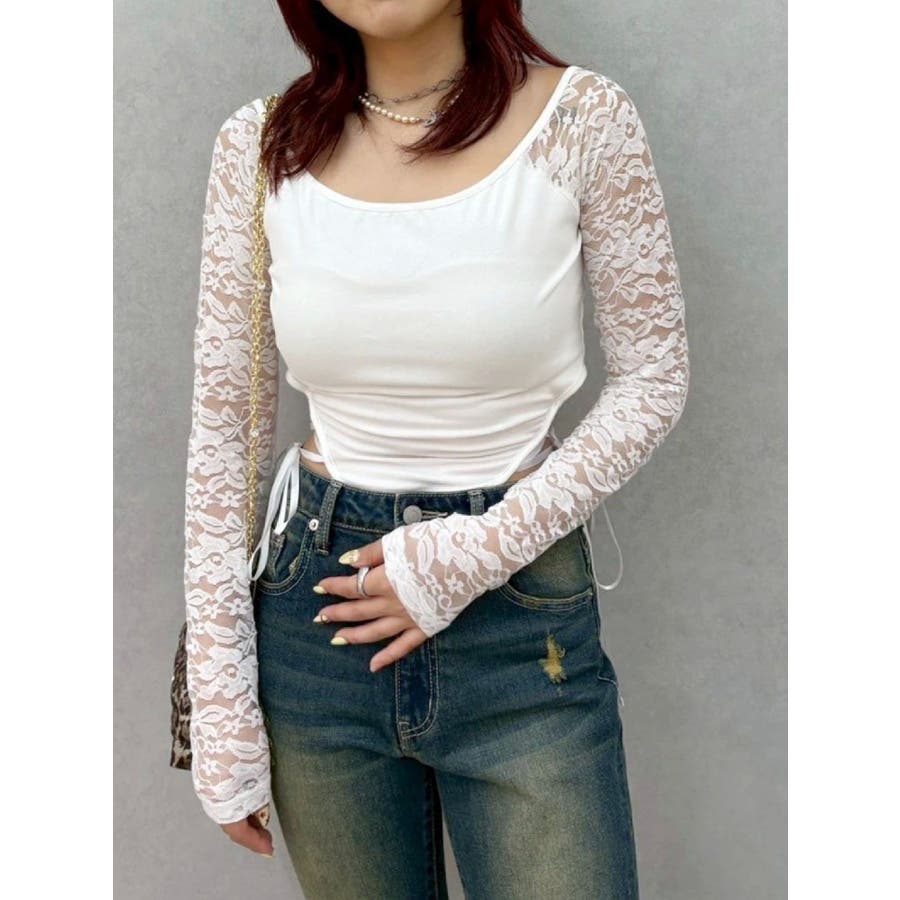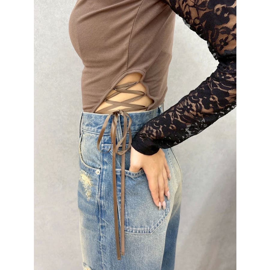 ■デザインレース素材やサイドのプレゼントリボンを使用した今季のトレンドが詰まったインパクトのあるボディースーツです。 サイドのレース部分は調節可能になっており、着脱しやすくなっております。 腕は総レースで透け感があったりと女性らしいセクシーなデザインですが見頃はカットソー素材なので抵抗なく着やすいアイテムです。■スタイリングデニムやスウェットと合わせたカジュアルなスタイリングがオススメです。