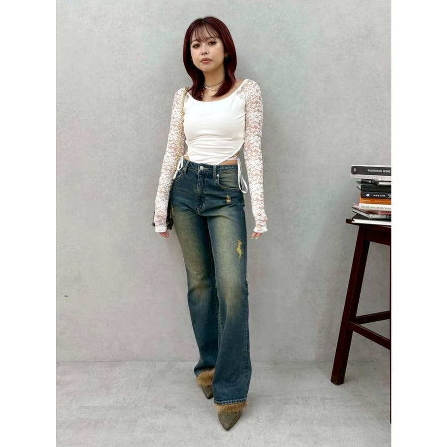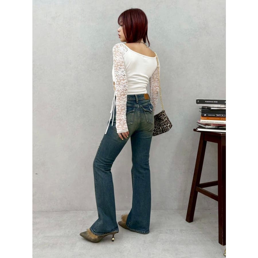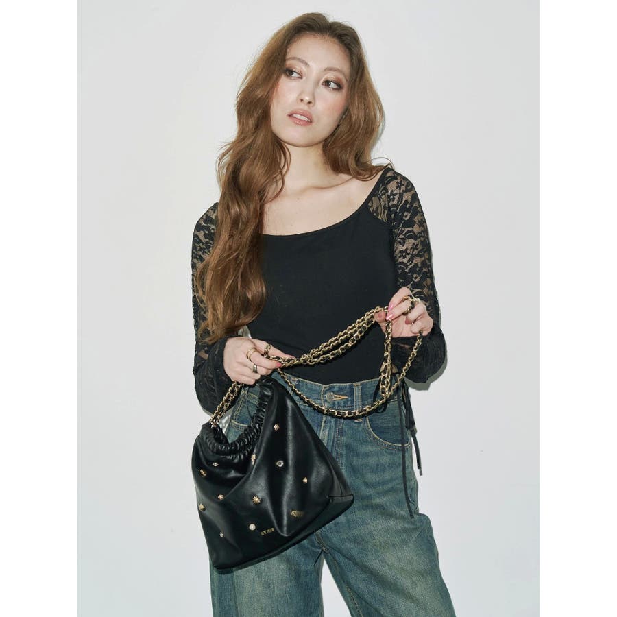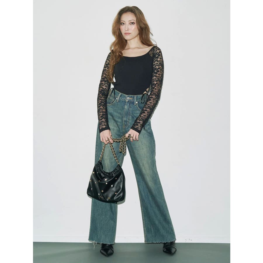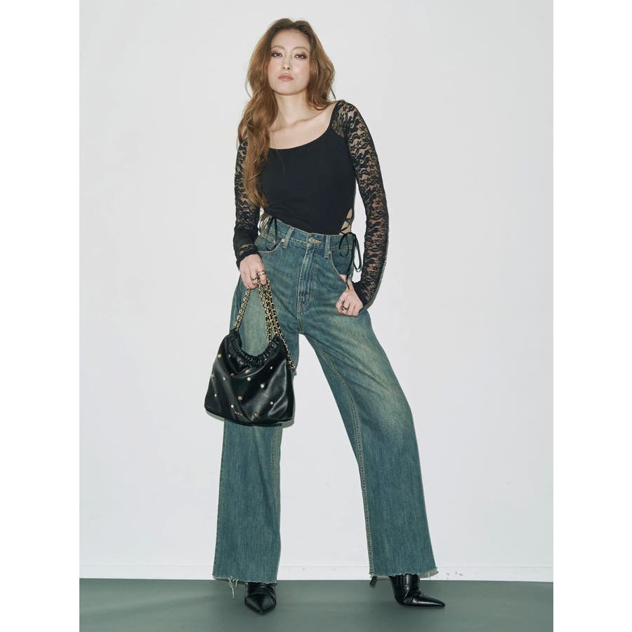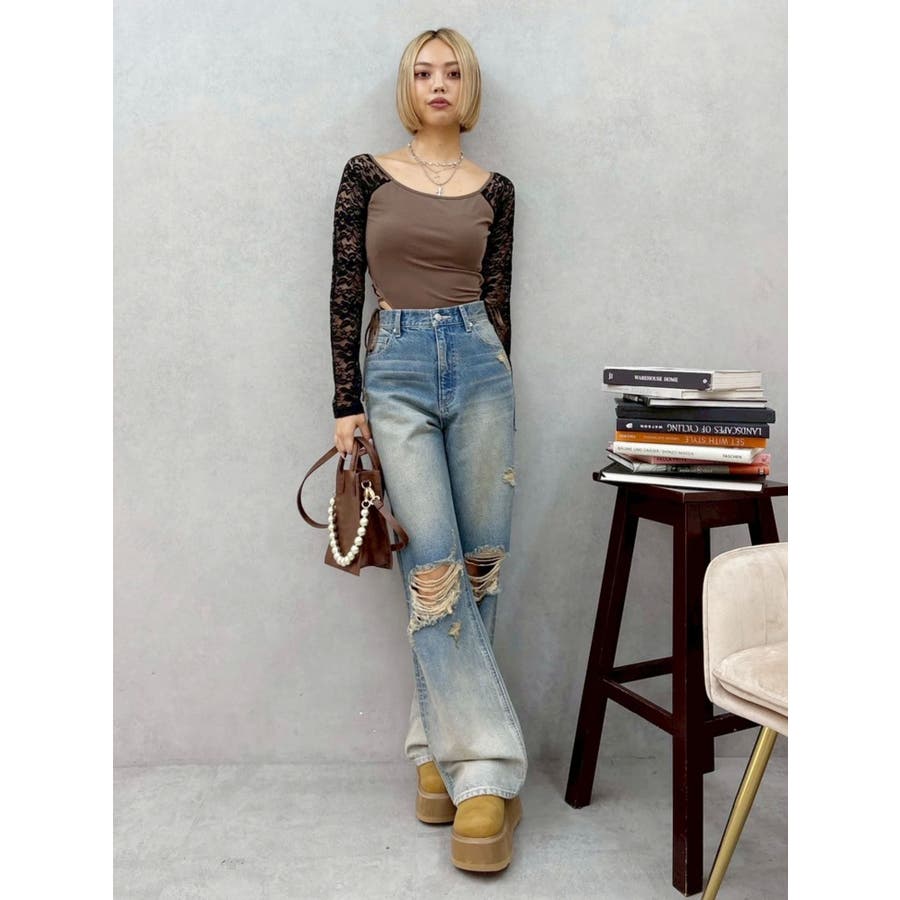 ■デザインレース素材やサイドのプレゼントリボンを使用した今季のトレンドが詰まったインパクトのあるボディースーツです。 サイドのレース部分は調節可能になっており、着脱しやすくなっております。 腕は総レースで透け感があったりと女性らしいセクシーなデザインですが見頃はカットソー素材なので抵抗なく着やすいアイテムです。■スタイリングデニムやスウェットと合わせたカジュアルなスタイリングがオススメです。