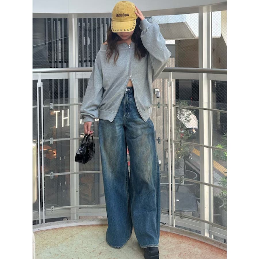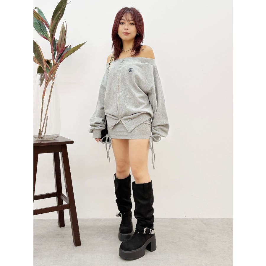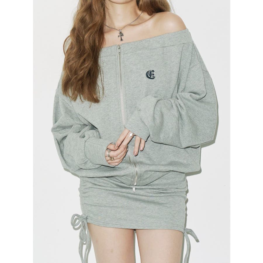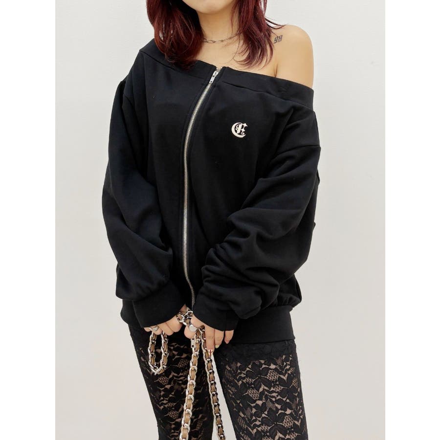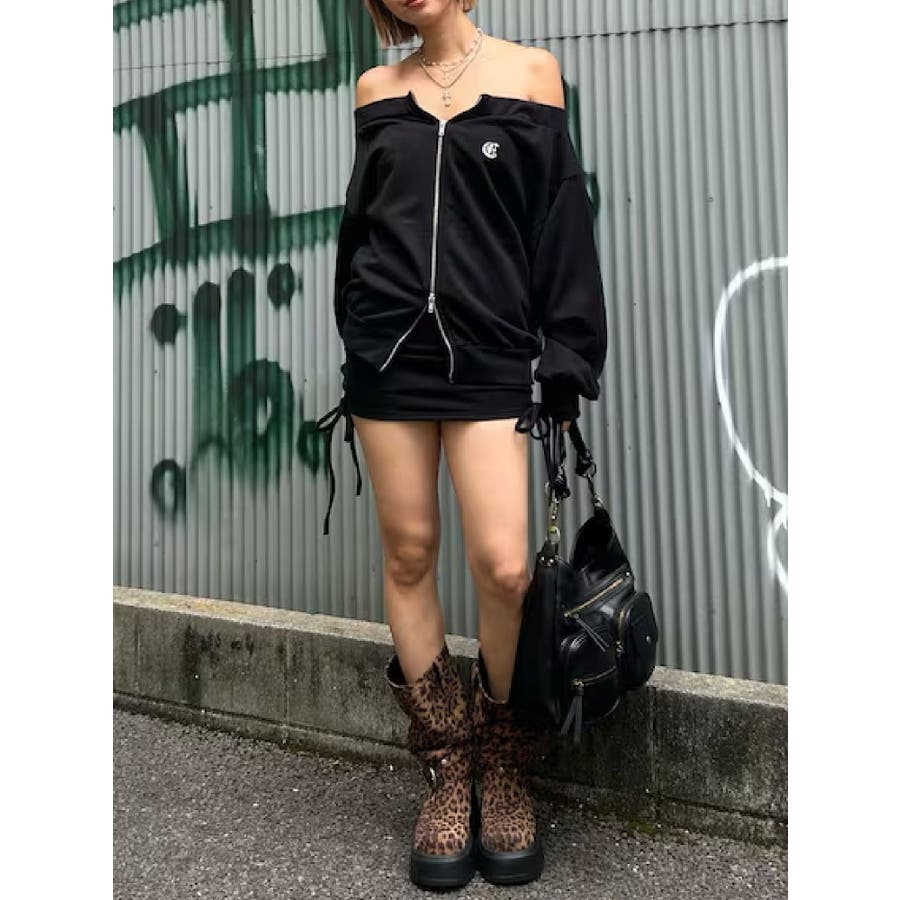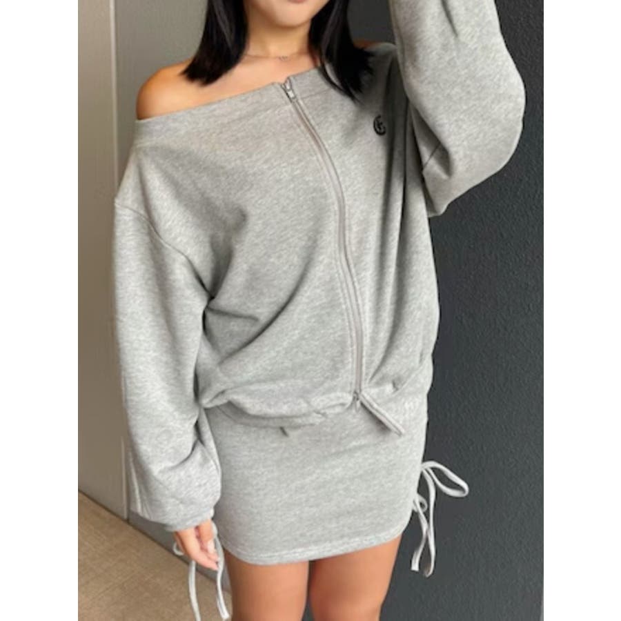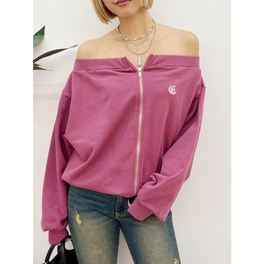 ジップアップオフショルトップス【セットアップ着用可能】