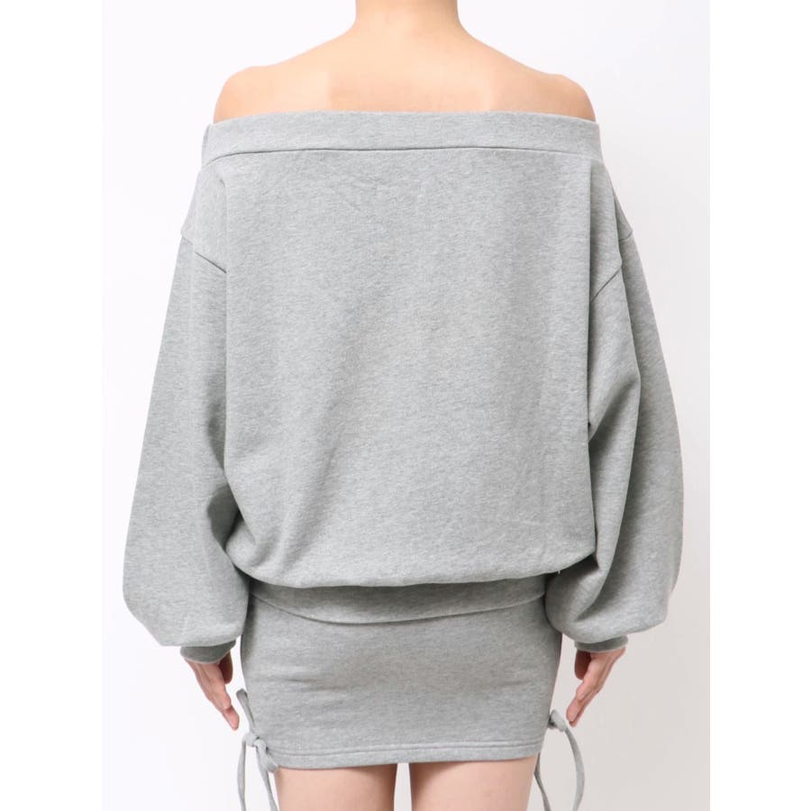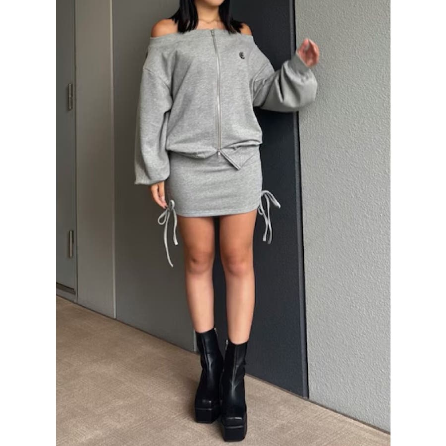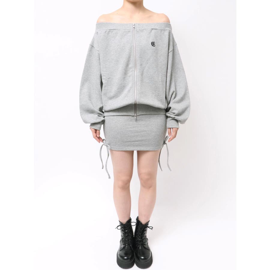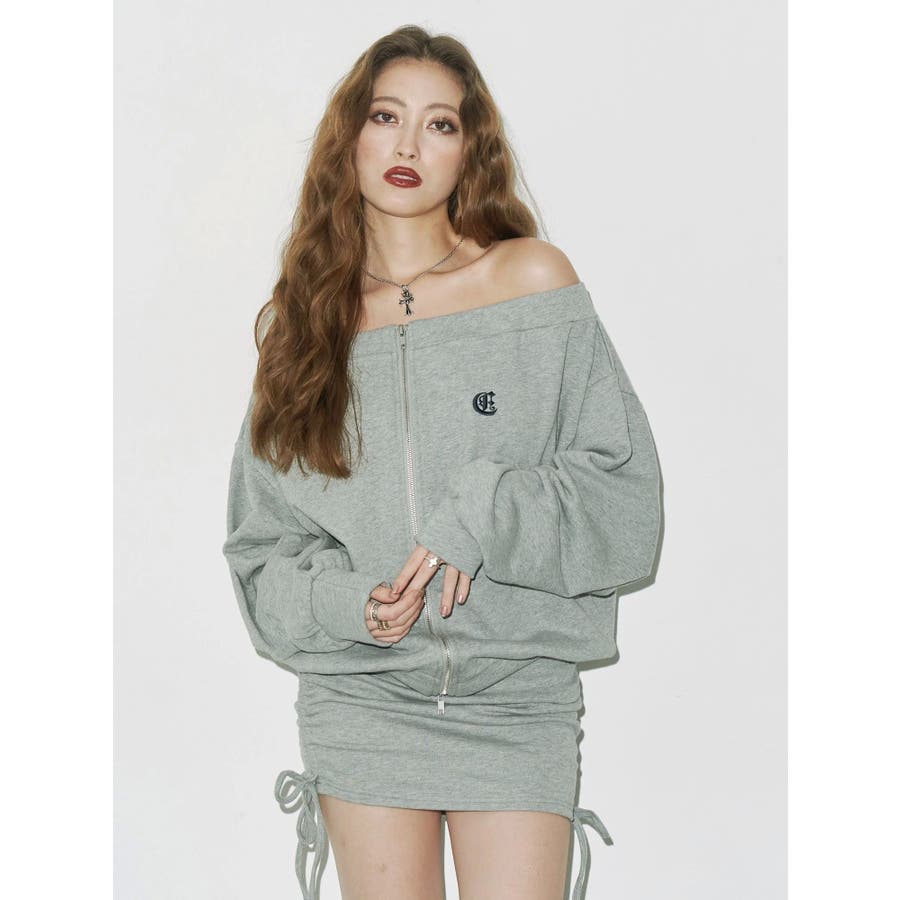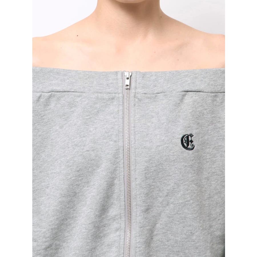 ■デザイン 左胸にワンポイントロゴを施した裏毛素材のスウェットオフショルトップスです。 前見頃には逆開ファスナー付きで、開け具合で抜け感の調整もできます。 デコルテを大胆に見せつつ、ラフな裏毛素材でこなれたバランスに。 同素材のミニスカートとセットアップで合わせれば一気にトレンド感のあるストリートスタイルの完成です。 ■セットアップアイテム >>サイドギャザースウェットミニスカート-------------- 透け感:なし 裏地:なし生地の厚み:普通伸縮性:なし --------------