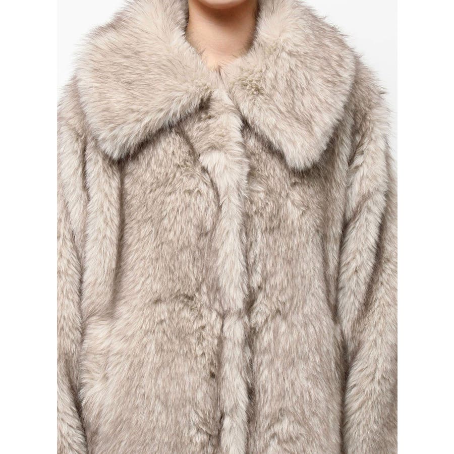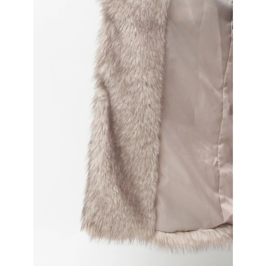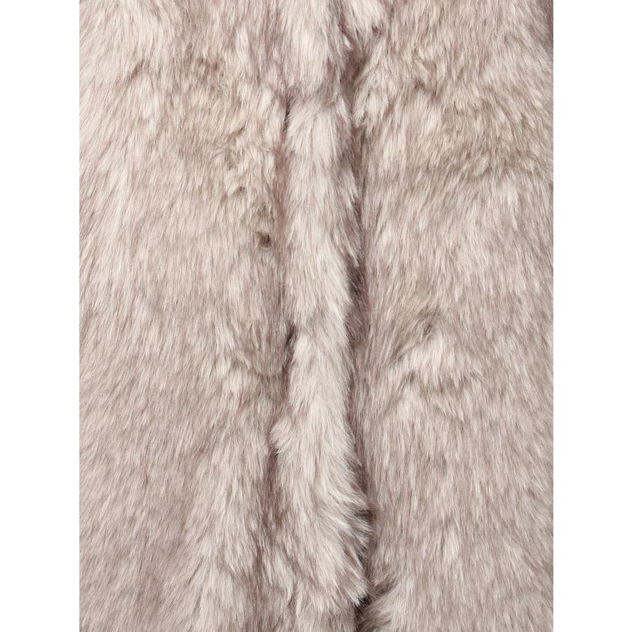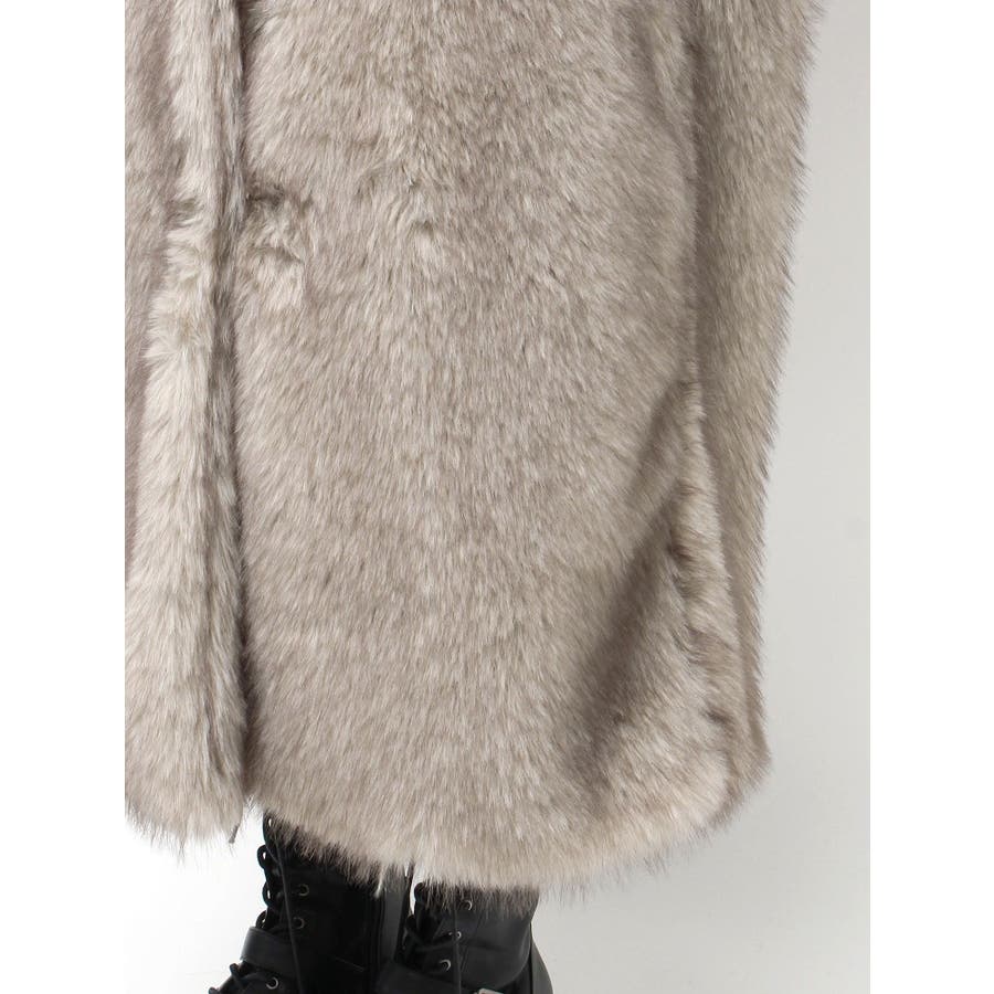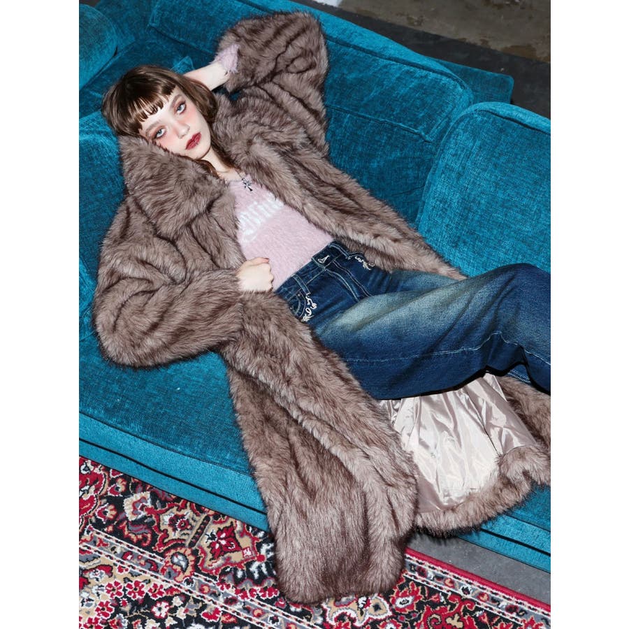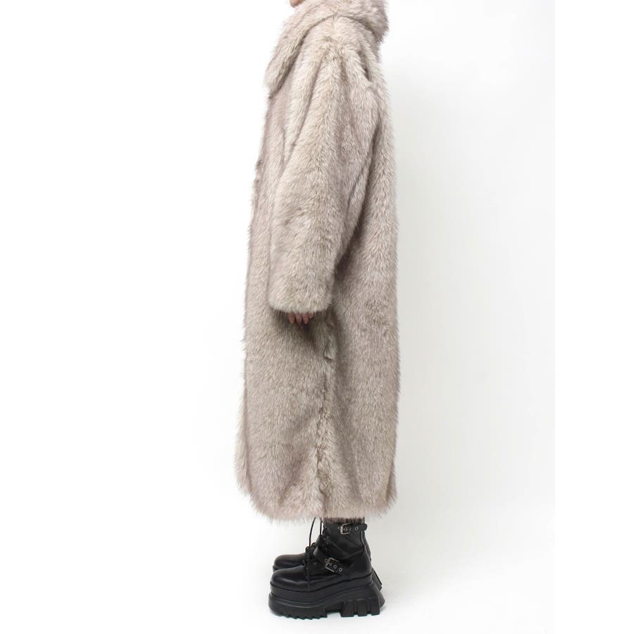 毛先にカラーが付いており、リアルなファー感が特徴のフェイクファーロングコートです。かなりボリューム感があり、ゴージャスな印象を与えてくれます。ボリューム感があるので、タイトなワンピースやカジュアルなデニム合わせがオススメです。衿も大きくしており、閉めて着用するとマフラー代わりにもなり暖かいアウターです。