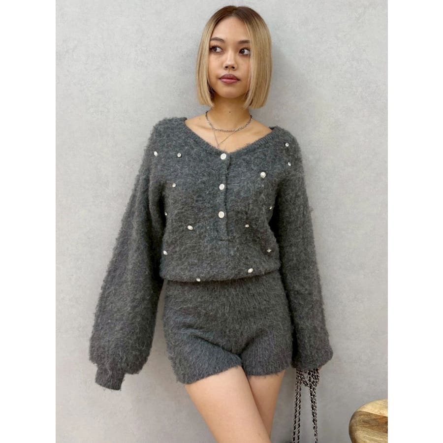 bijouシャギーニットロンパース