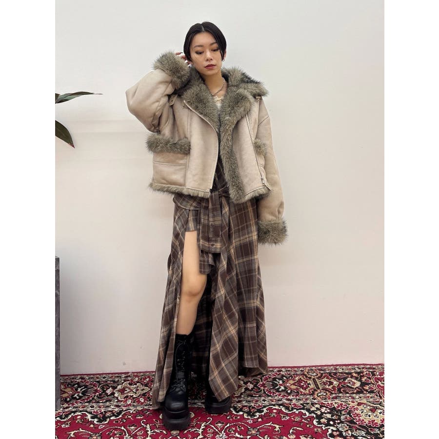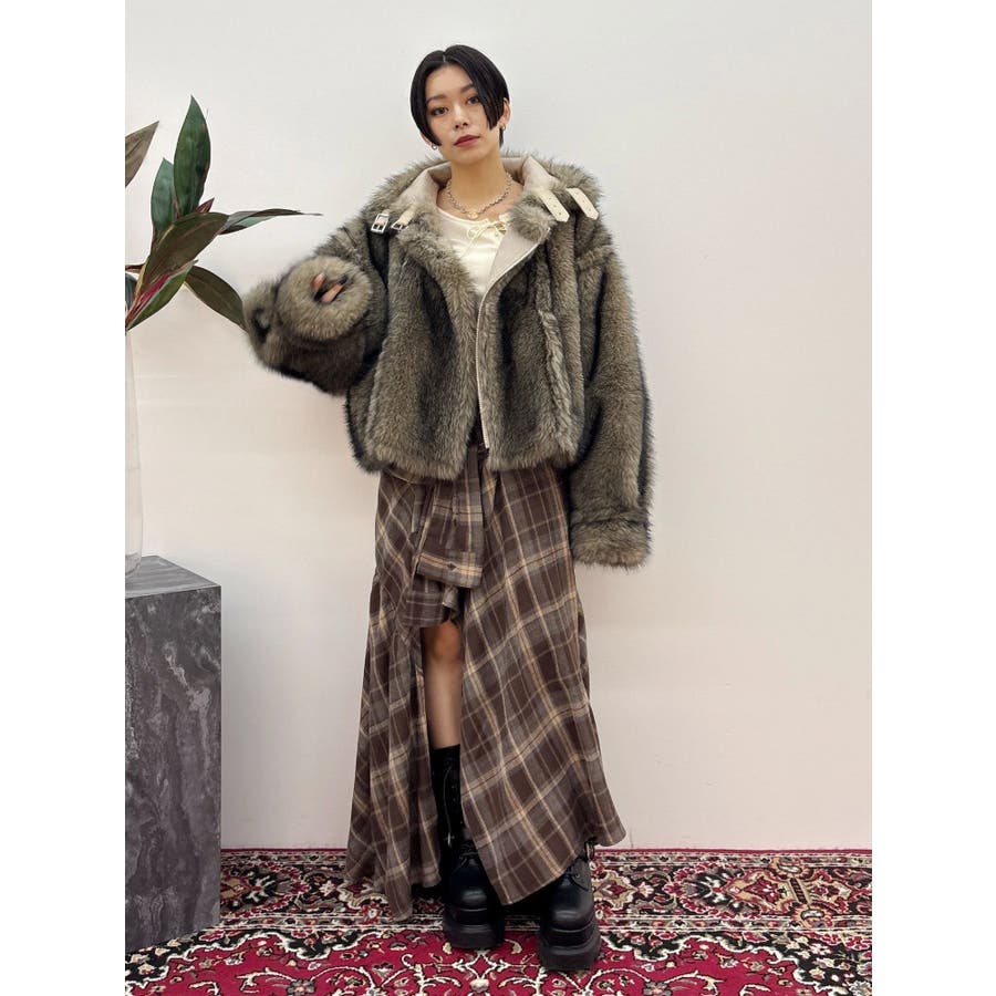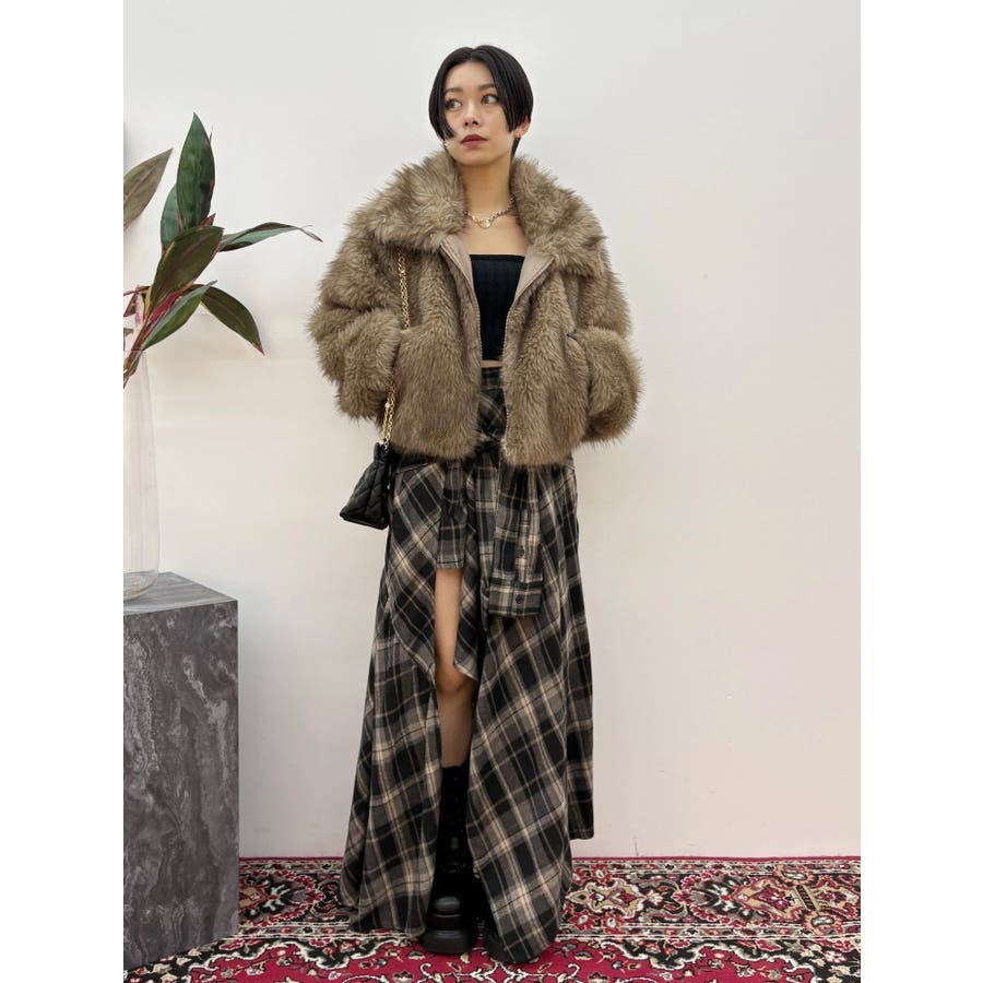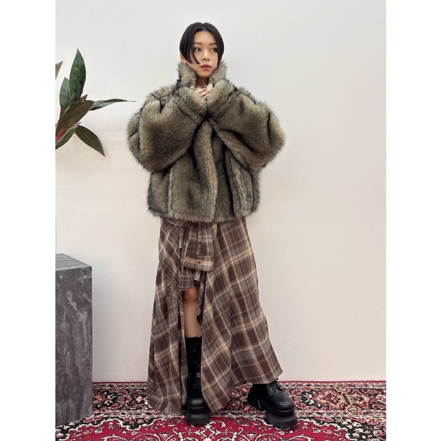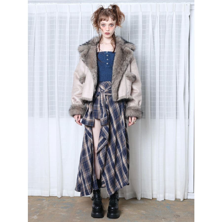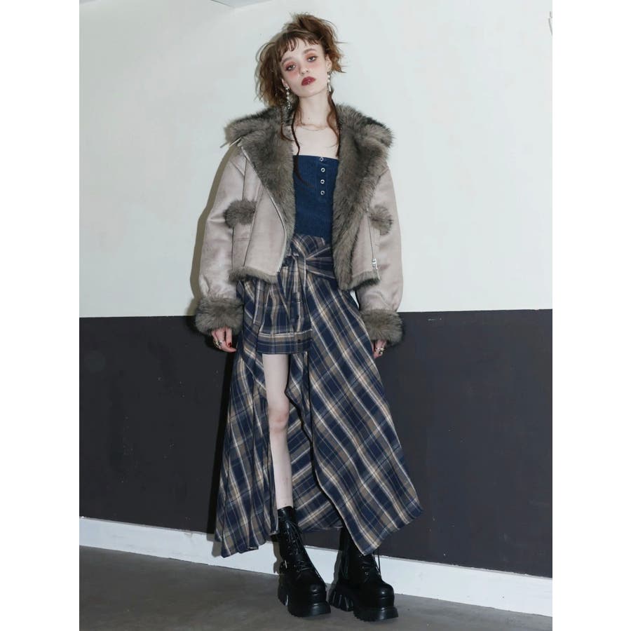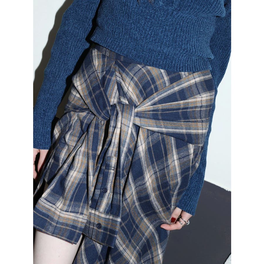 【ブラック】スリーブデザインチェックアシンメトリースカート