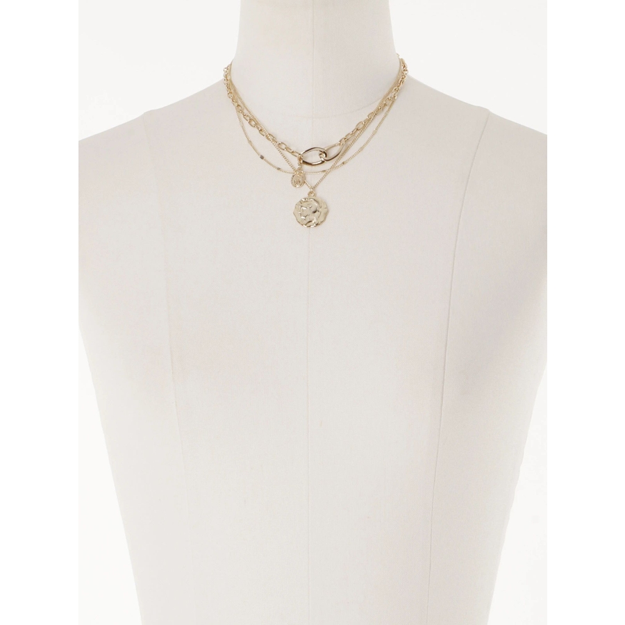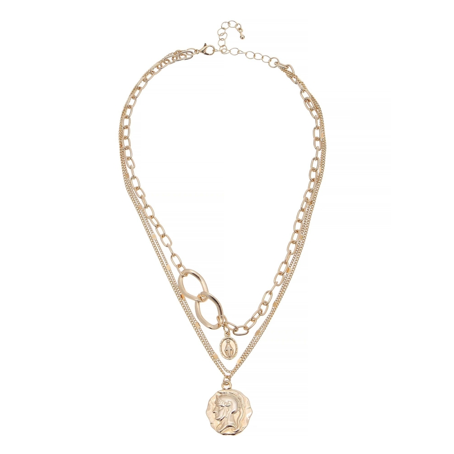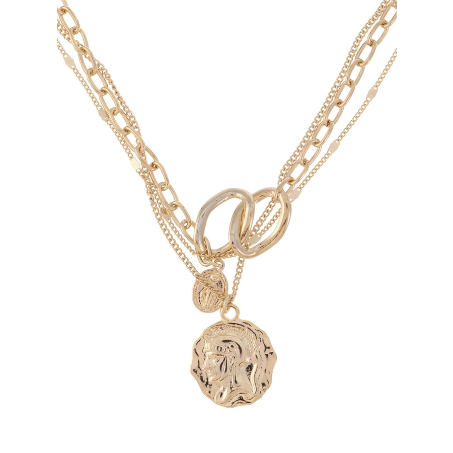 EVRIS(エヴリス)で人気の3連チェーンがポイントのネックレスです。コインチャームもポイントで程よい大きさが合わせやすくスタイリングに取り入れやすいアイテムです。