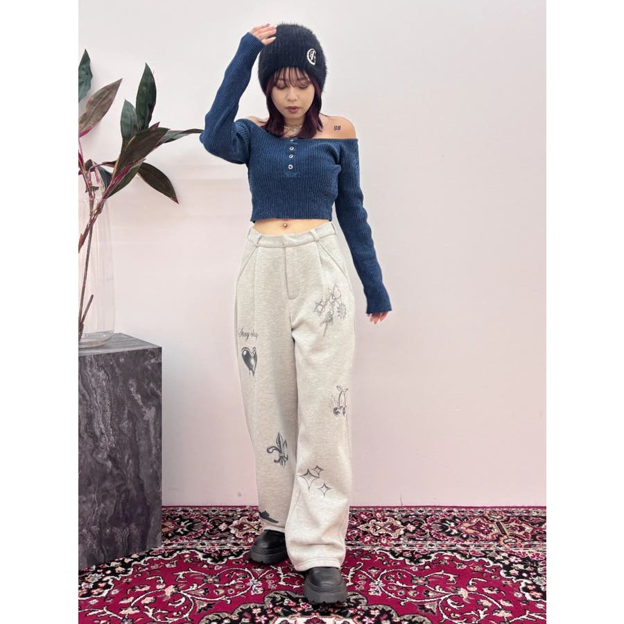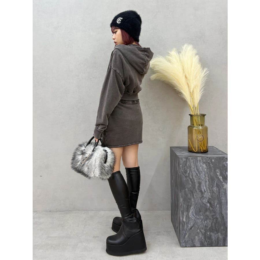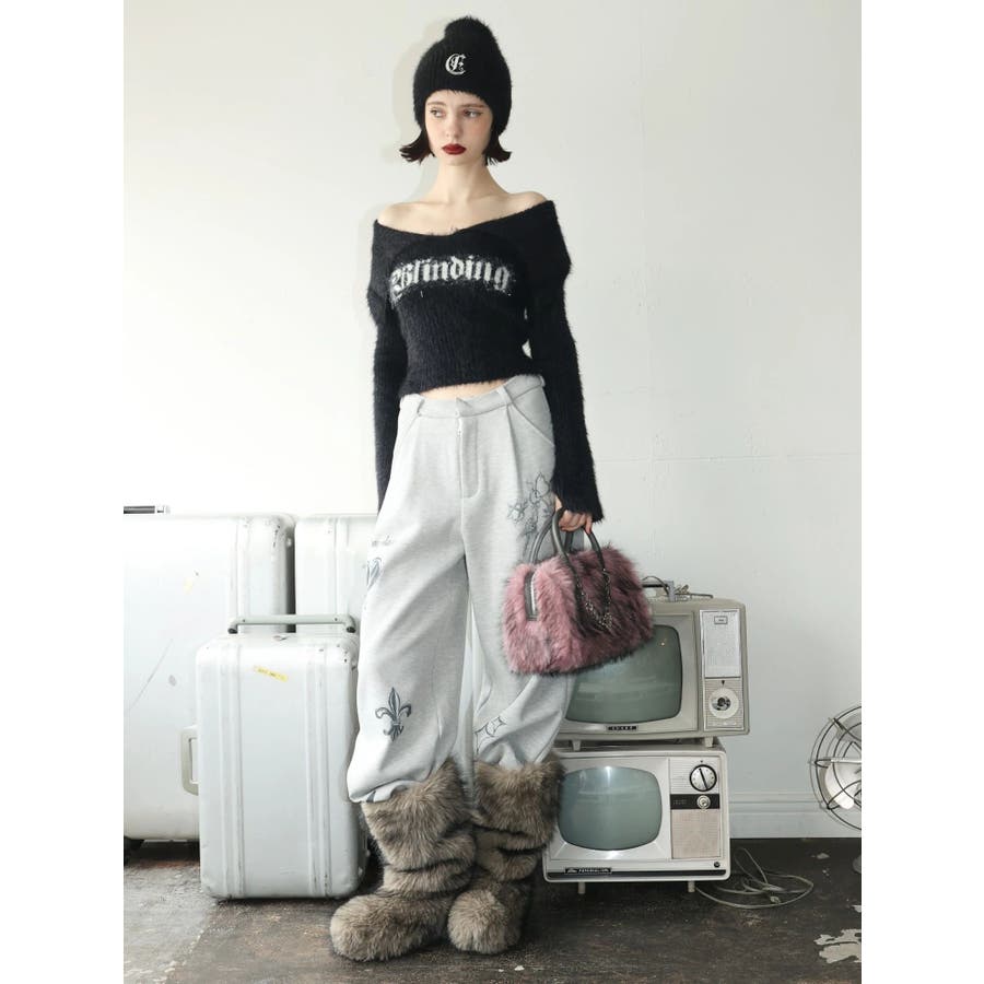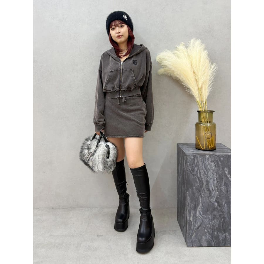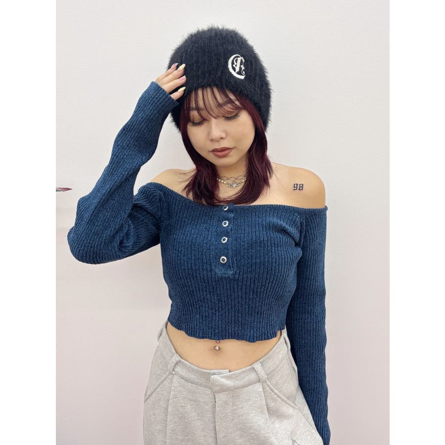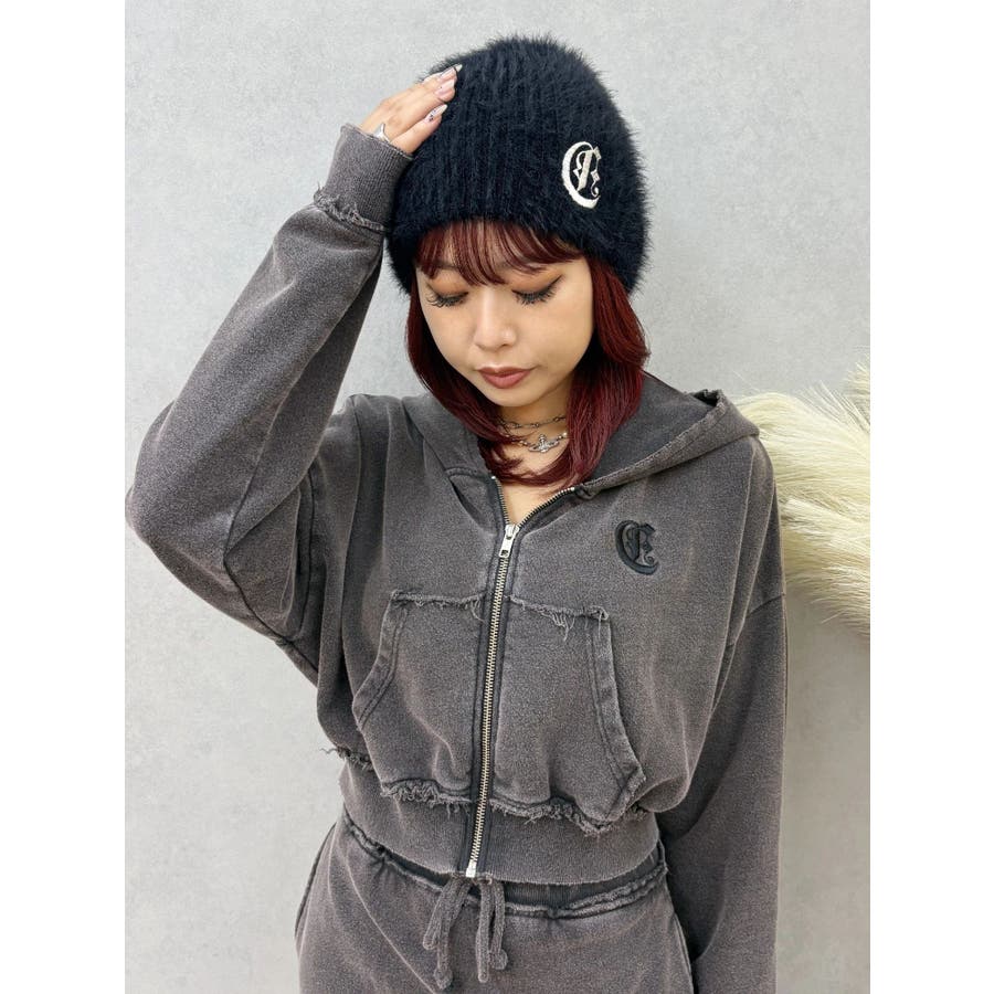 サイドにワンポイントのロゴを刺繍したニットビーニーです。シャギー素材を使用しており、ふわっとした編地で季節感があります。少しルーズなシルエットなのでゆるっと被るのがおすすめです。グラフィックはサイドに入れているため、ロゴありのトップスなどを着用したときも合わせやすいデザインにしています。