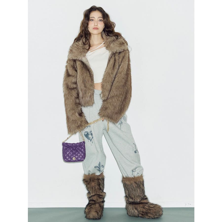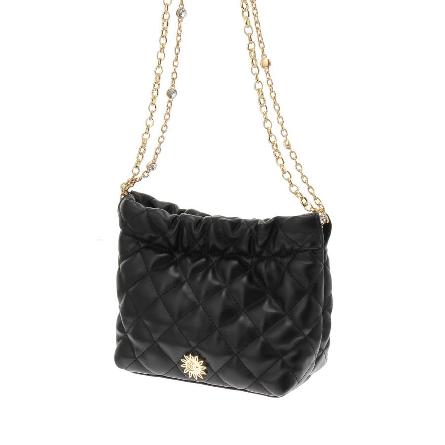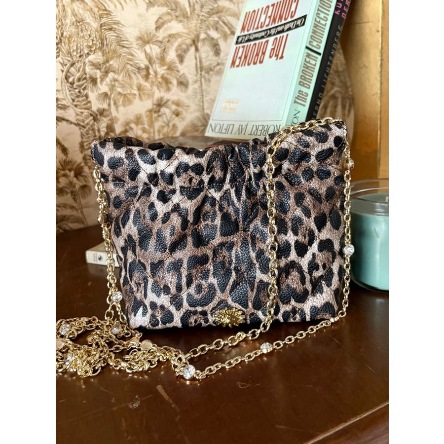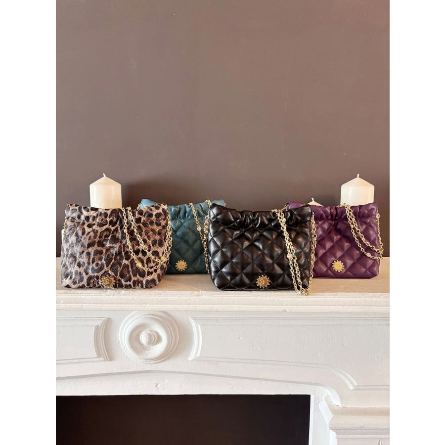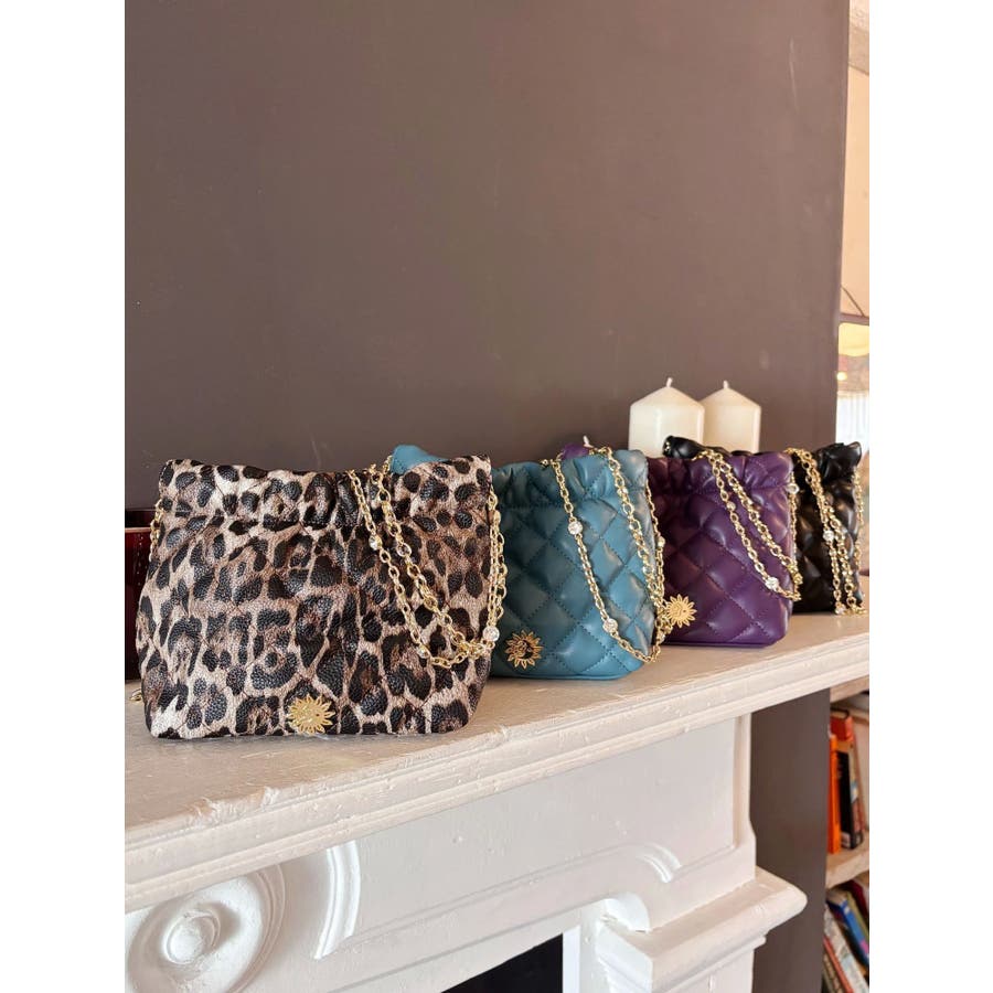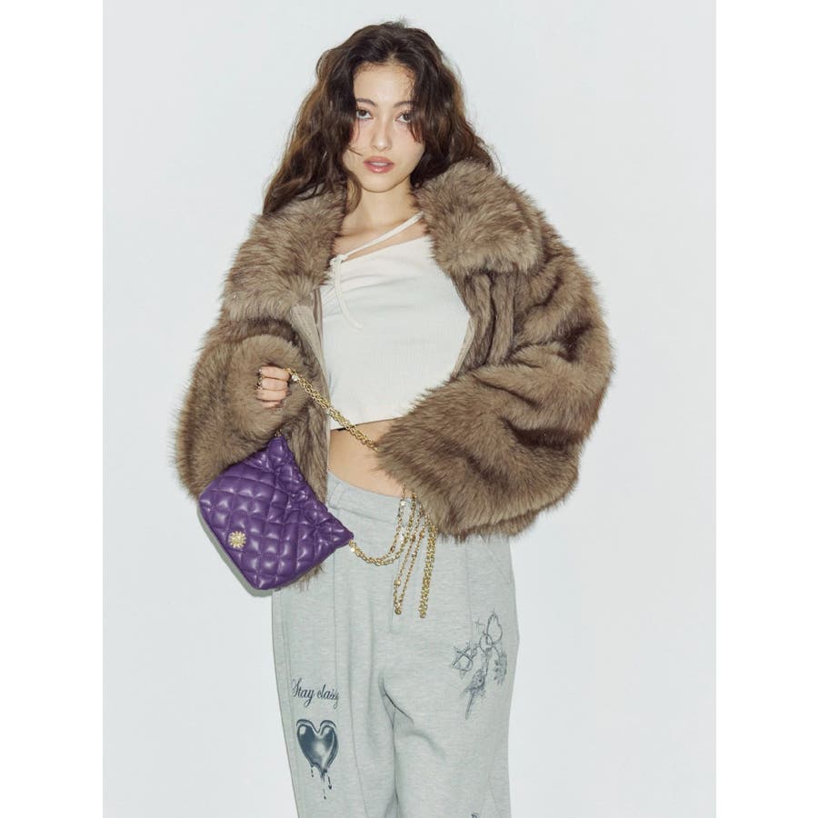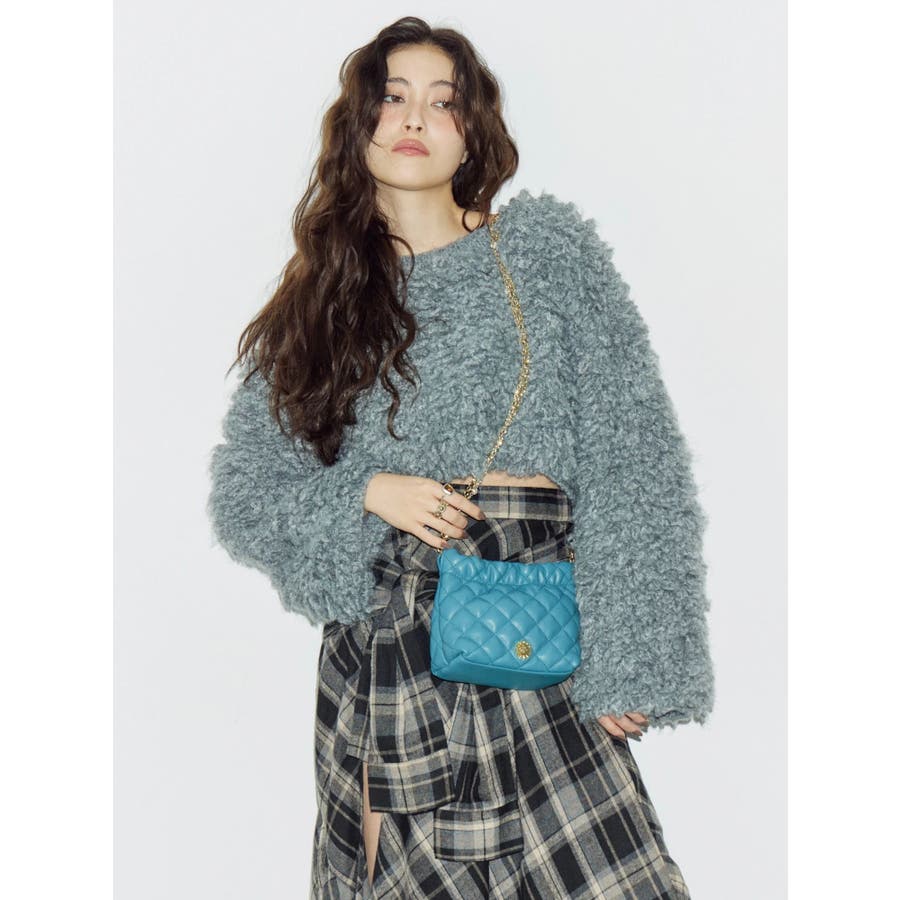 EVRIS(エヴリス)定番のキルティングBAGの今季バージョンです。今季はショルダー部分をビジューチェーンにしています。チェーンも贅沢に2本使いでラグジュアリーな印象に。シンプルながらもキラッと光るデザインで、スタイリングのアクセントになるBAGです。ミックスはEVRISらしいレオパード柄の生地を使用しています。