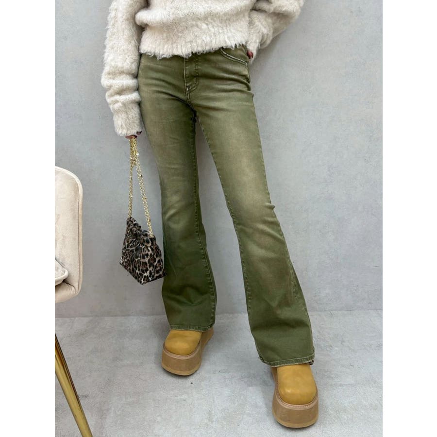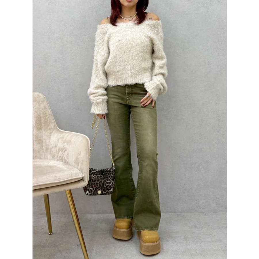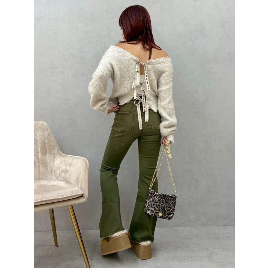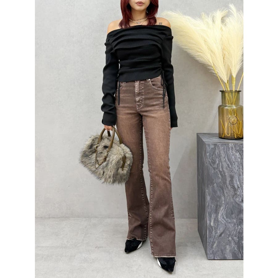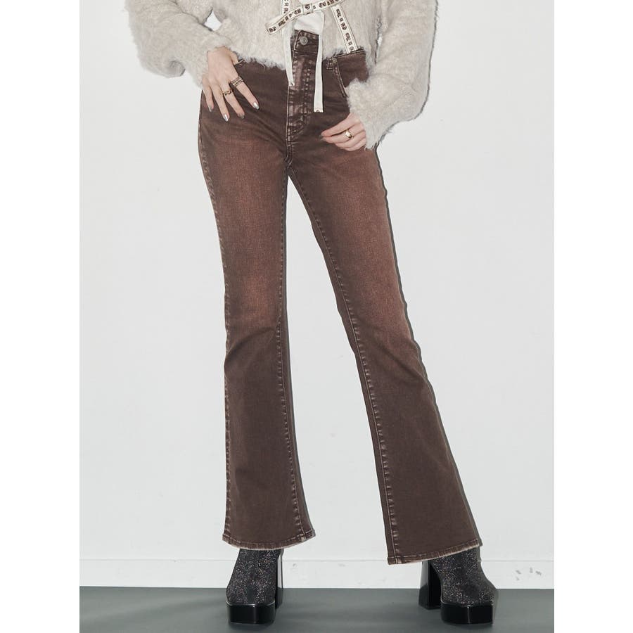 カラーヴィンテージライクストレッチフレアデニムパンツ