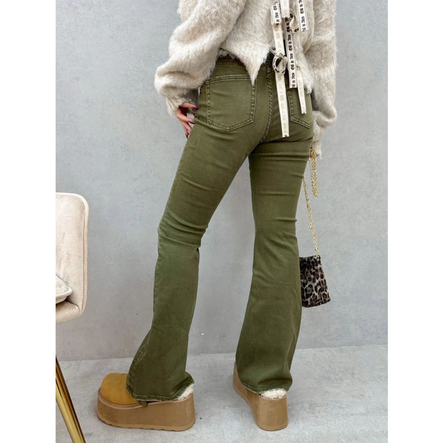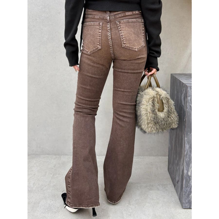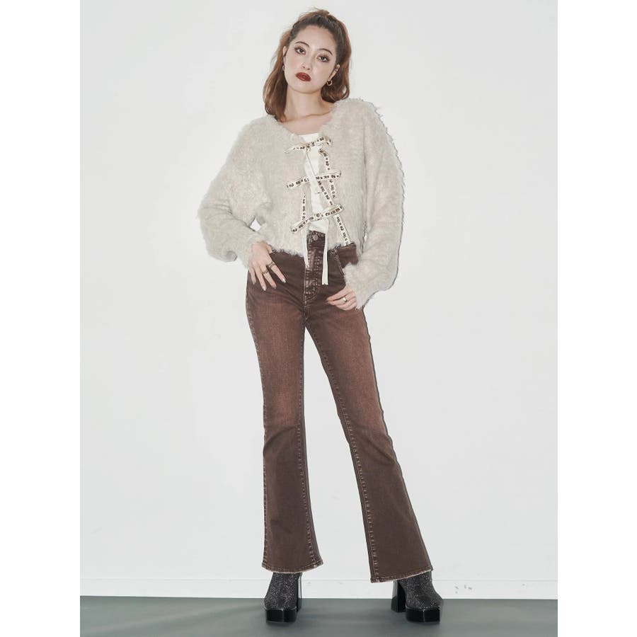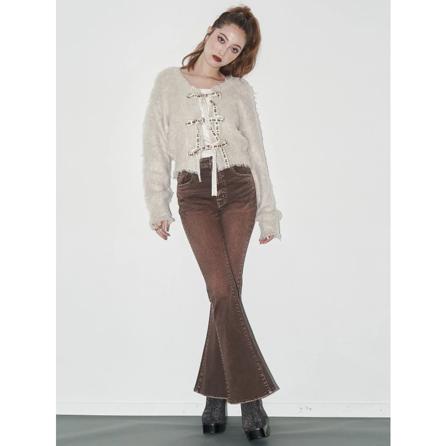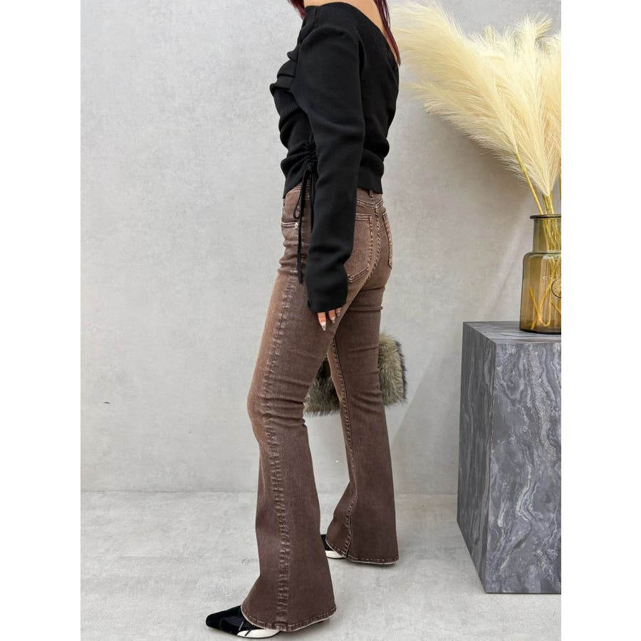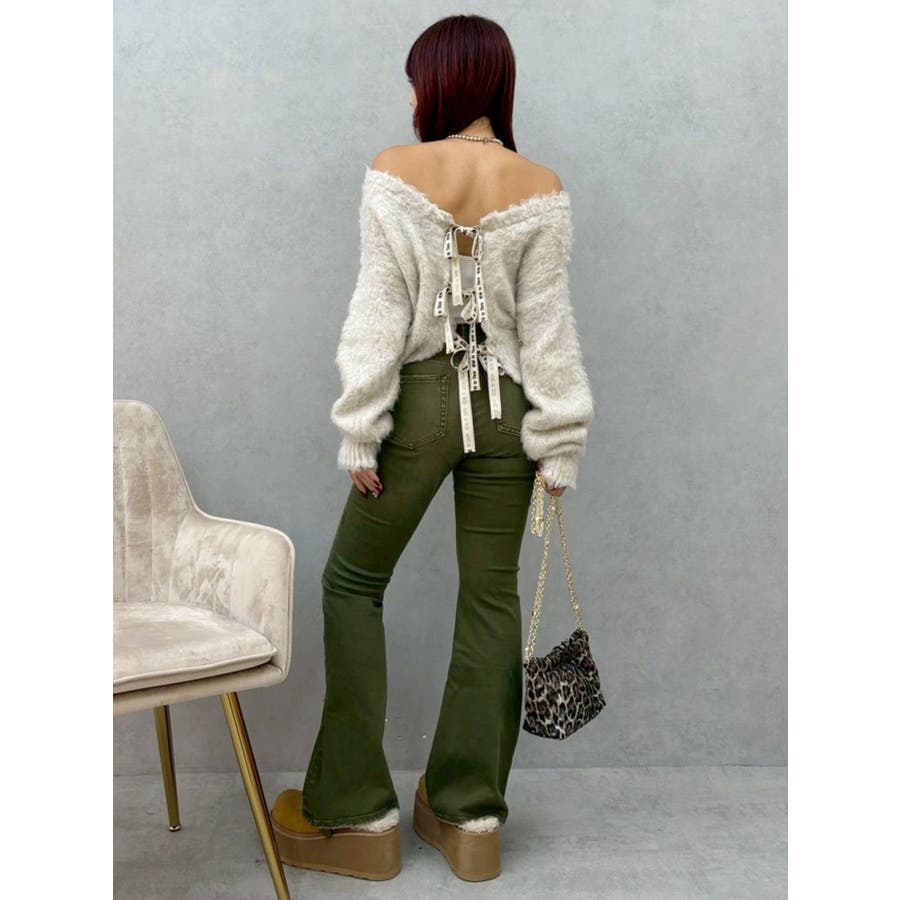 カラーヴィンテージライクストレッチフレアデニムパンツ