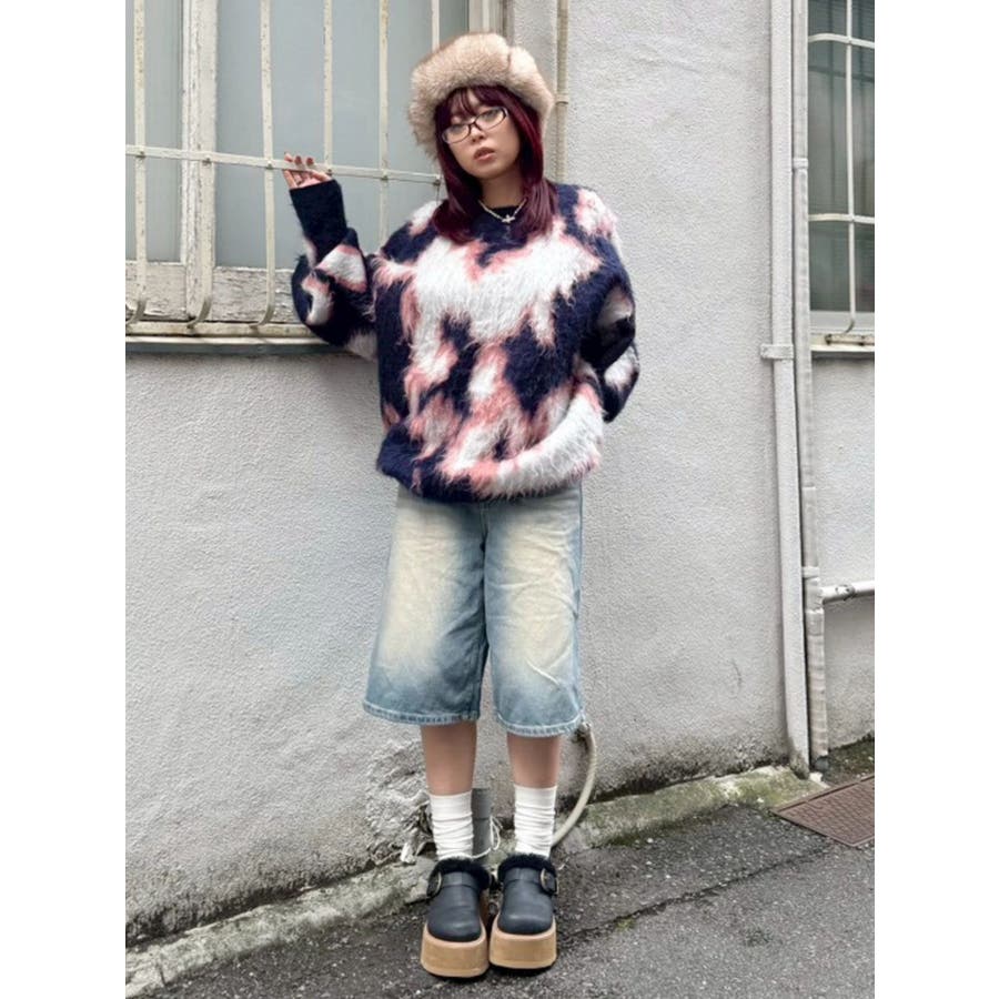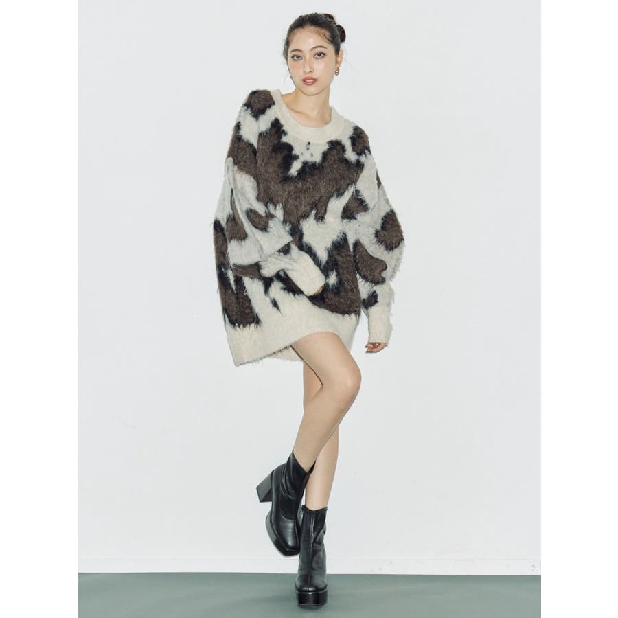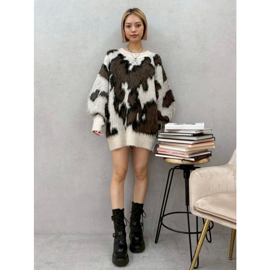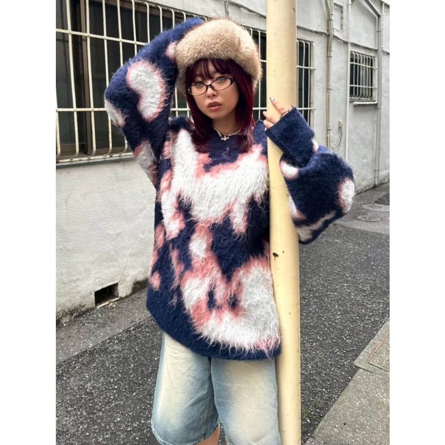 アニマルシャギーオーバーサイズニットトップス