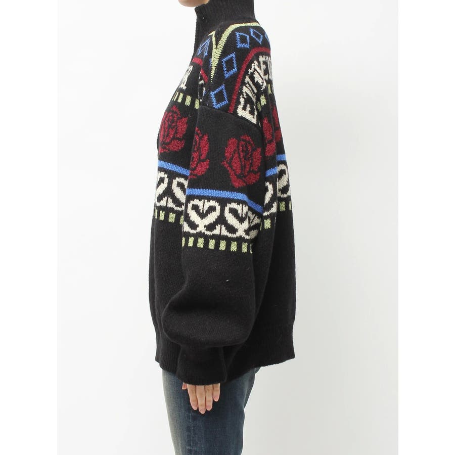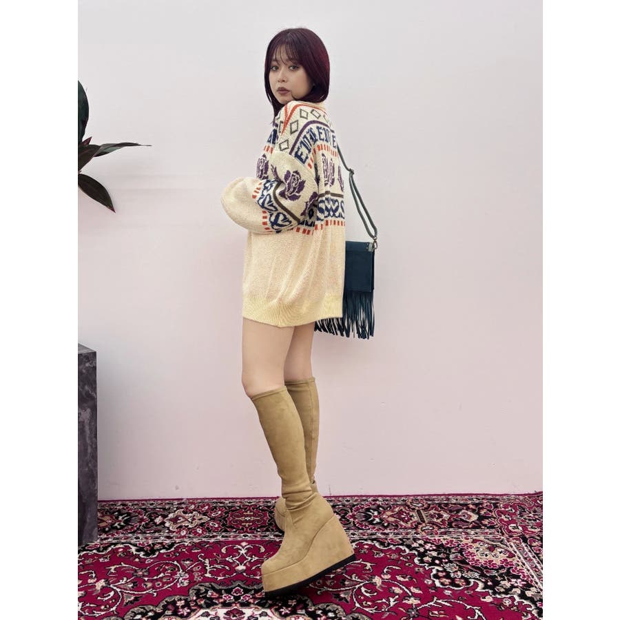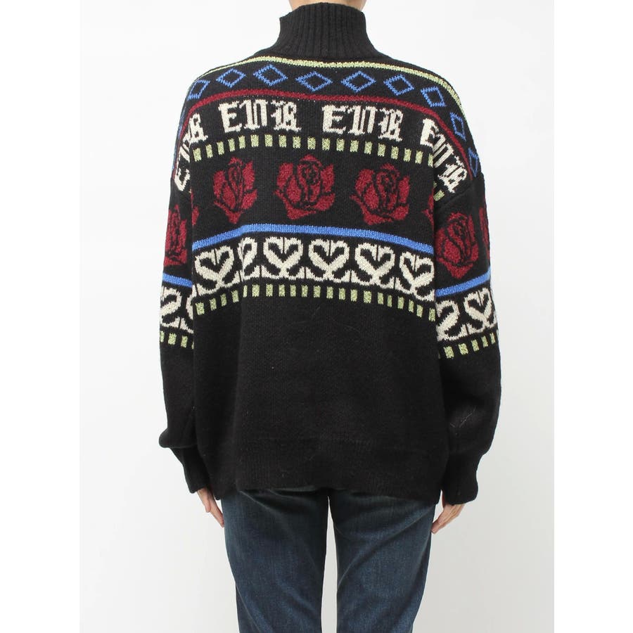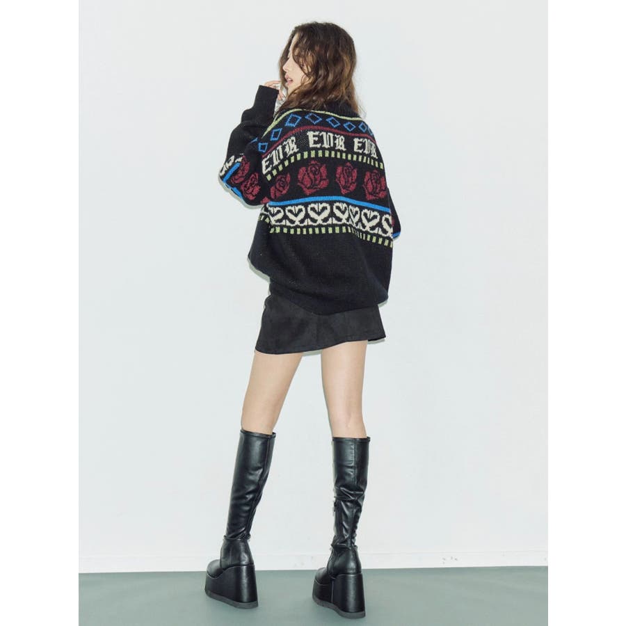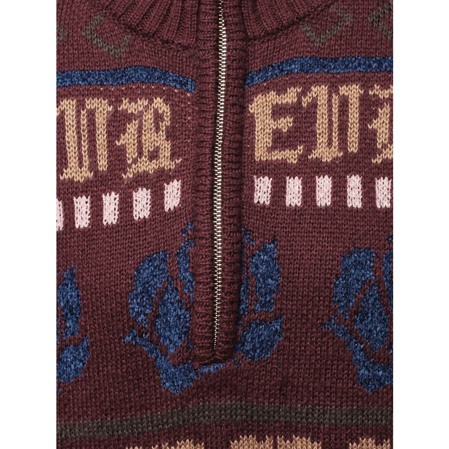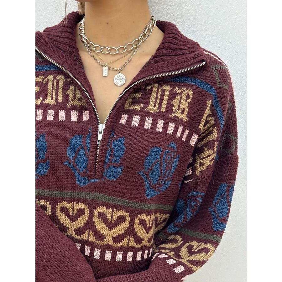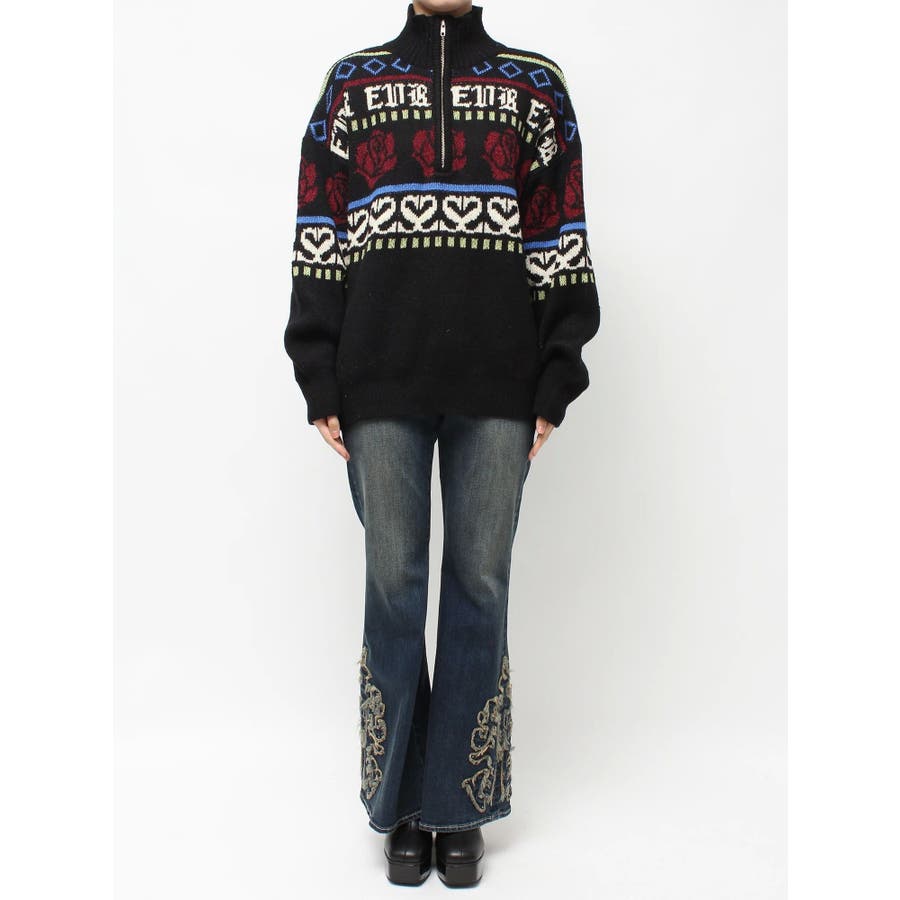 モールヤーンとモヘアタッチ素材を組み合わせた、存在感抜群のジャガードニット。EVRIS(エヴリス)らしいオリジナルのグラフィックパターンが印象的で、コーディネートの主軸になる1着です。ゆったりとしたシルエットにハーフジップを加え、抜け感と着まわしやすさを両立。長めの着丈で、ボトムを選ばずワンピース風の着こなしも可能です。