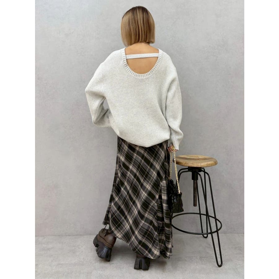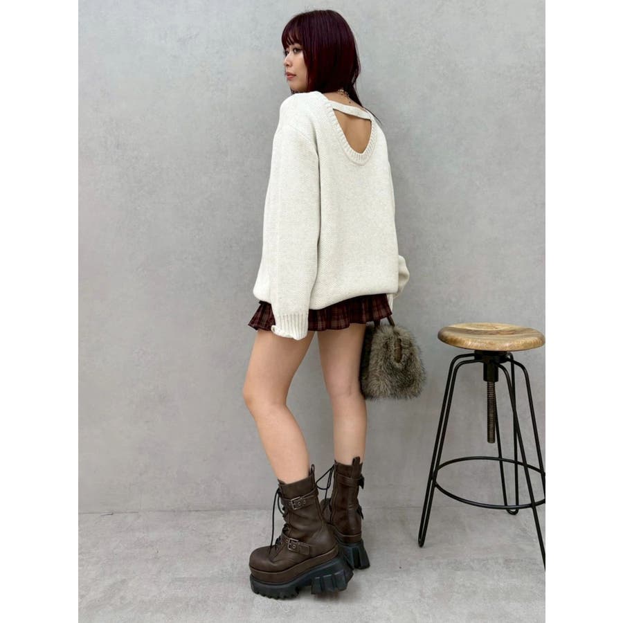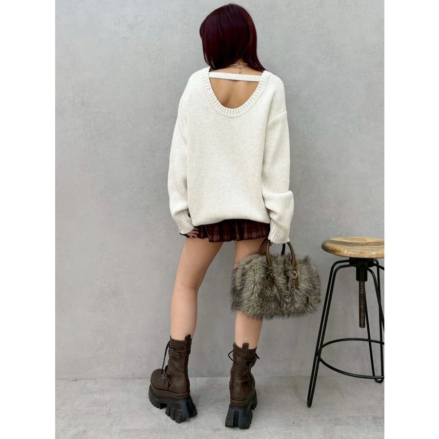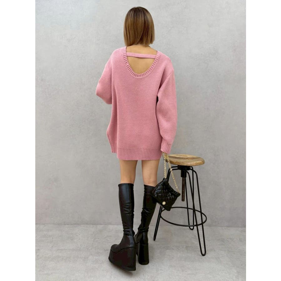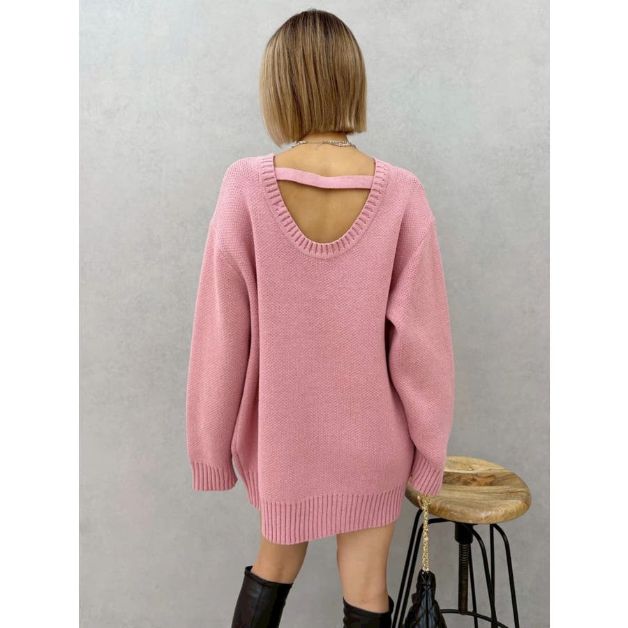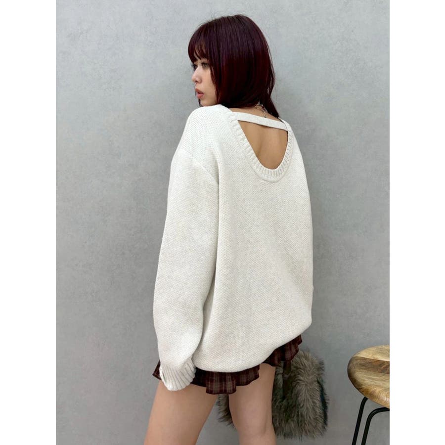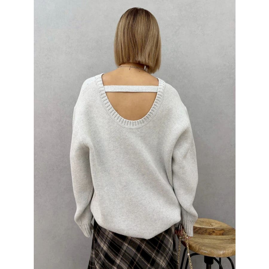 ワンポイントバックオープンニットトップス