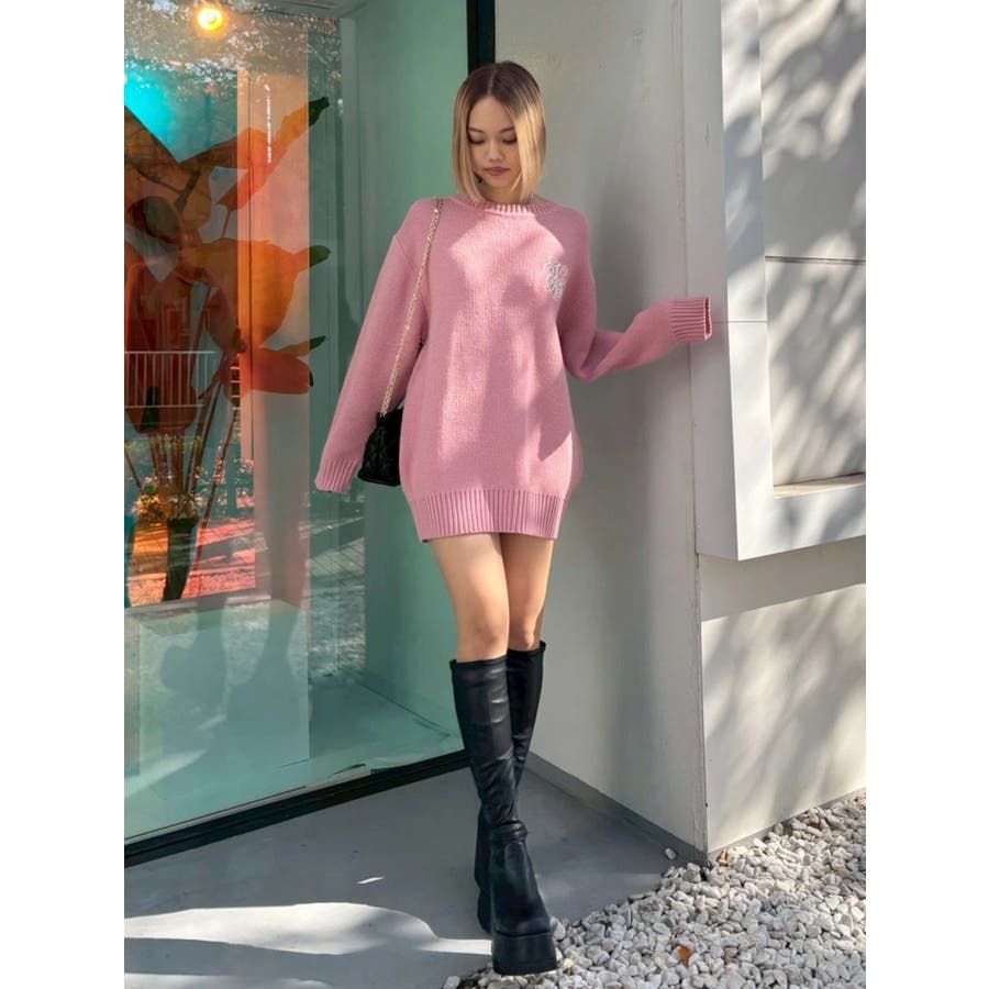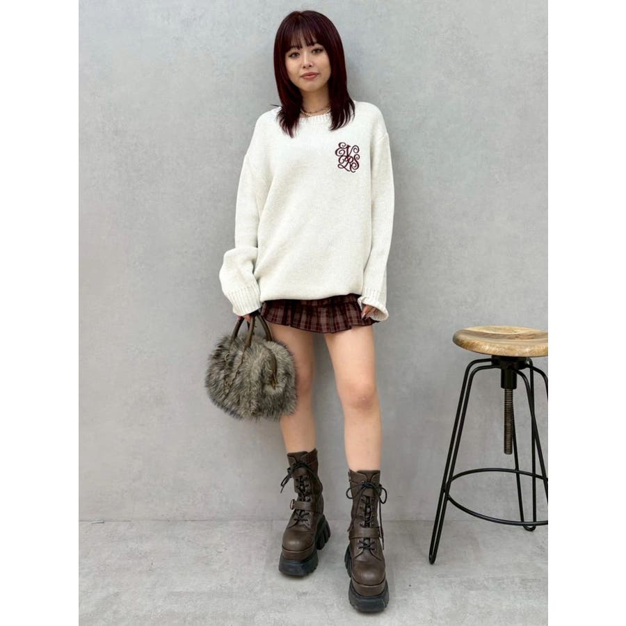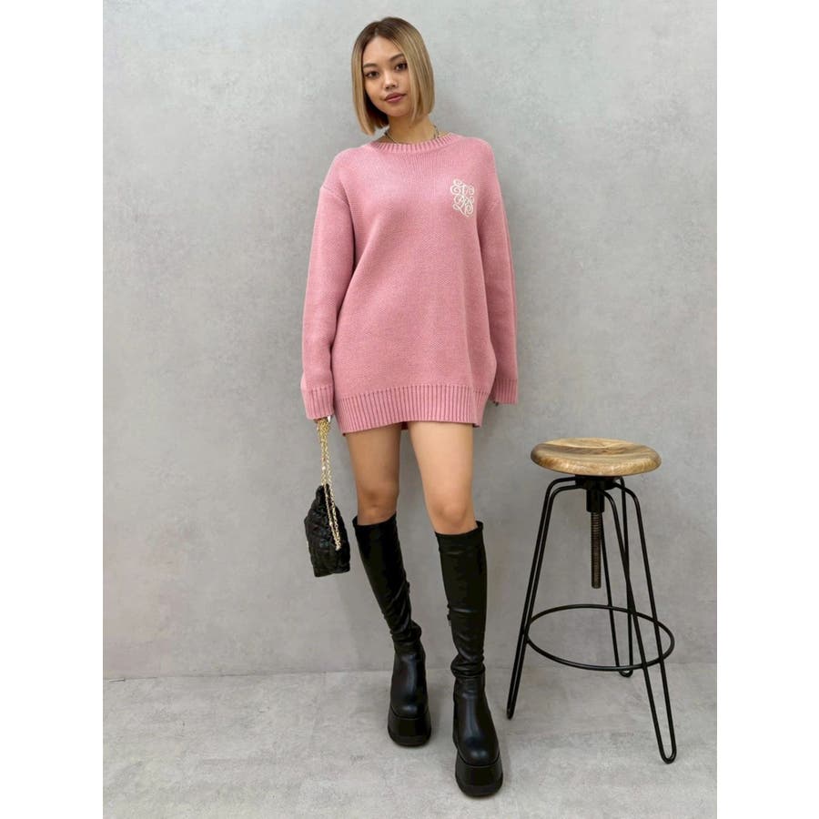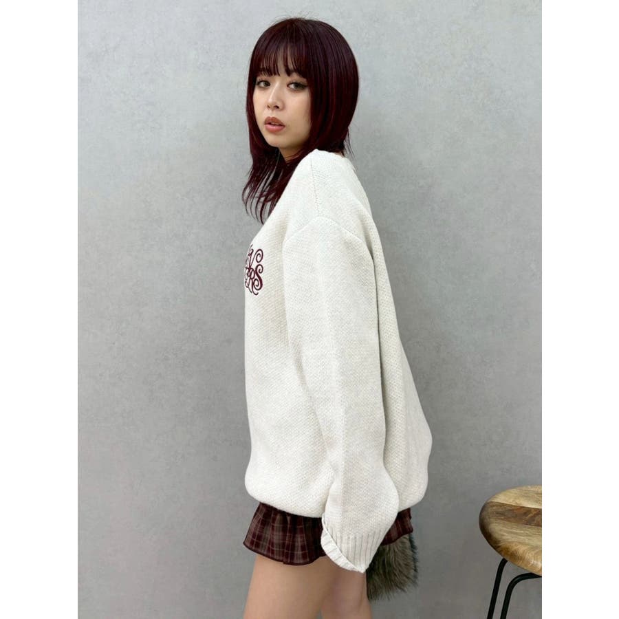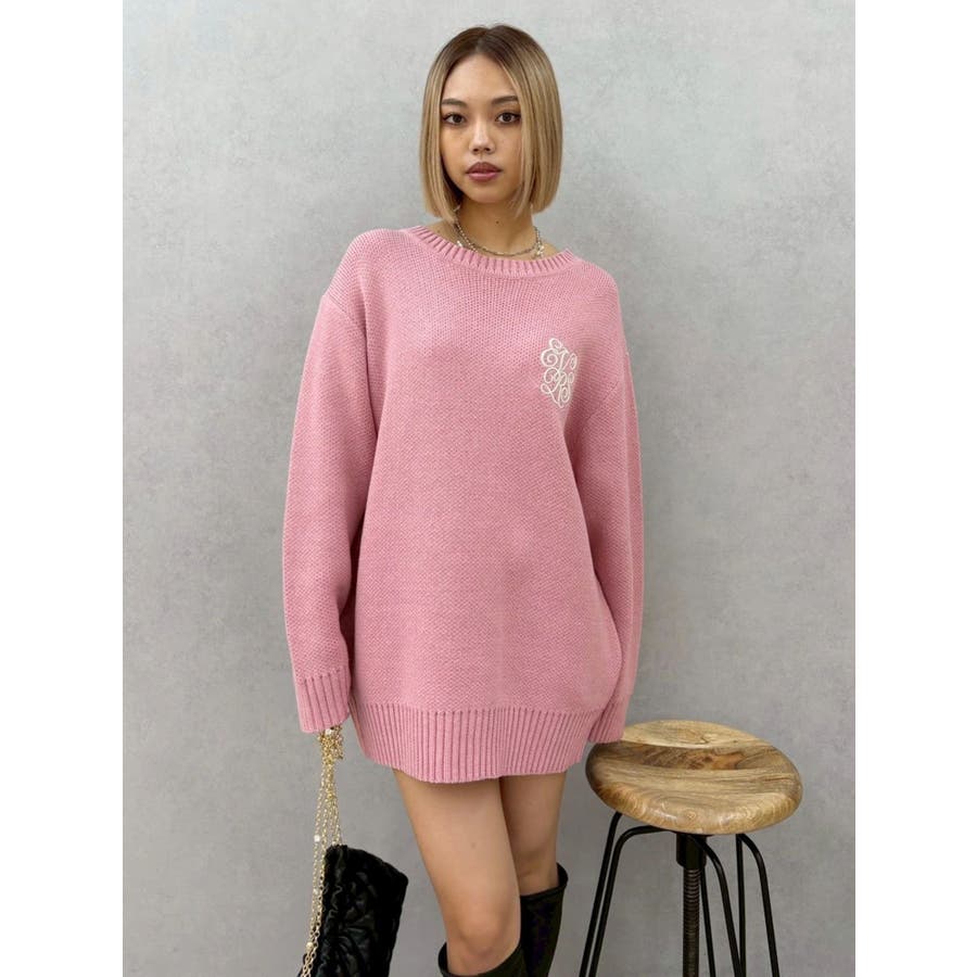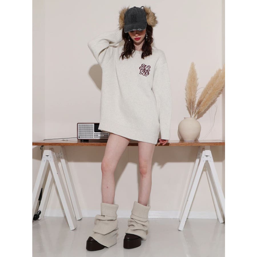 ■デザイン肉厚なジャガード編みで暖かく着用できるルーズニット。 胸元にEVRISオリジナルロゴ刺繍がボディにあわせたカラー配色で入っているのがポイント。バックスタイルも絶妙な肌見せで下着が見えずに抜け感がでるデザインになっています。■スタイリングルーズシルエットなのでワンピース風に1枚で着用することが可能。今年らしいファー小物とあわせると旬なコーディネートに。軽くinしてパンツやスカートとあわせてもゆるっとラフなスタイルでバランス良く着こなすことができます。柄物との相性も抜群です◎--------------透け感:なし裏地:なし生地の厚み:普通伸縮性:あり--------------