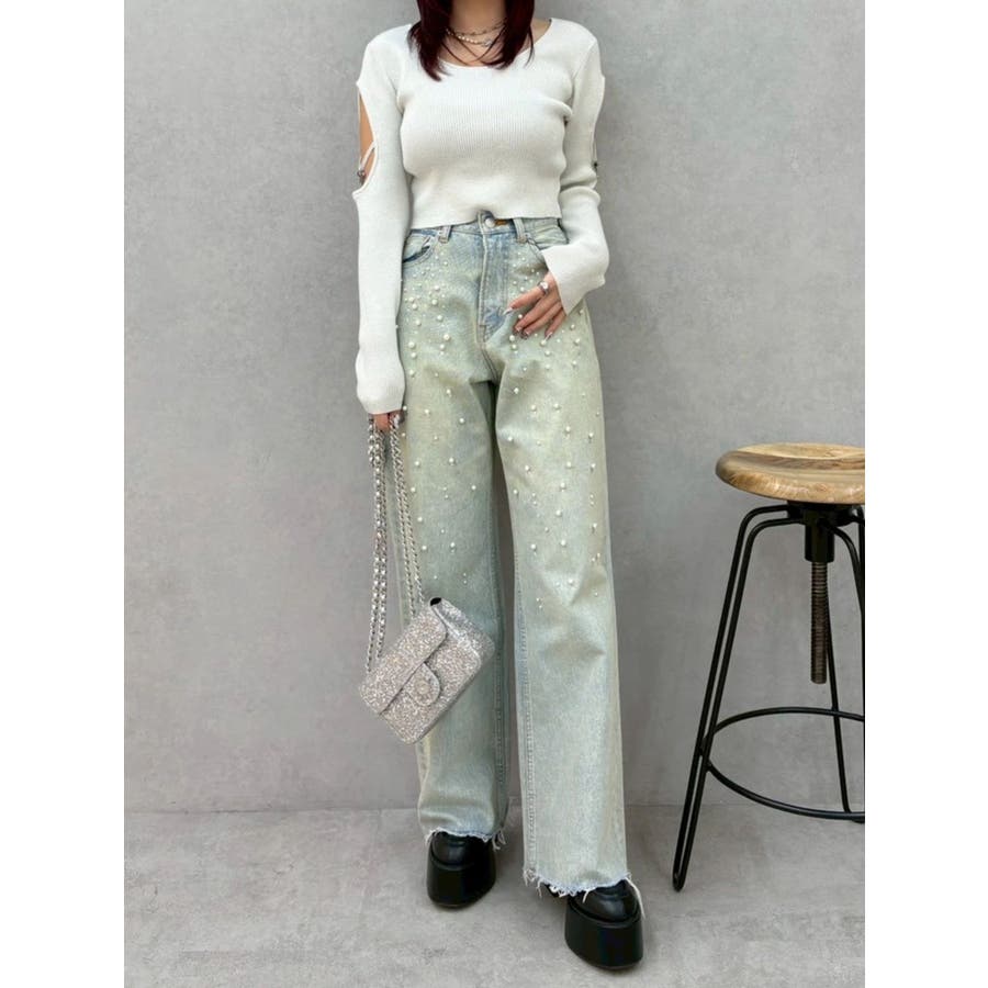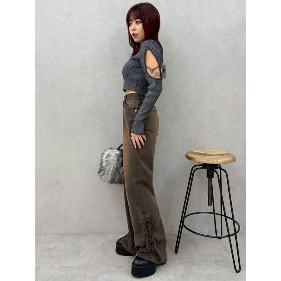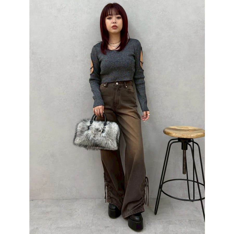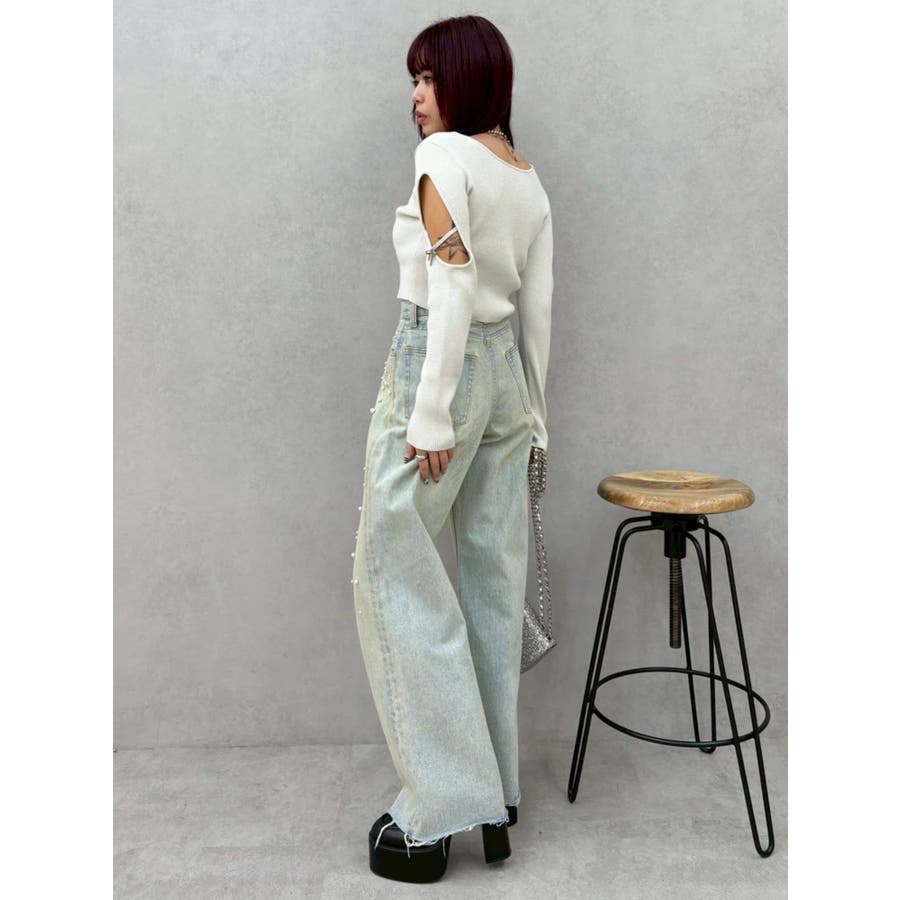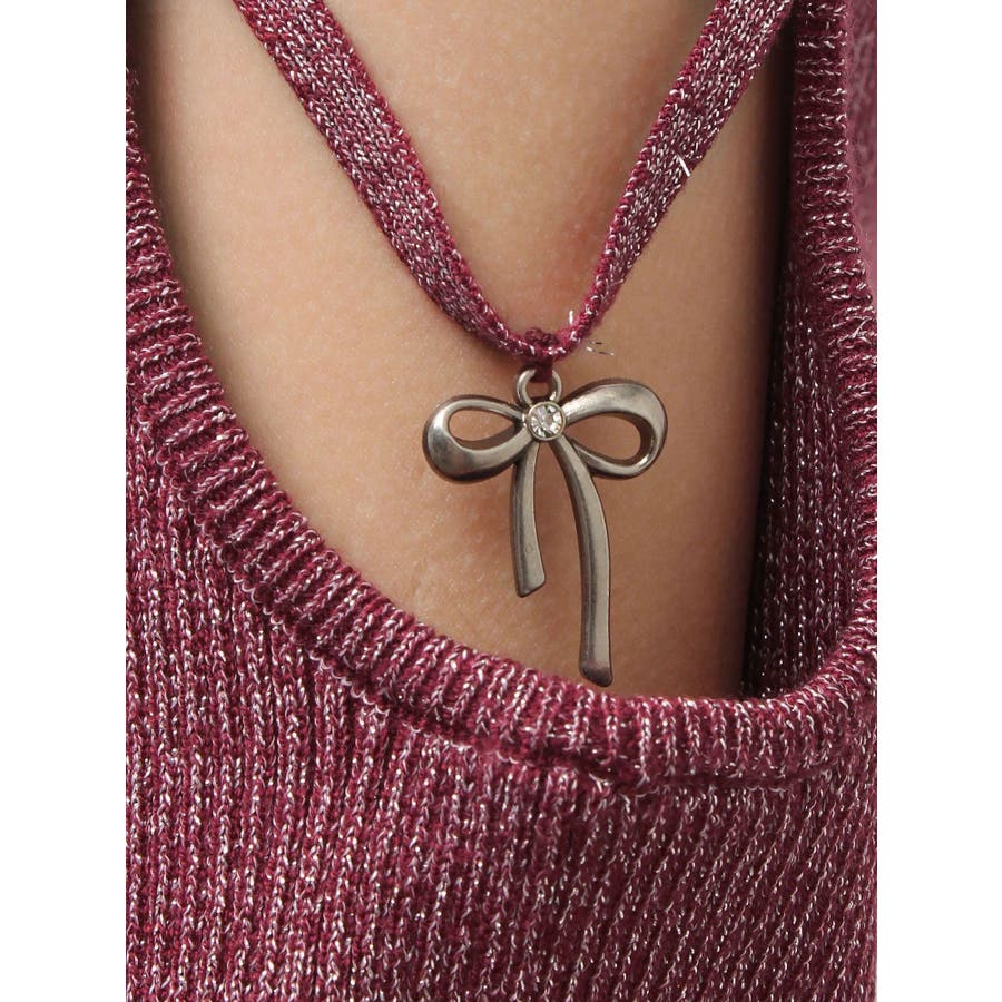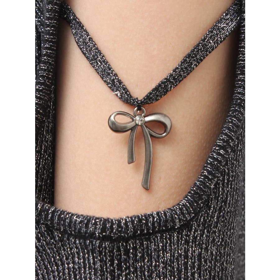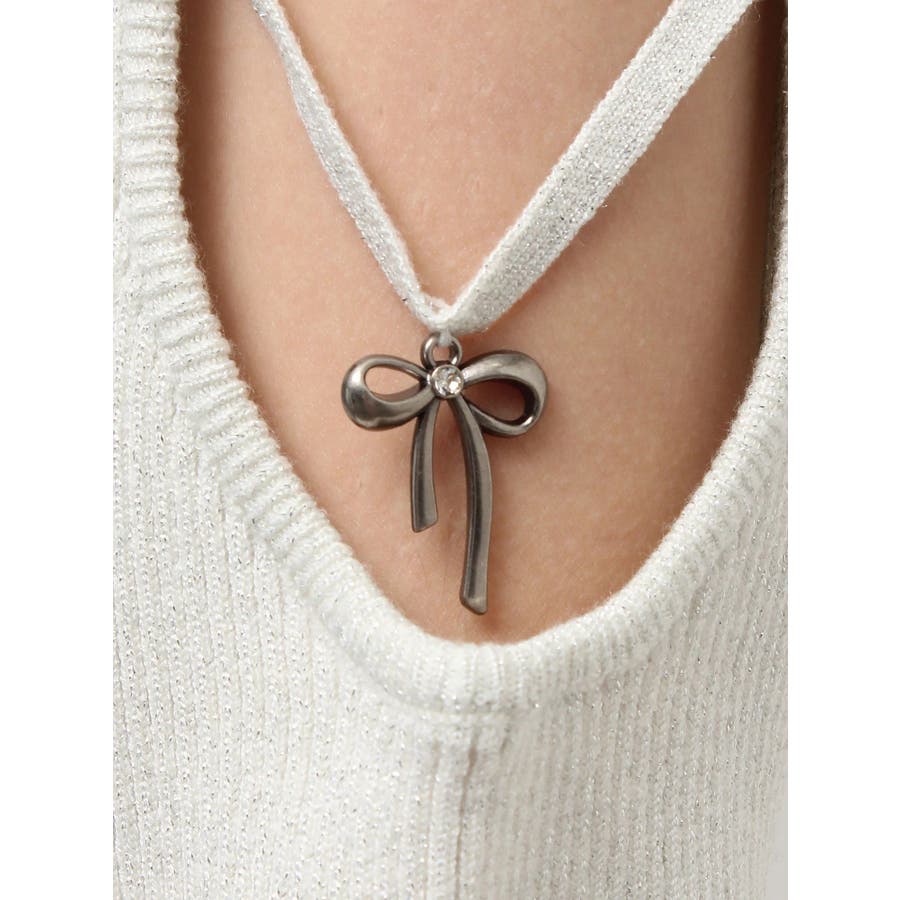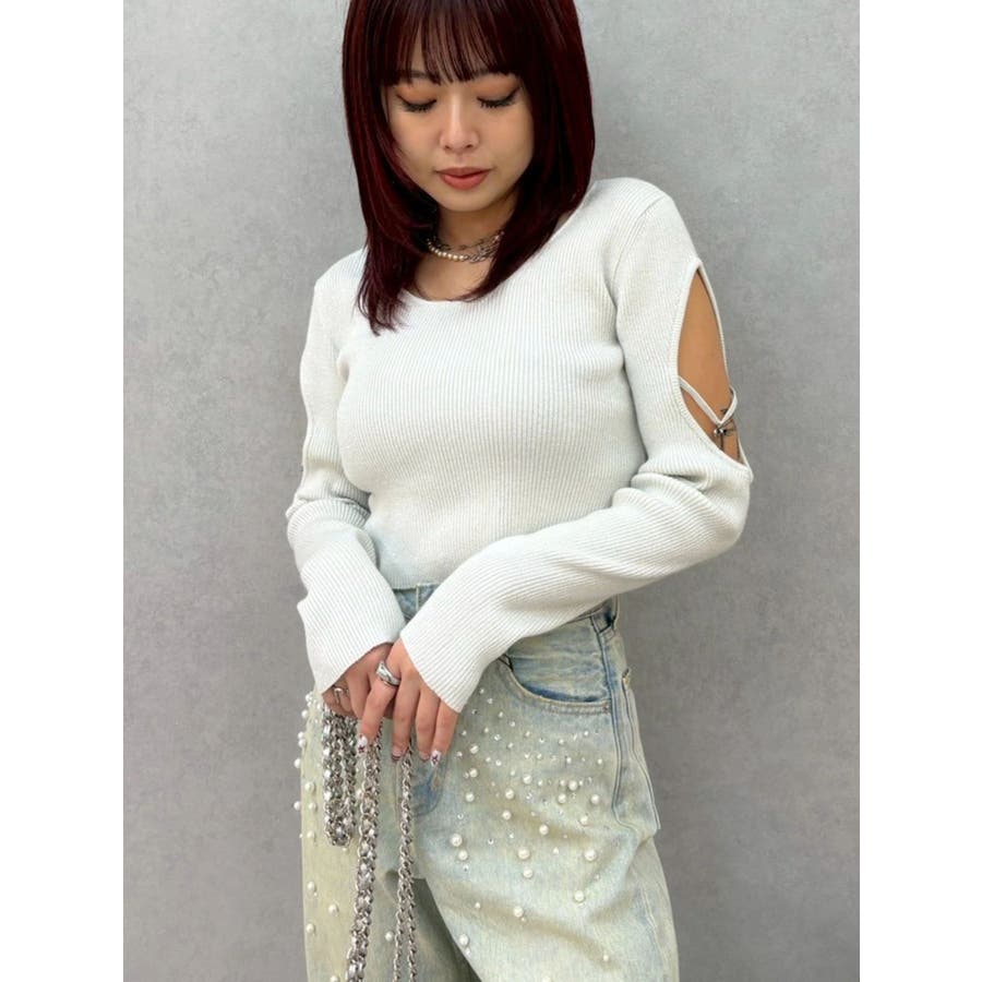 さり気ない袖の肌見せ、リボンのチャームが