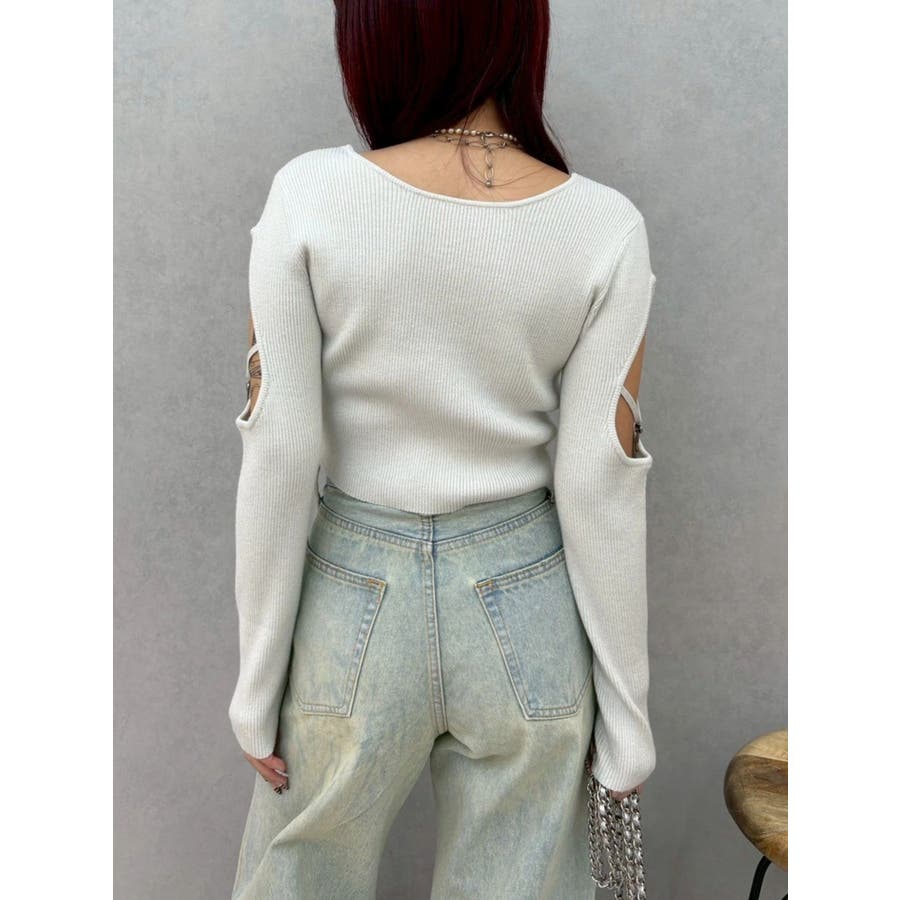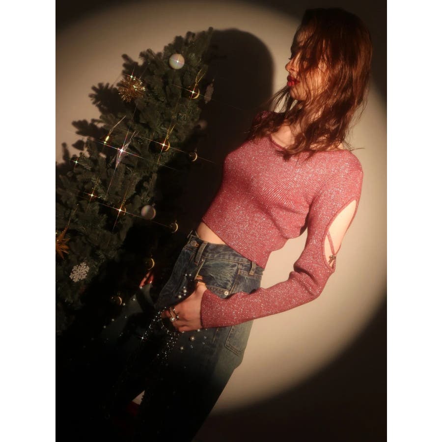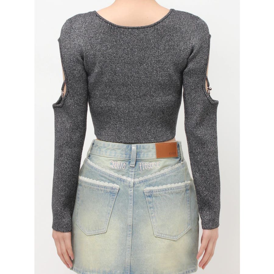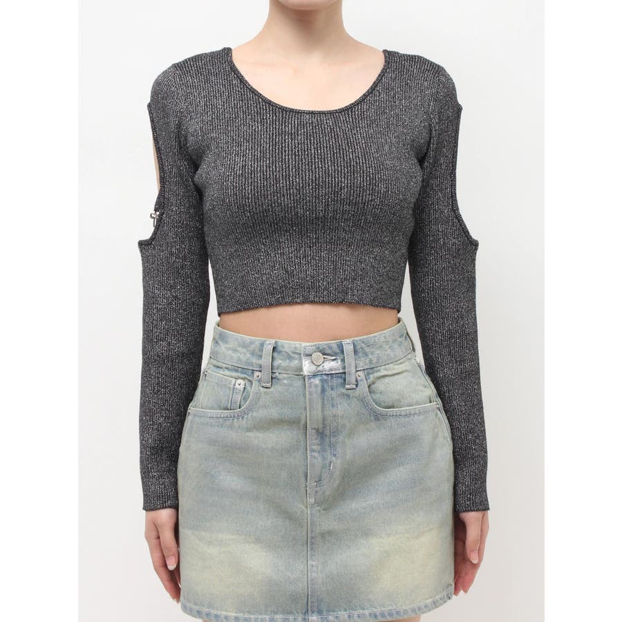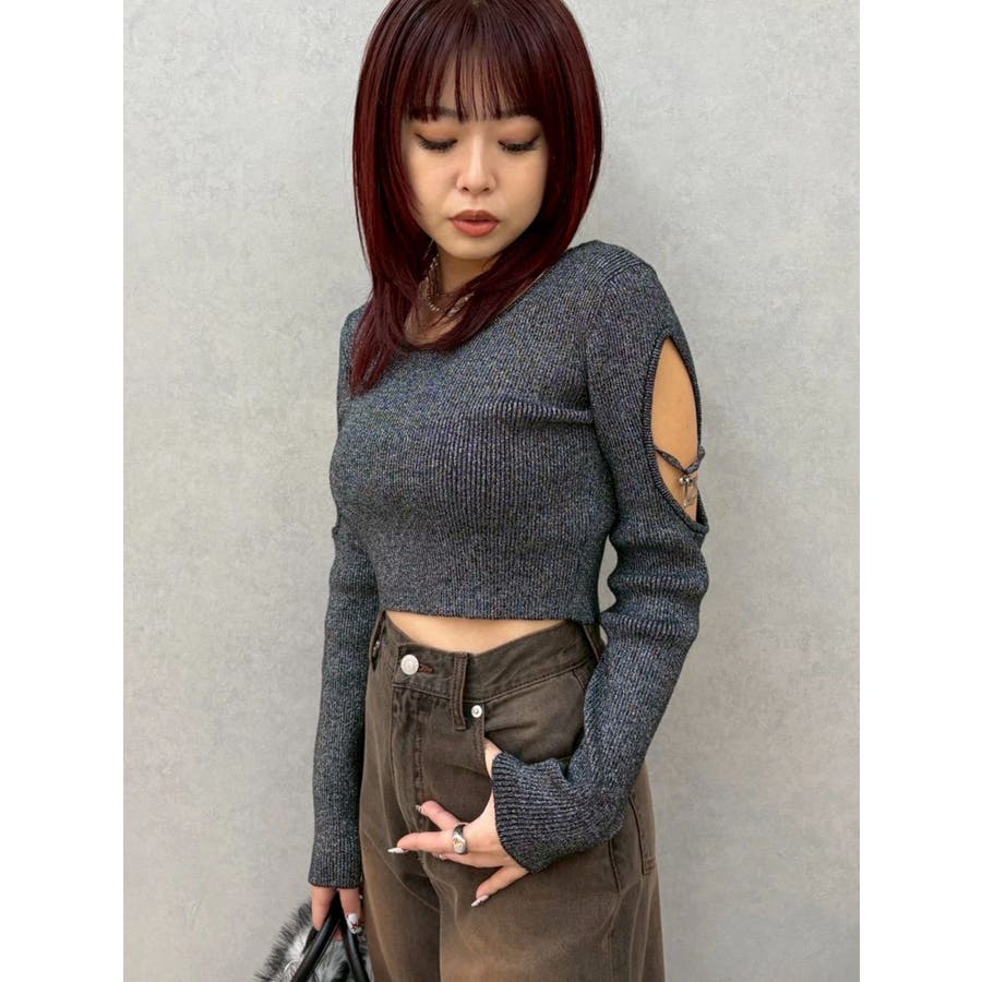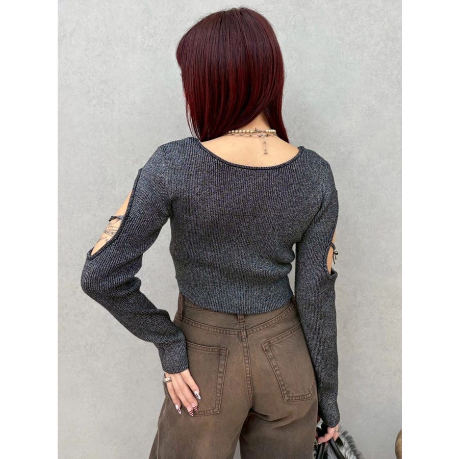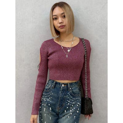 オープンアームラメチャームニットトップス