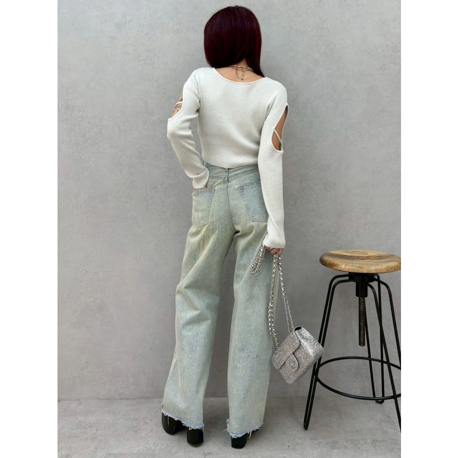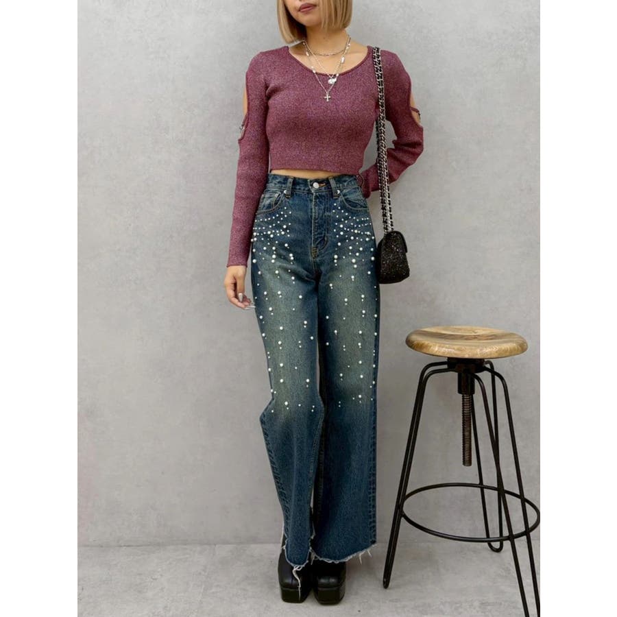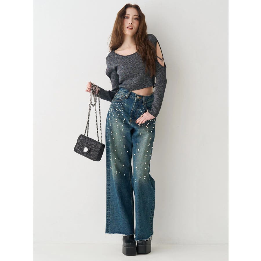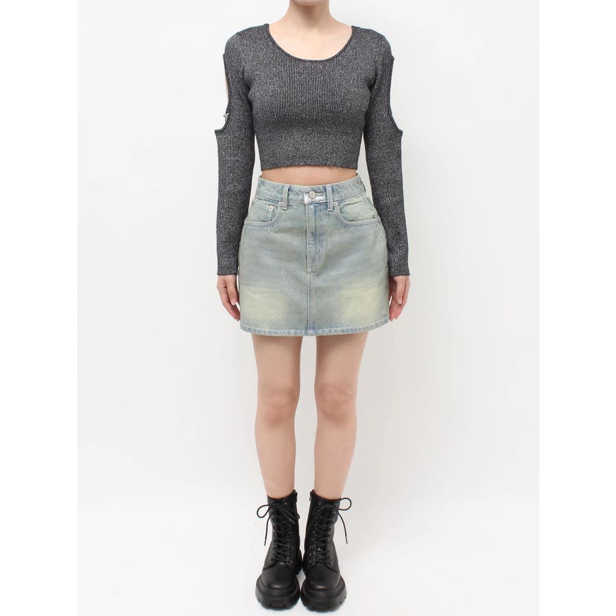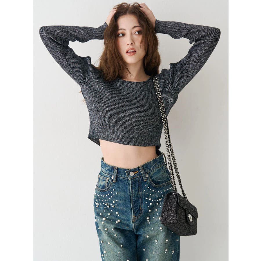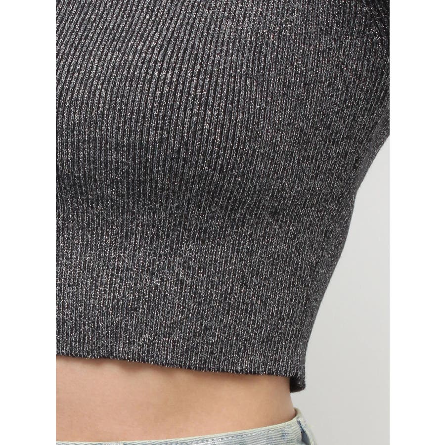 オープンアームラメチャームニットトップス