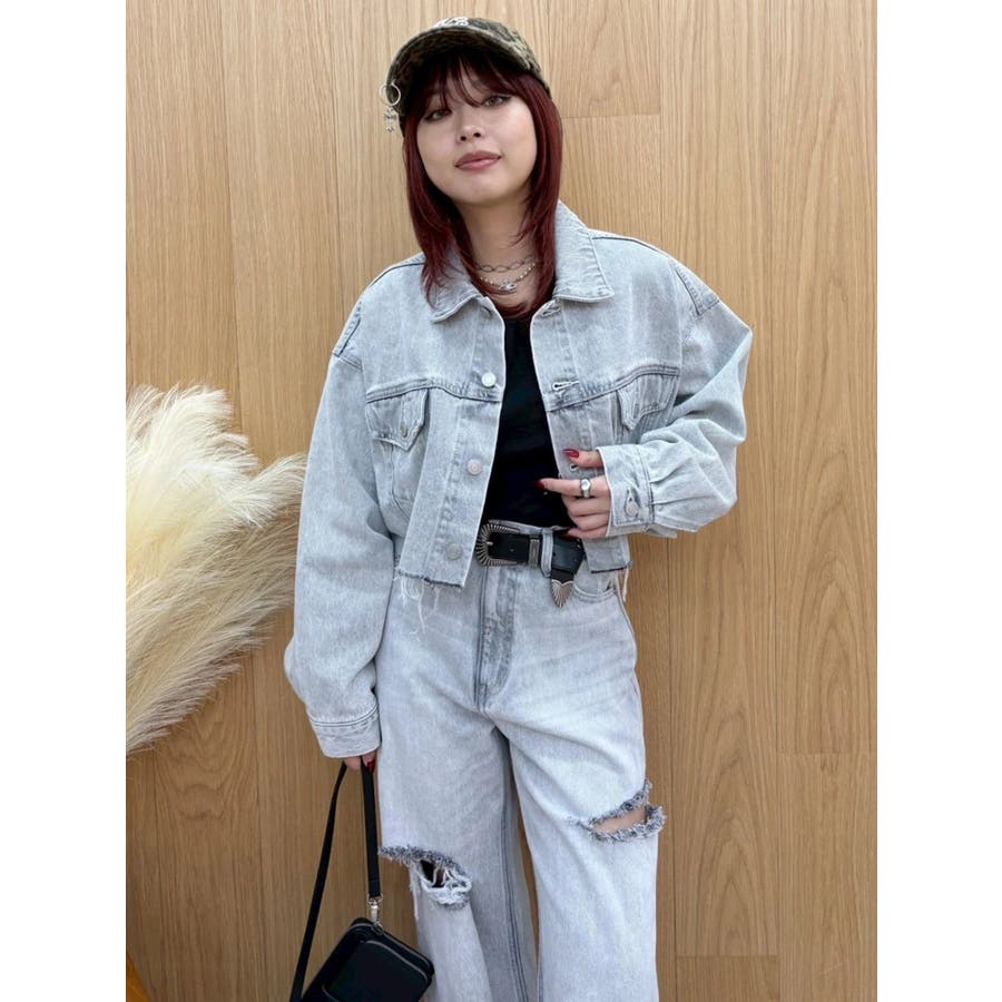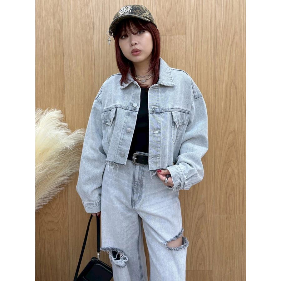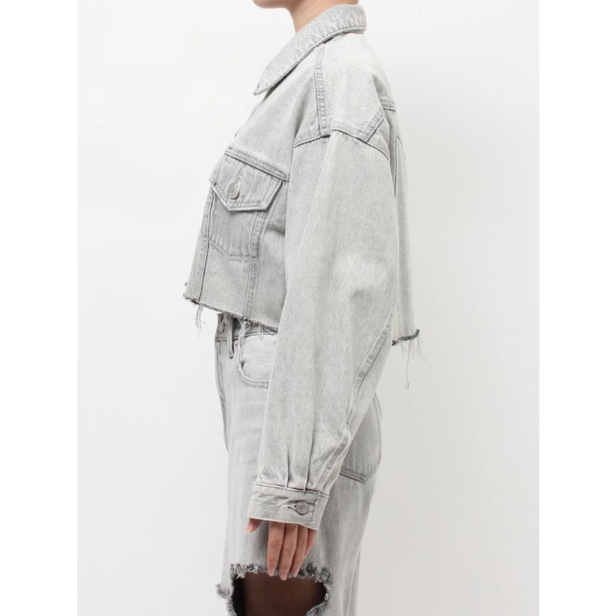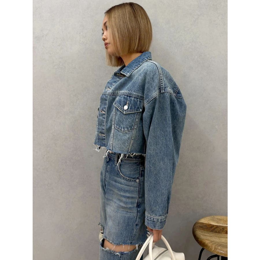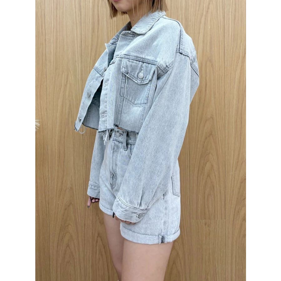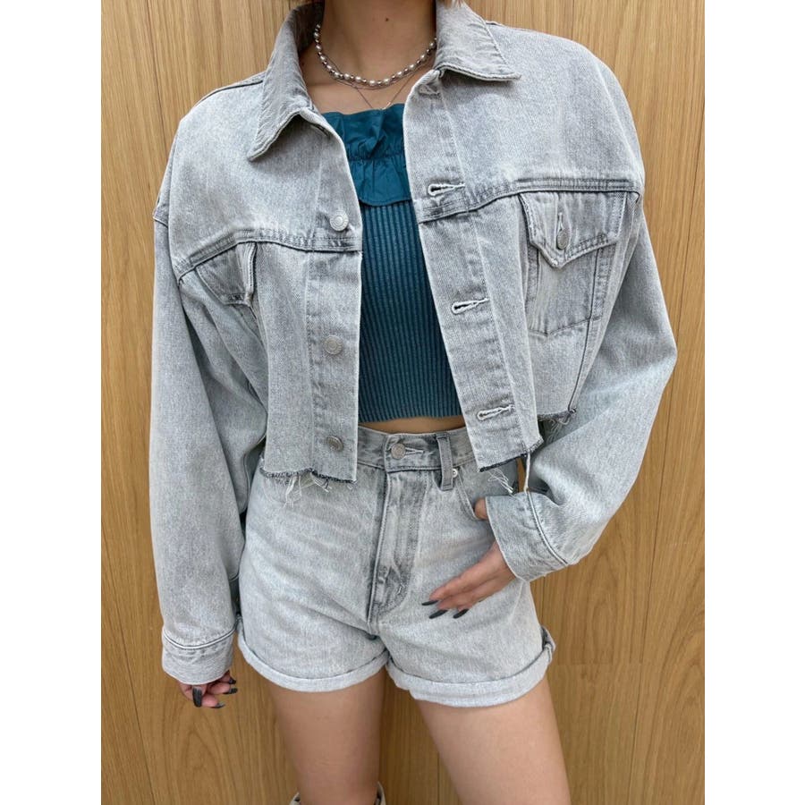 ■デザイン毎年人気のデニムショートブルゾンです。今期は新色で、色を落とした(抜いた)薄いグレーを用意しておりこれまでにない軽やかな印象の春らしいカラー展開にしています。■スタイリング同素材のデニムパンツ、ロングスカート、ショートパンツがあるのでセットアップでのスタイリングがおすすめ。ワンピースなどの上から羽織った甘辛MIXスタイルにも。 ■セットアップアイテム>>カットアウトワイドデニムパンツ>>ダメージスリットロングデニムスカート>>ヴィンテージライクカラーショートデニムパンツ-------------- 透け感:なし 裏地:なし 生地の厚み:普通伸縮性:なし --------------