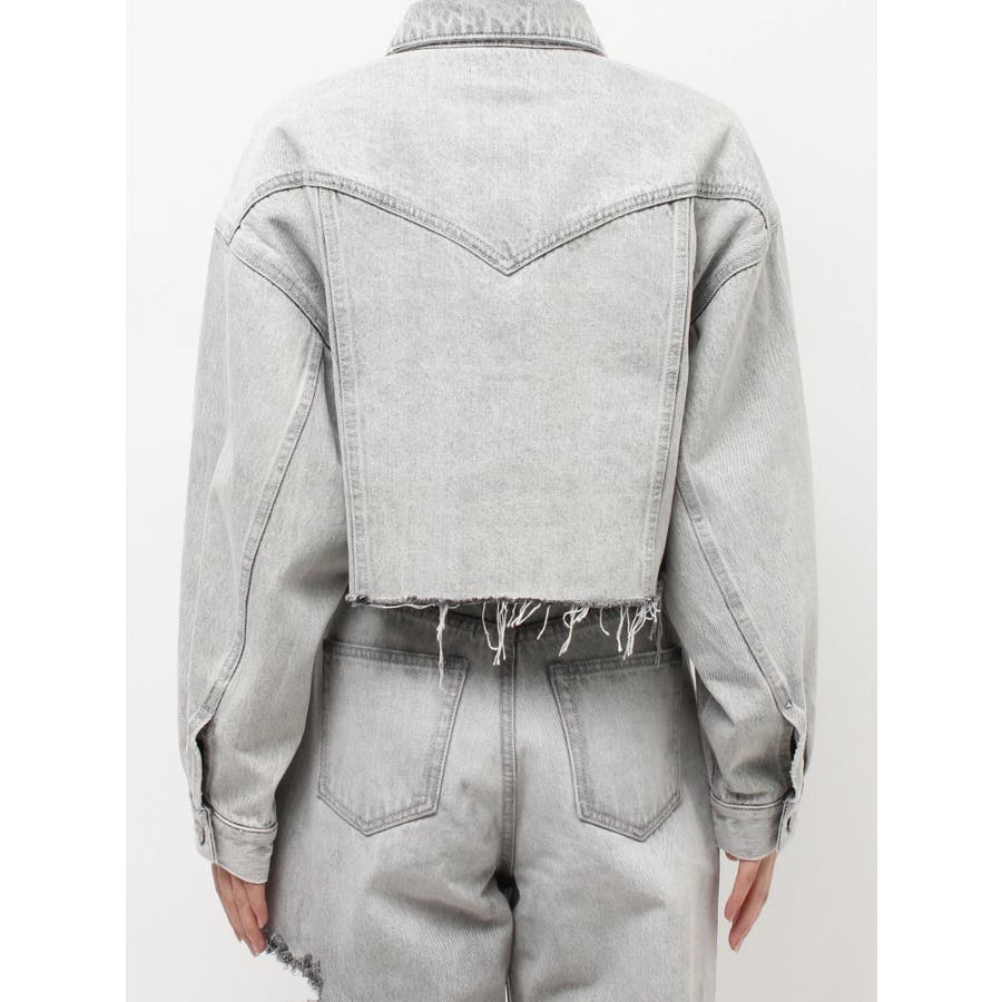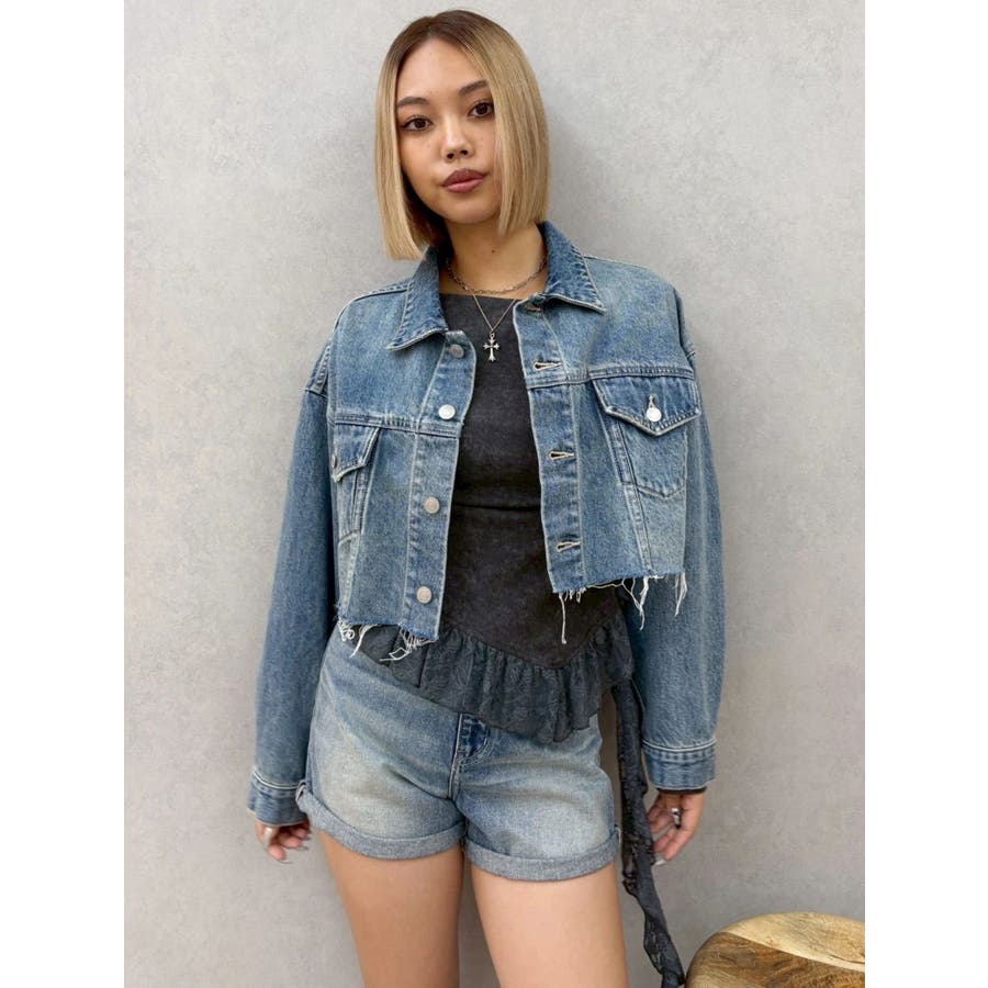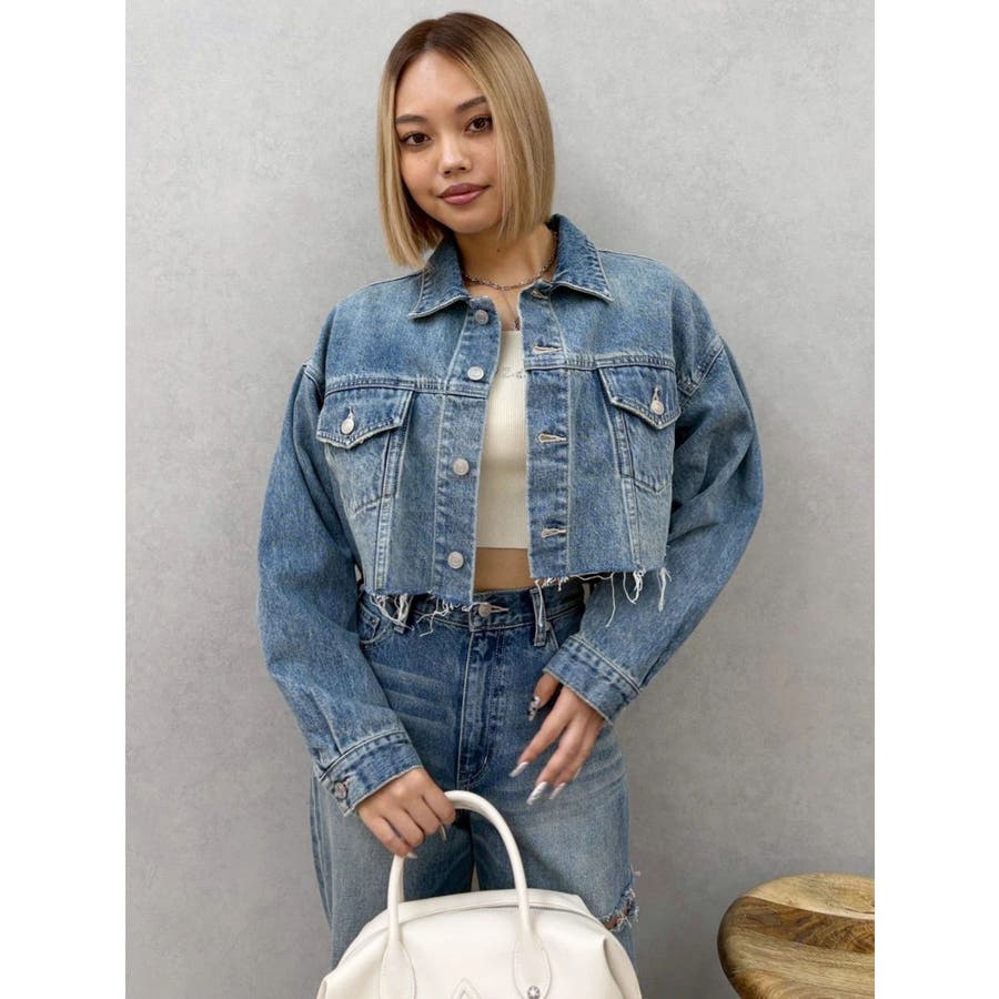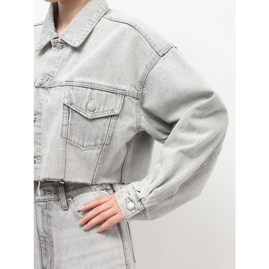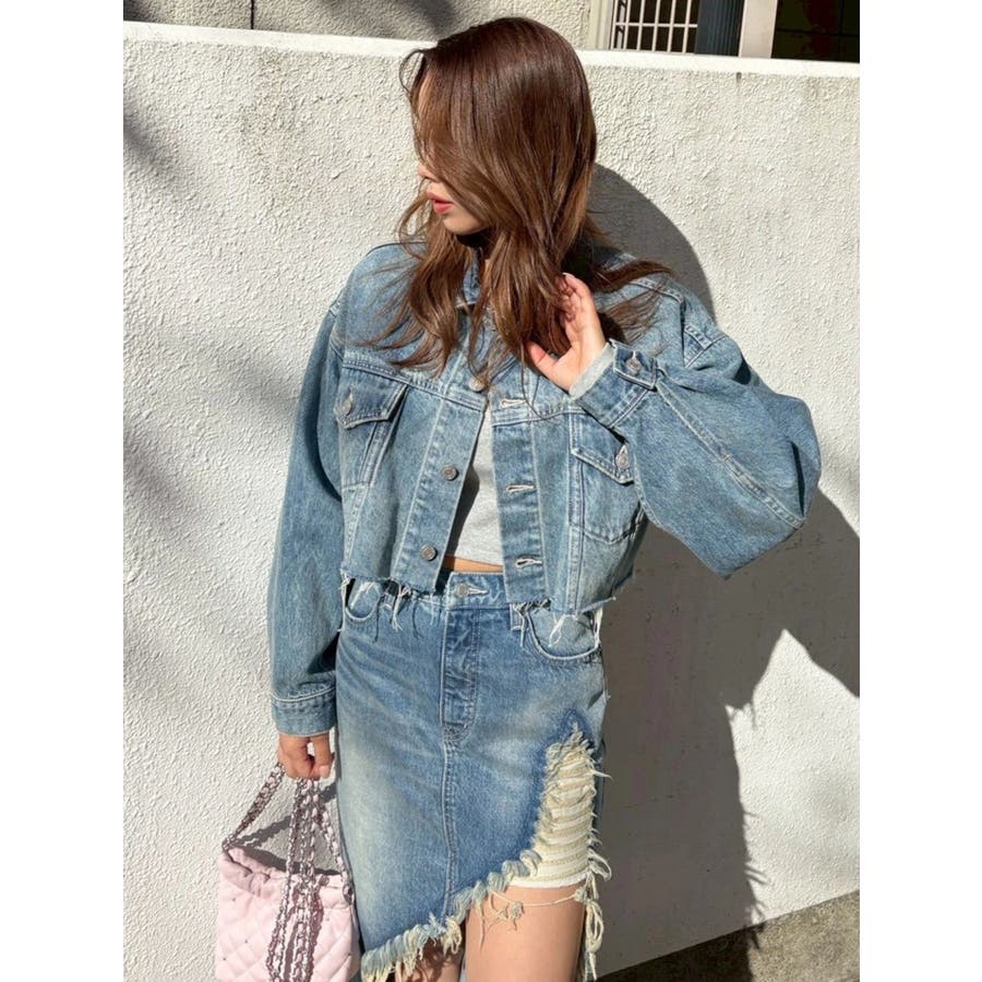 ■デザイン毎年人気のデニムショートブルゾンです。今期は新色で、色を落とした(抜いた)薄いグレーを用意しておりこれまでにない軽やかな印象の春らしいカラー展開にしています。■スタイリング同素材のデニムパンツ、ロングスカート、ショートパンツがあるのでセットアップでのスタイリングがおすすめ。ワンピースなどの上から羽織った甘辛MIXスタイルにも。 ■セットアップアイテム>>カットアウトワイドデニムパンツ>>ダメージスリットロングデニムスカート>>ヴィンテージライクカラーショートデニムパンツ-------------- 透け感:なし 裏地:なし 生地の厚み:普通伸縮性:なし --------------