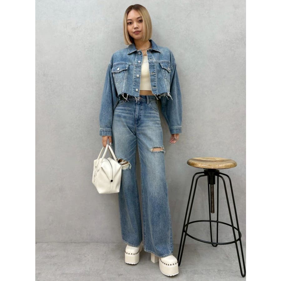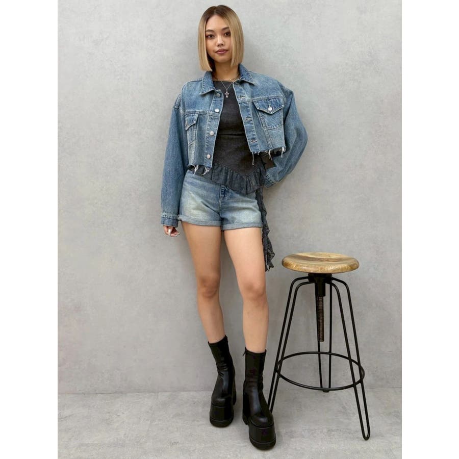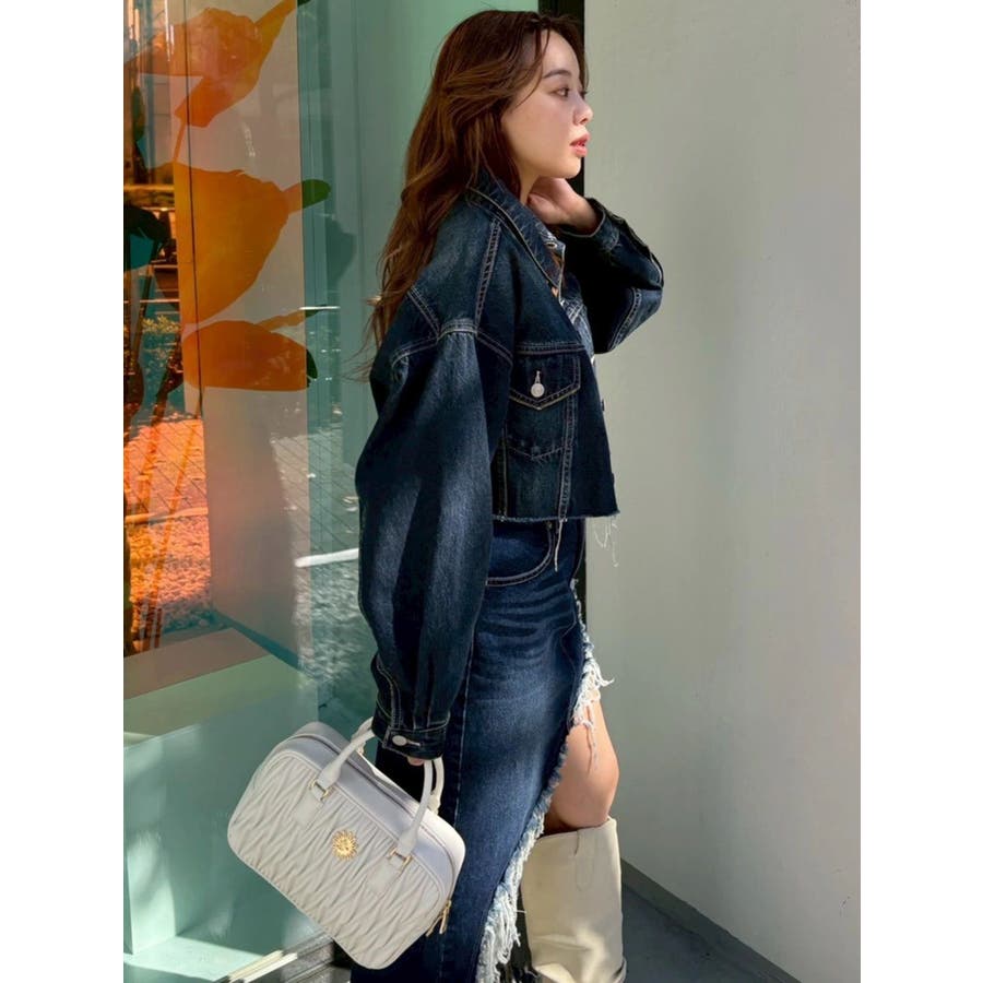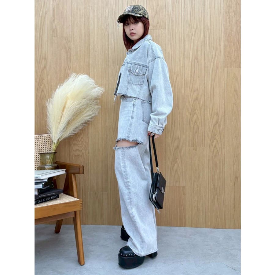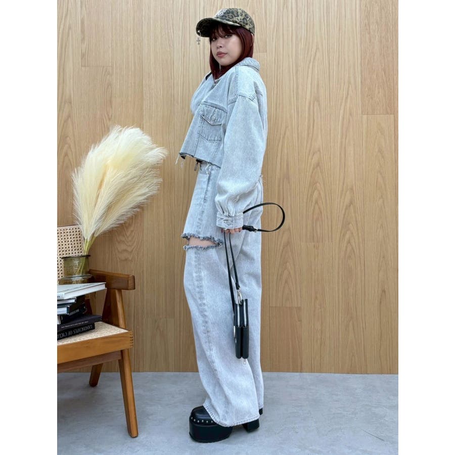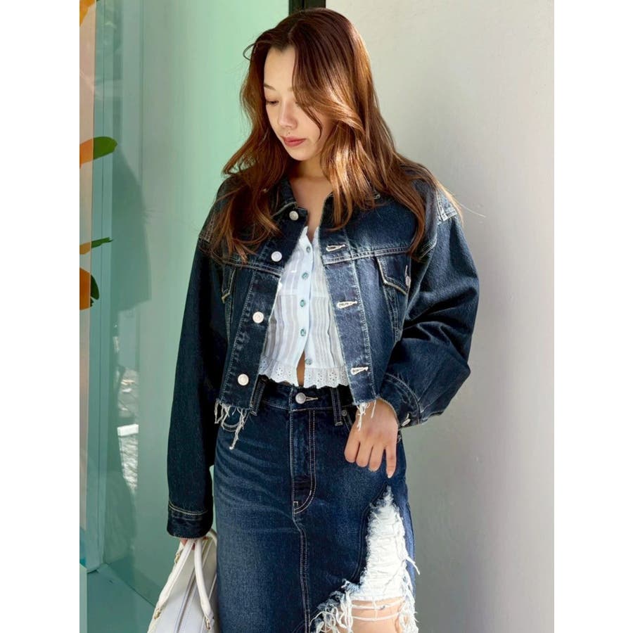 ■デザイン毎年人気のデニムショートブルゾンです。今期は新色で、色を落とした(抜いた)薄いグレーを用意しておりこれまでにない軽やかな印象の春らしいカラー展開にしています。■スタイリング同素材のデニムパンツ、ロングスカート、ショートパンツがあるのでセットアップでのスタイリングがおすすめ。ワンピースなどの上から羽織った甘辛MIXスタイルにも。 ■セットアップアイテム>>カットアウトワイドデニムパンツ>>ダメージスリットロングデニムスカート>>ヴィンテージライクカラーショートデニムパンツ-------------- 透け感:なし 裏地:なし 生地の厚み:普通伸縮性:なし --------------