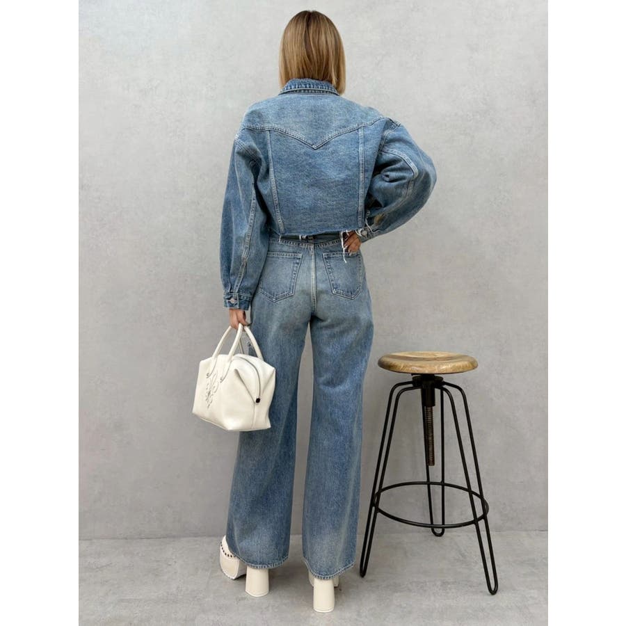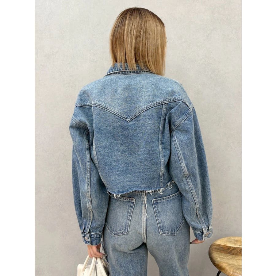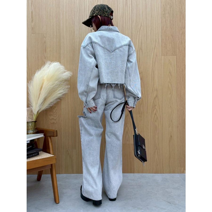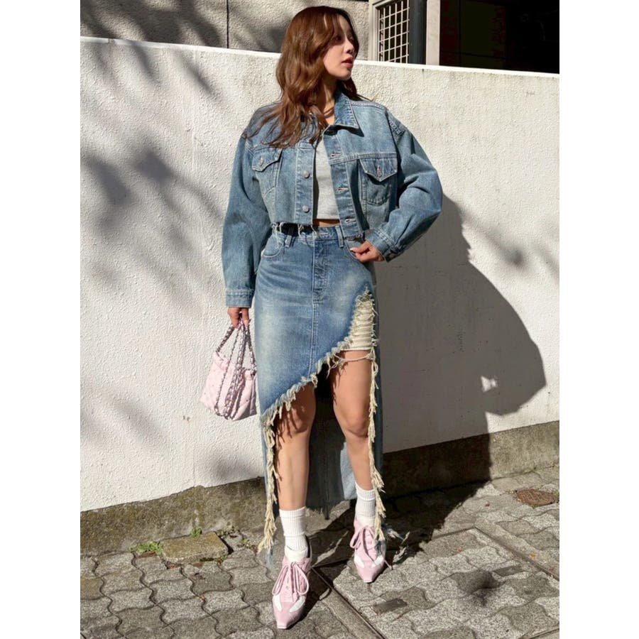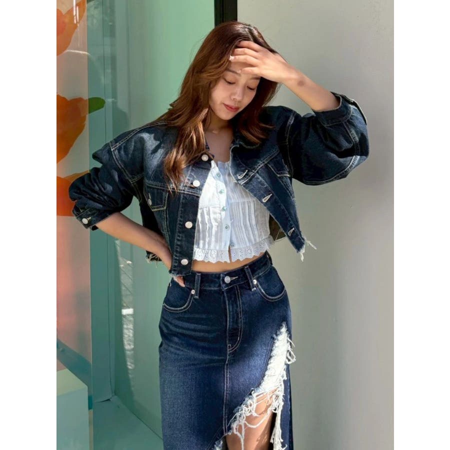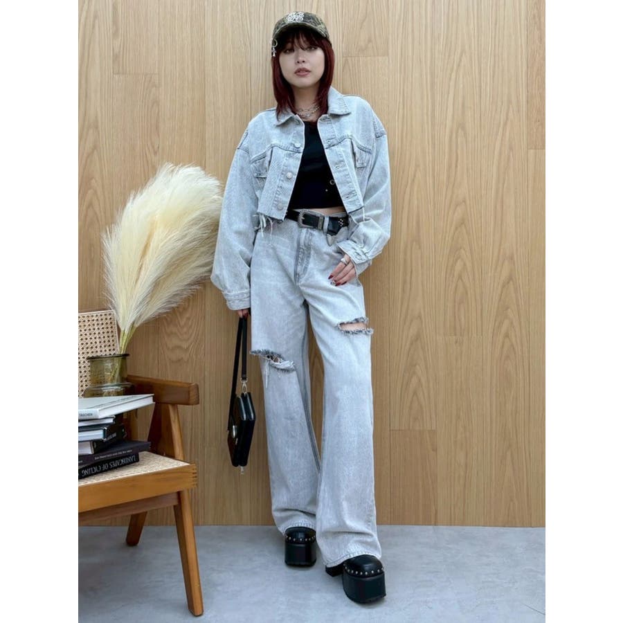 ■デザイン毎年人気のデニムショートブルゾンです。今期は新色で、色を落とした(抜いた)薄いグレーを用意しておりこれまでにない軽やかな印象の春らしいカラー展開にしています。■スタイリング同素材のデニムパンツ、ロングスカート、ショートパンツがあるのでセットアップでのスタイリングがおすすめ。ワンピースなどの上から羽織った甘辛MIXスタイルにも。 ■セットアップアイテム>>カットアウトワイドデニムパンツ>>ダメージスリットロングデニムスカート>>ヴィンテージライクカラーショートデニムパンツ-------------- 透け感:なし 裏地:なし 生地の厚み:普通伸縮性:なし --------------