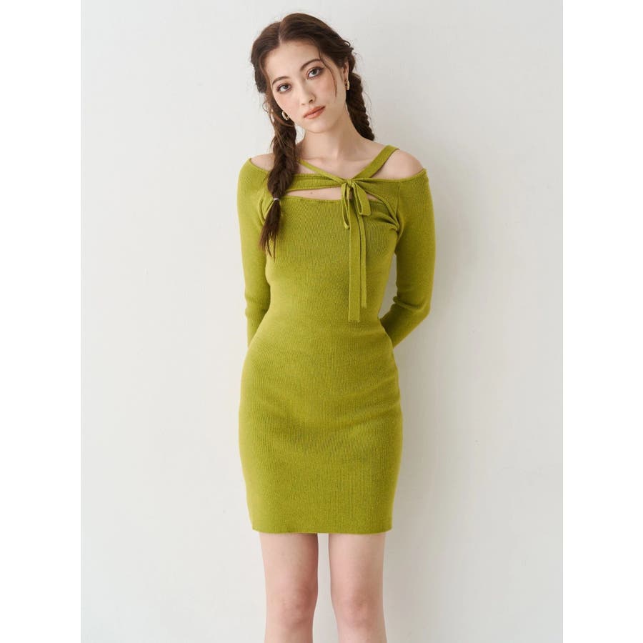 【印象的なカッティングがポイント!1枚で映えるニットワンピース!】■デザインデコルテ部分のカッティングデザインが印象的なニットミニワンピース。オフショルダーのような首元でリボン風にアレンジしたりお好きなように着ていただけます。伸縮性のあるニット素材でタイトデザインですが着心地が良く、スタイルアップ効果も◎■カラーベーシックカラーのブラック・グレーは万能にスタイリングできるのでON/OFFどちらでも着まわせる優秀さ◎ブルー・イエローは明るすぎない着やすいカラーにこだわり、スタイリングをパッと華やかにしてくれます。■スタイリング1枚で映えるデザインなのでクローゼットにあると便利なニットワンピース。柄もののBAGやシューズなどと合わせると上級者のスタイリングに◎首元が開いているデザインなので、上からアウターやジャケットを羽織ってもしっかり抜け感が作れておすすめです。